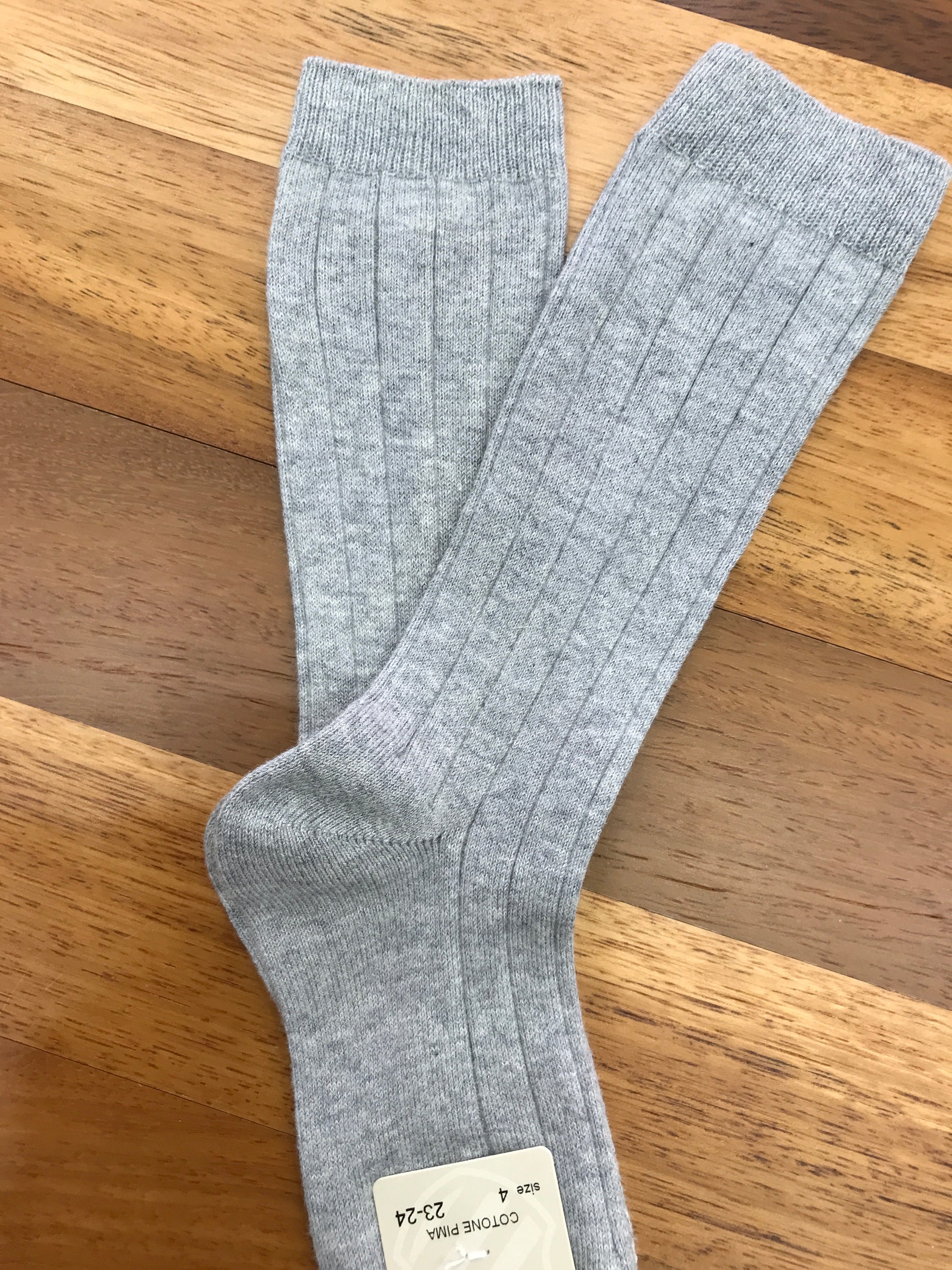 Calzini semplici e alti realizzati in lana di tonalità grigio chiaro.