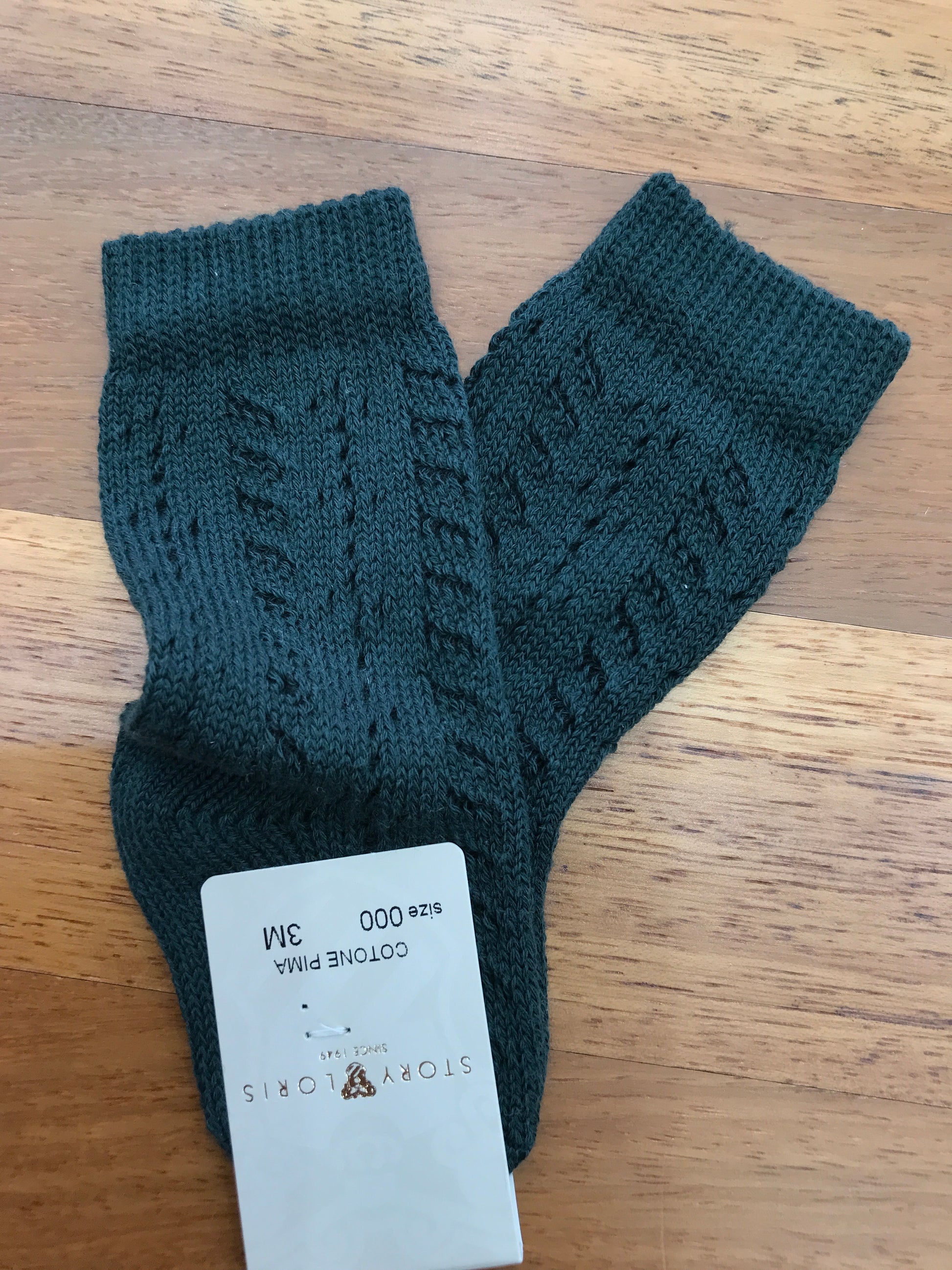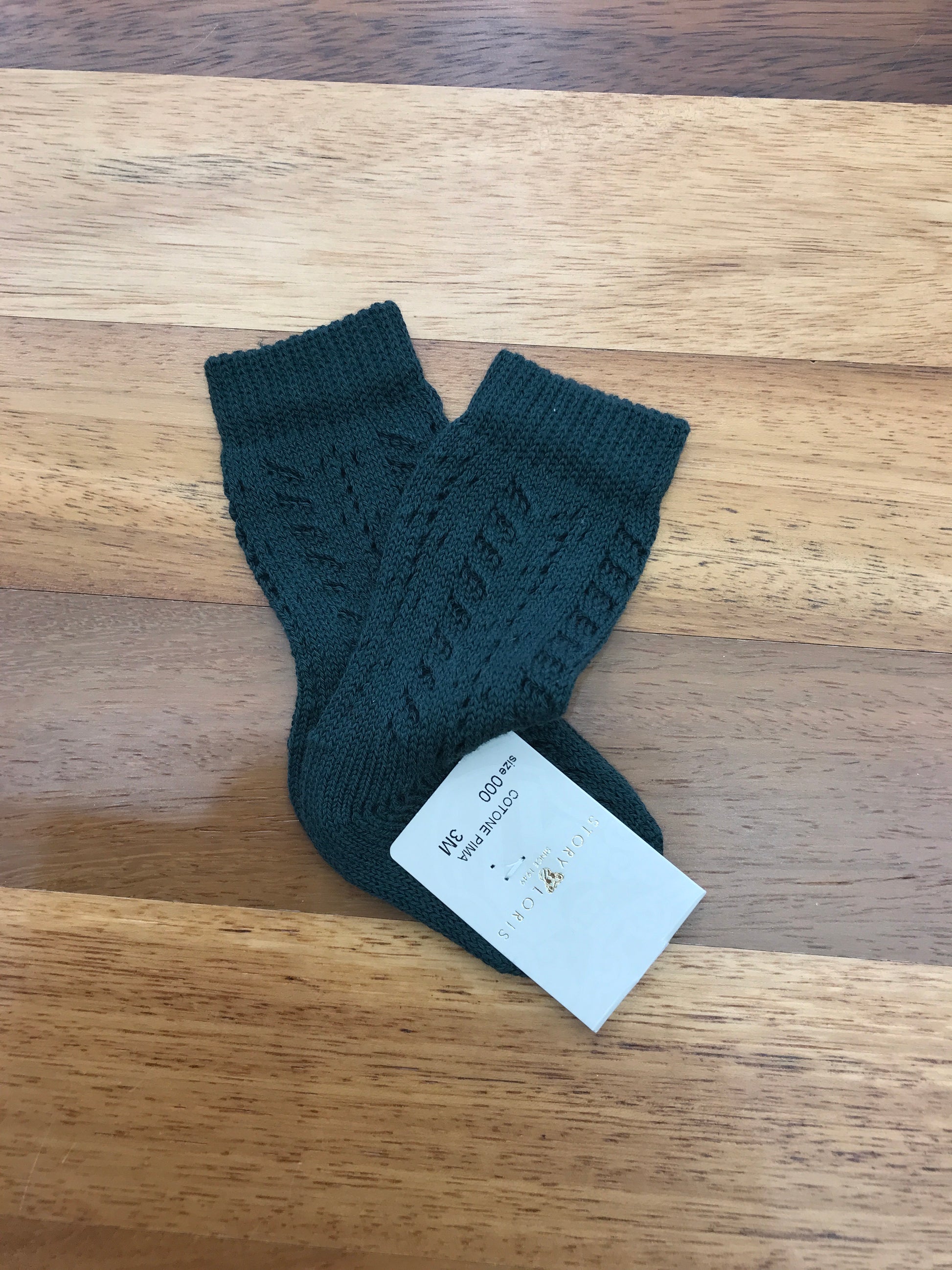 Calzini traforati in lana verde a mezza altezza, ideali per un comfort traspirante e una vestibilità precisa.