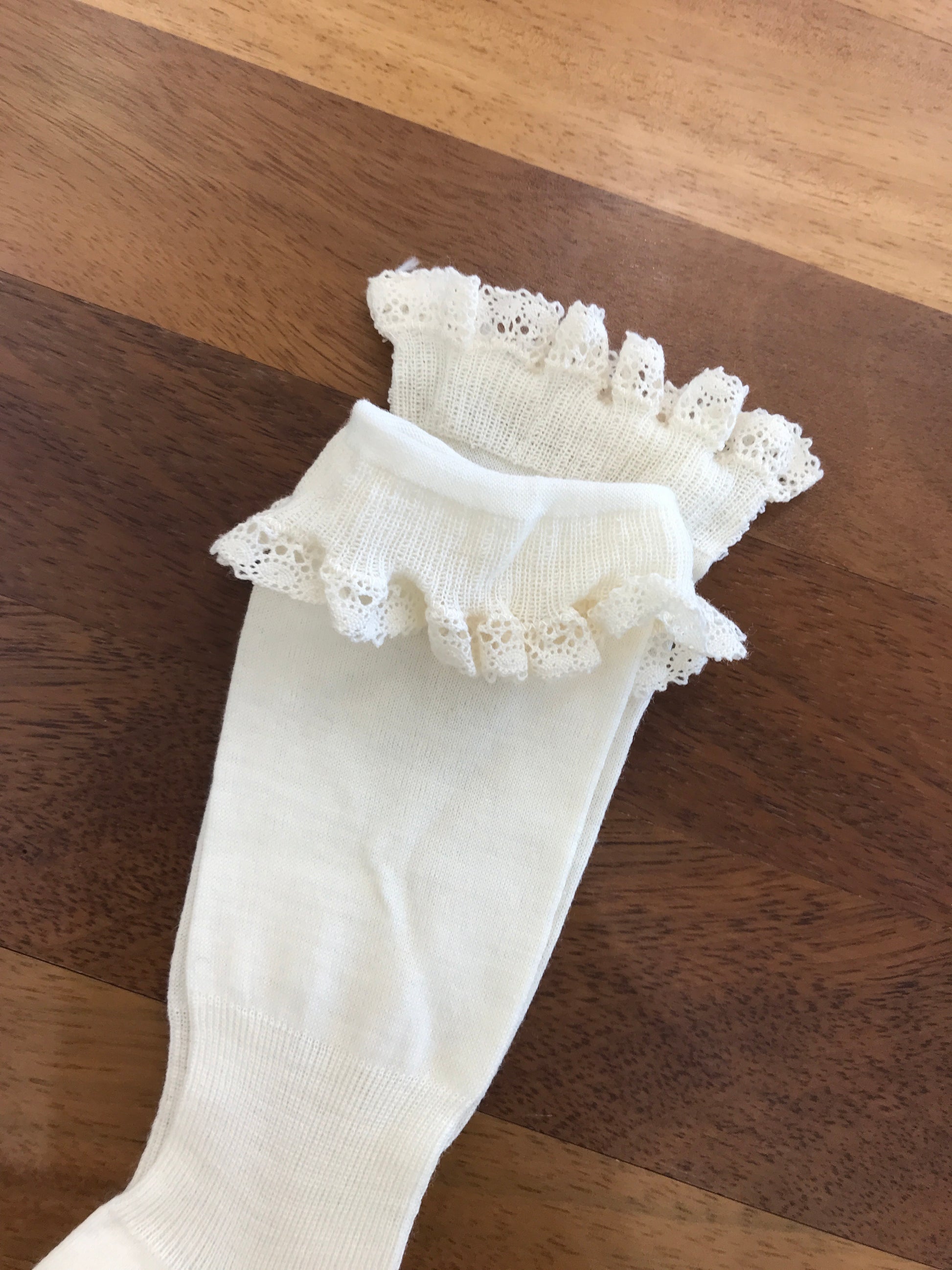 Calzini color panna confezionati con una fine lavorazione a costine sottili, dal design semplice e sofisticato. La loro delicata texture e la mancanza di decorazioni elaborate li rendono l’accessorio ideale per chi desidera un tocco di qualità discreto, perfetto per valorizzare con eleganza ogni tipo di abbigliamento. Presentano delicati riccetti al bordo.