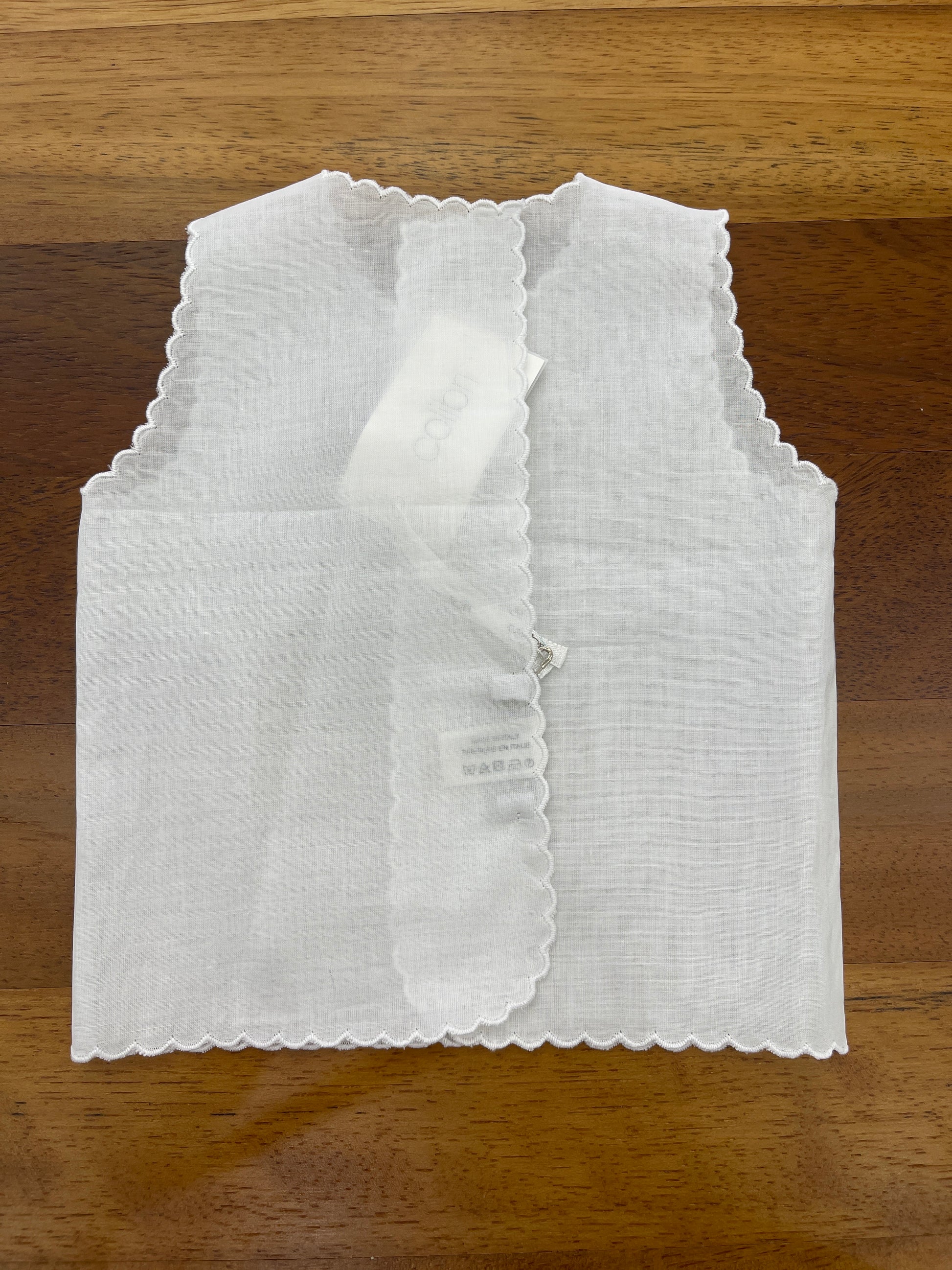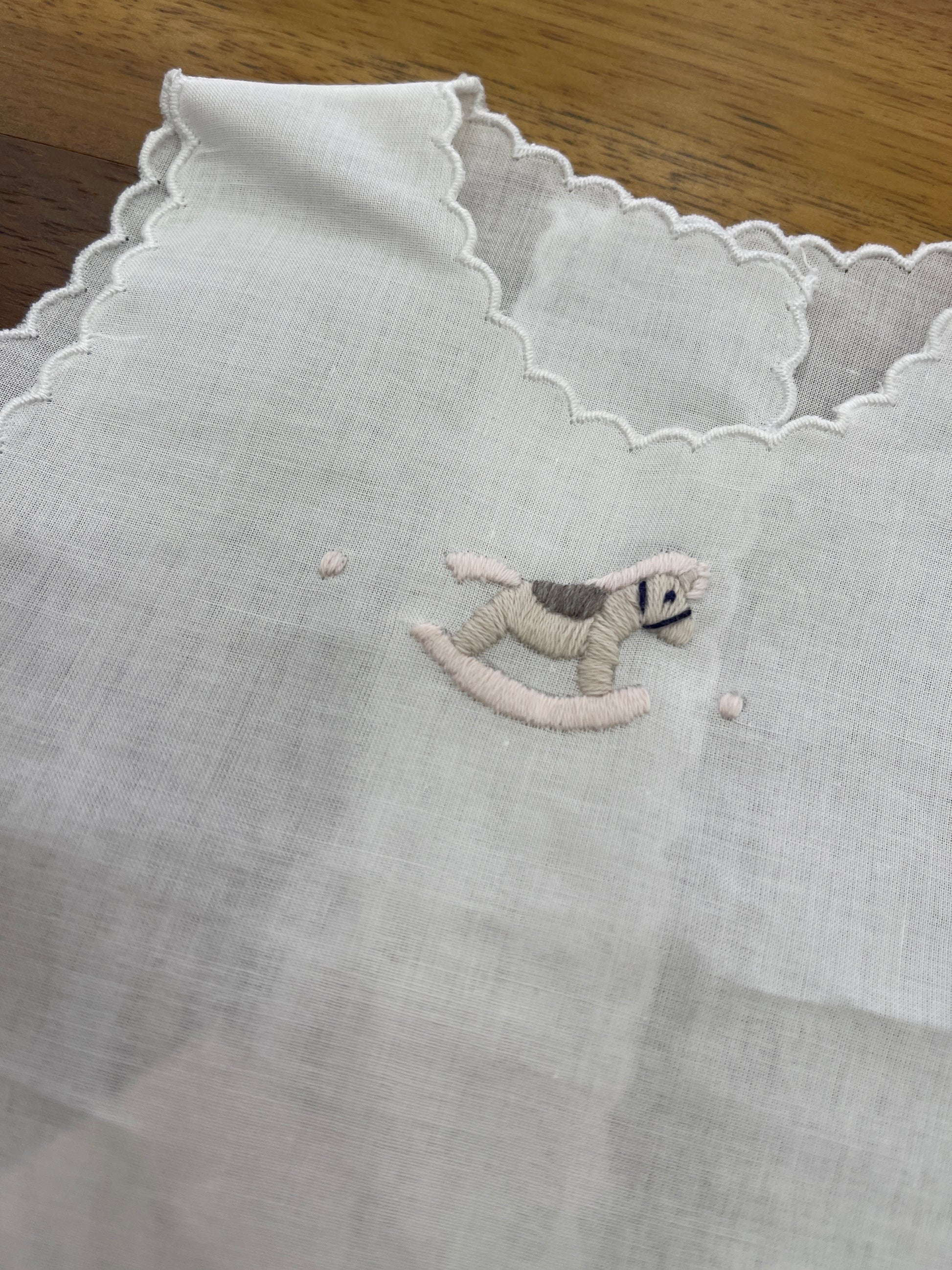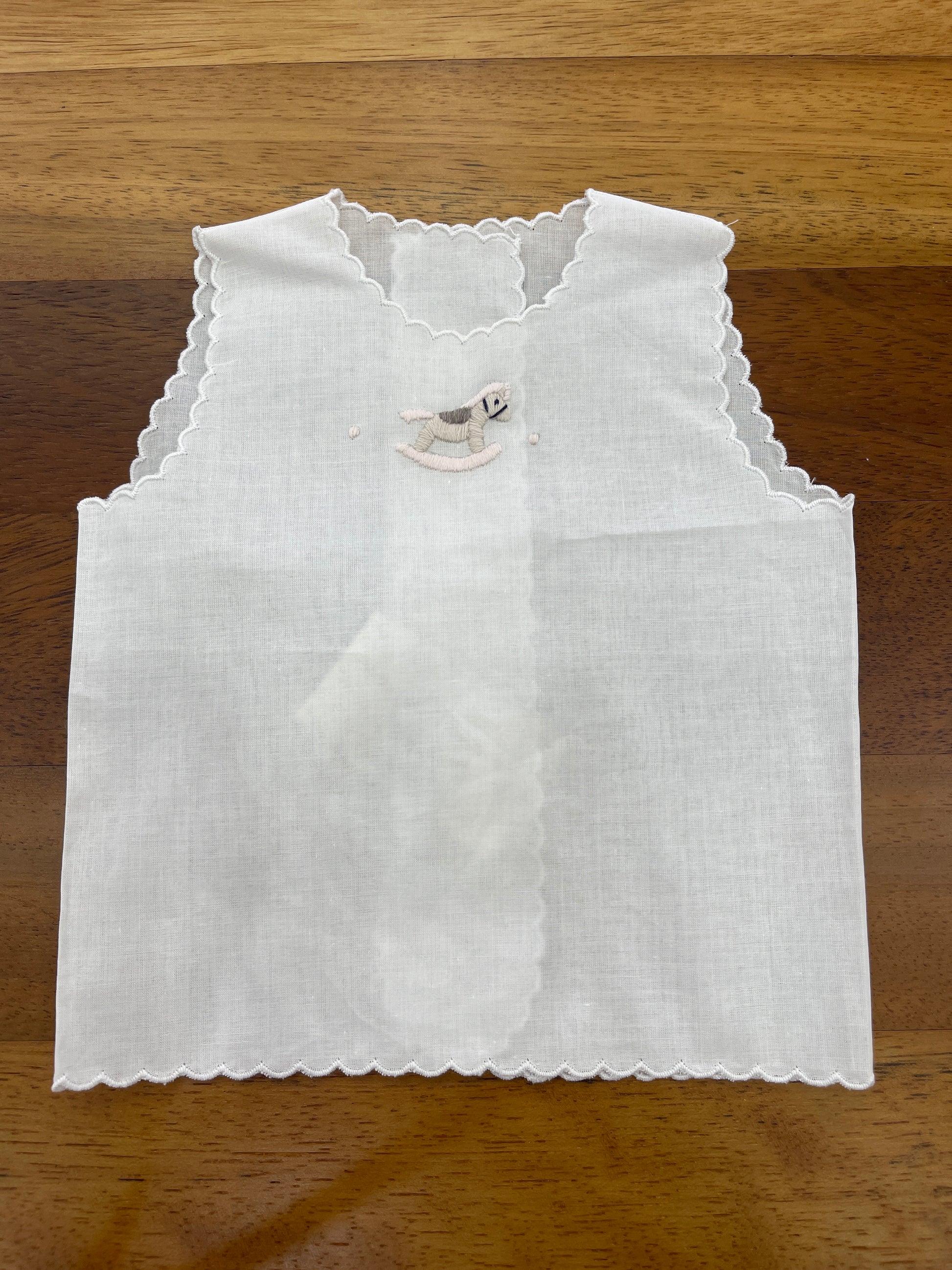 Il camicino Colibrì presenta un elegante bordo smerlato e un delicato ricamo frontale raffigurante un cavallo a dondolo, simbolo di dolcezza e tradizione. Realizzato con cura artigianale, questo capo unisce stile e comfort, ideale per i momenti speciali del tuo bambino. La qualità dei materiali garantisce morbidezza e durata, rendendolo perfetto per accompagnare la crescita con un tocco di raffinatezza.
