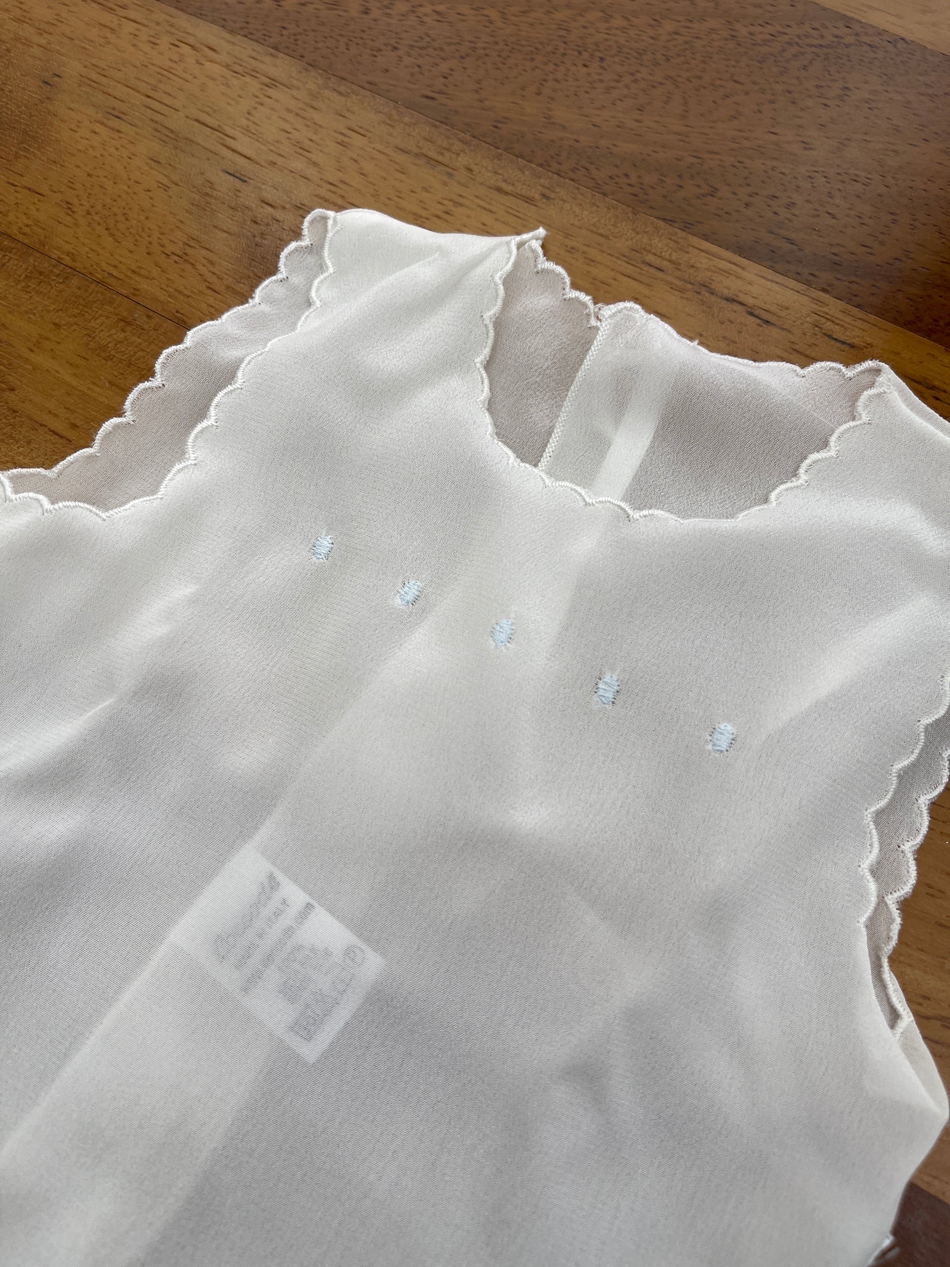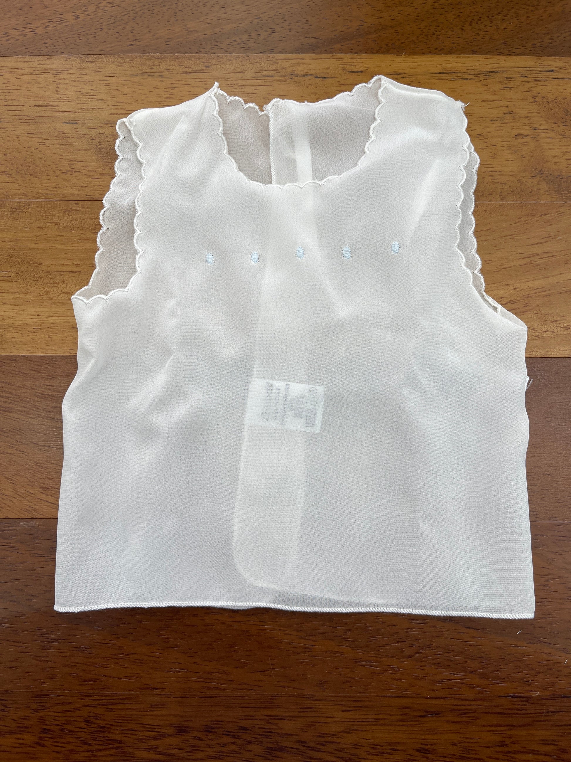 Il camicino della fortuna Coccodè, realizzato in morbido cotone, si distingue per i dettagli curati come lo smerlo elegante sulle spalline, che conferisce un tocco di raffinatezza. Al centro del davanti spiccano piccoli pois celesti, simbolo giocoso e delicato. La parte posteriore, aperta, è arricchita da due sottili laccetti che permettono una chiusura semplice e discreta, assicurando comfort e adattabilità nella vestibilità. Un capo pensato per unire stile e praticità con un’attenzione particolare ai dettagli.