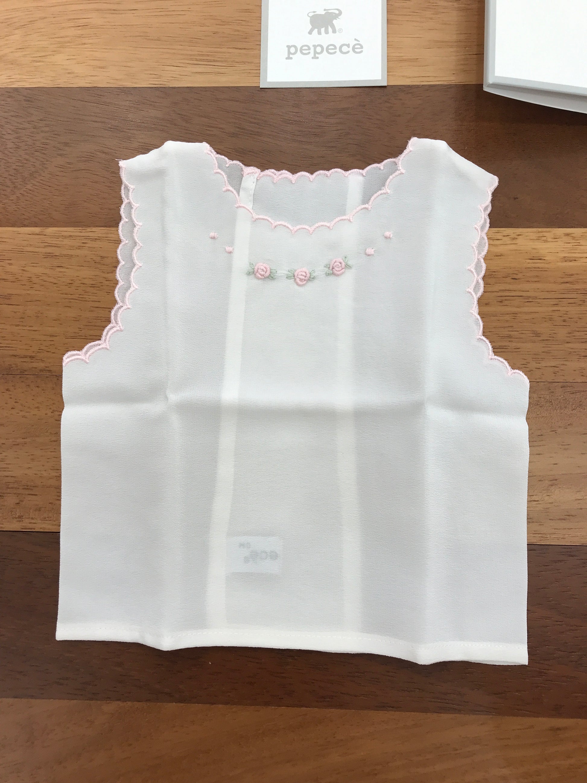 Delicato capo senza maniche realizzato in pregiata seta, caratterizzato da finiture smerlate su tutti i bordi. Il design è impreziosito da un elegante tris di rose ricamate a mano al centro, che conferisce un tocco di raffinatezza e femminilità al capo. Perfetto per occasioni speciali o per chi apprezza i dettagli artigianali di qualità.