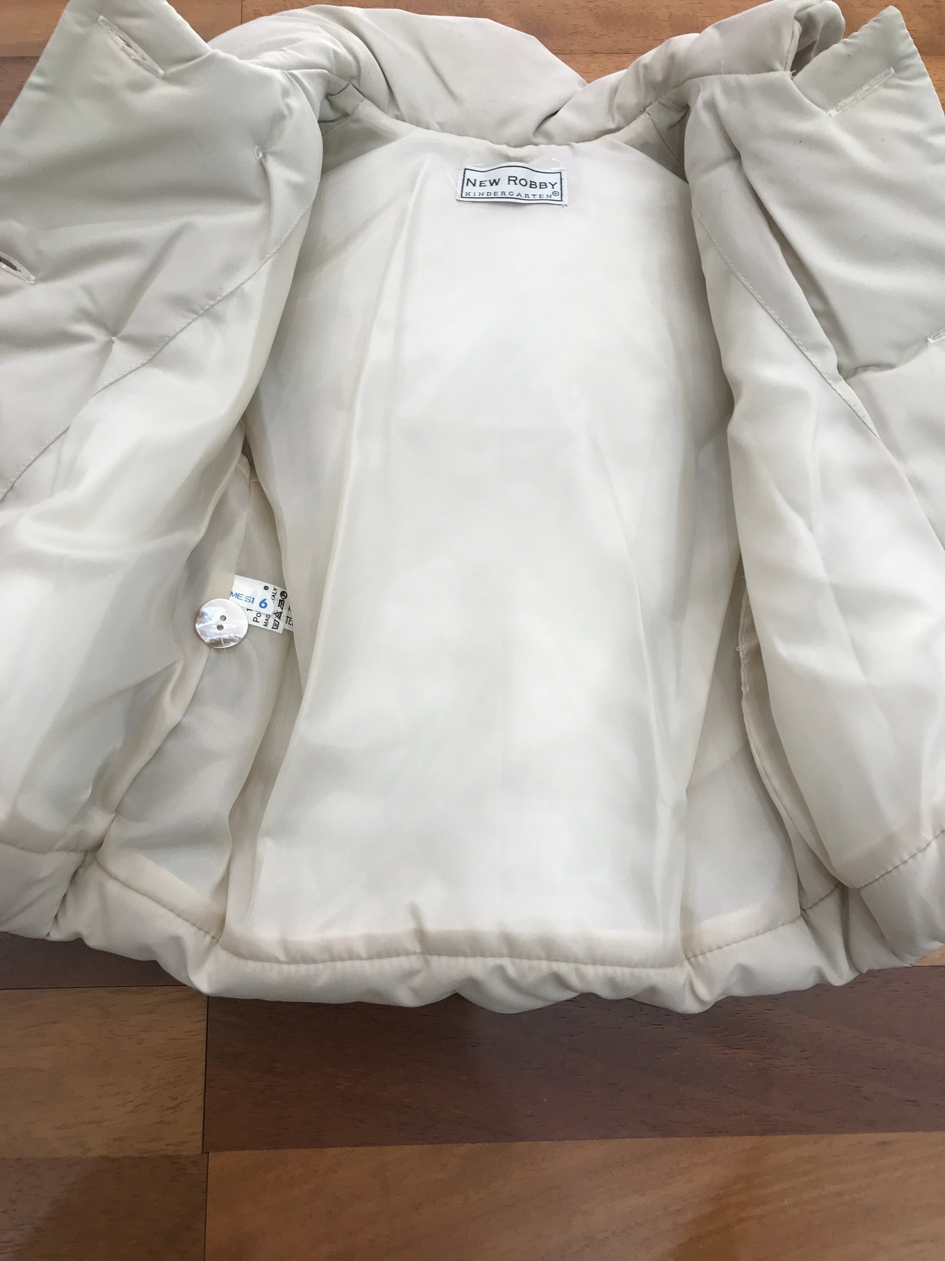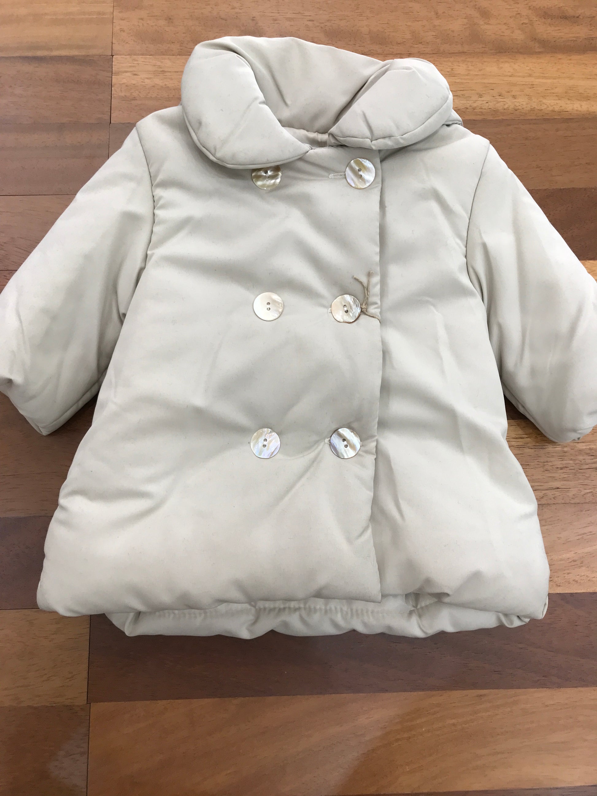 Giubbotto imbottito in tonalità beige con colletto strutturato e chiusura frontale a bottoni. Un capo versatile e pratico, ideale per le stagioni intermedie, che combina comfort e stile con una silhouette moderna e raffinata.