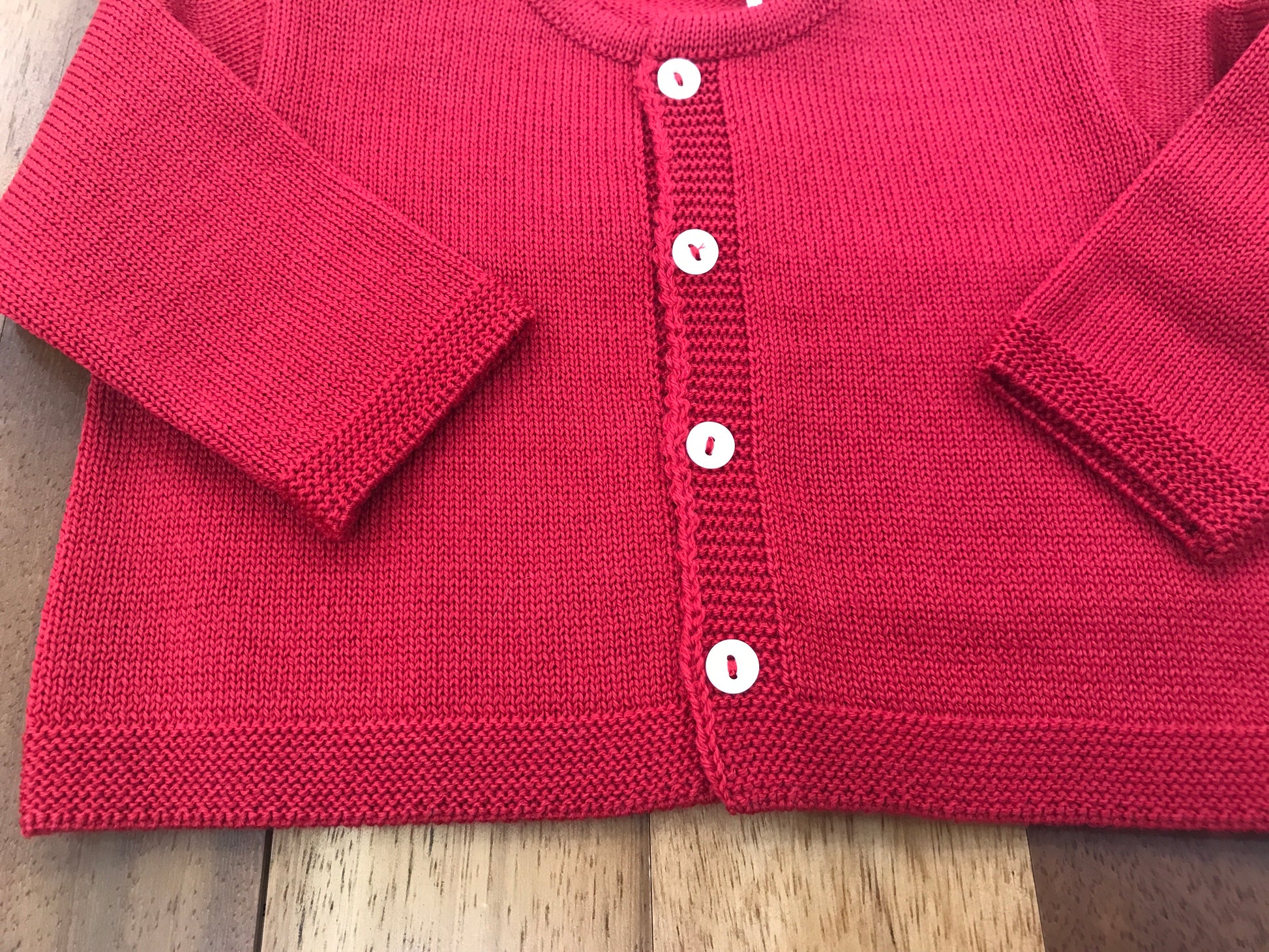 Cardigan in lana basic di colore rosso, dotato di chiusura frontale con bottoncini, dal taglio leggermente più lungo per un comfort aggiuntivo e una vestibilità elegante.