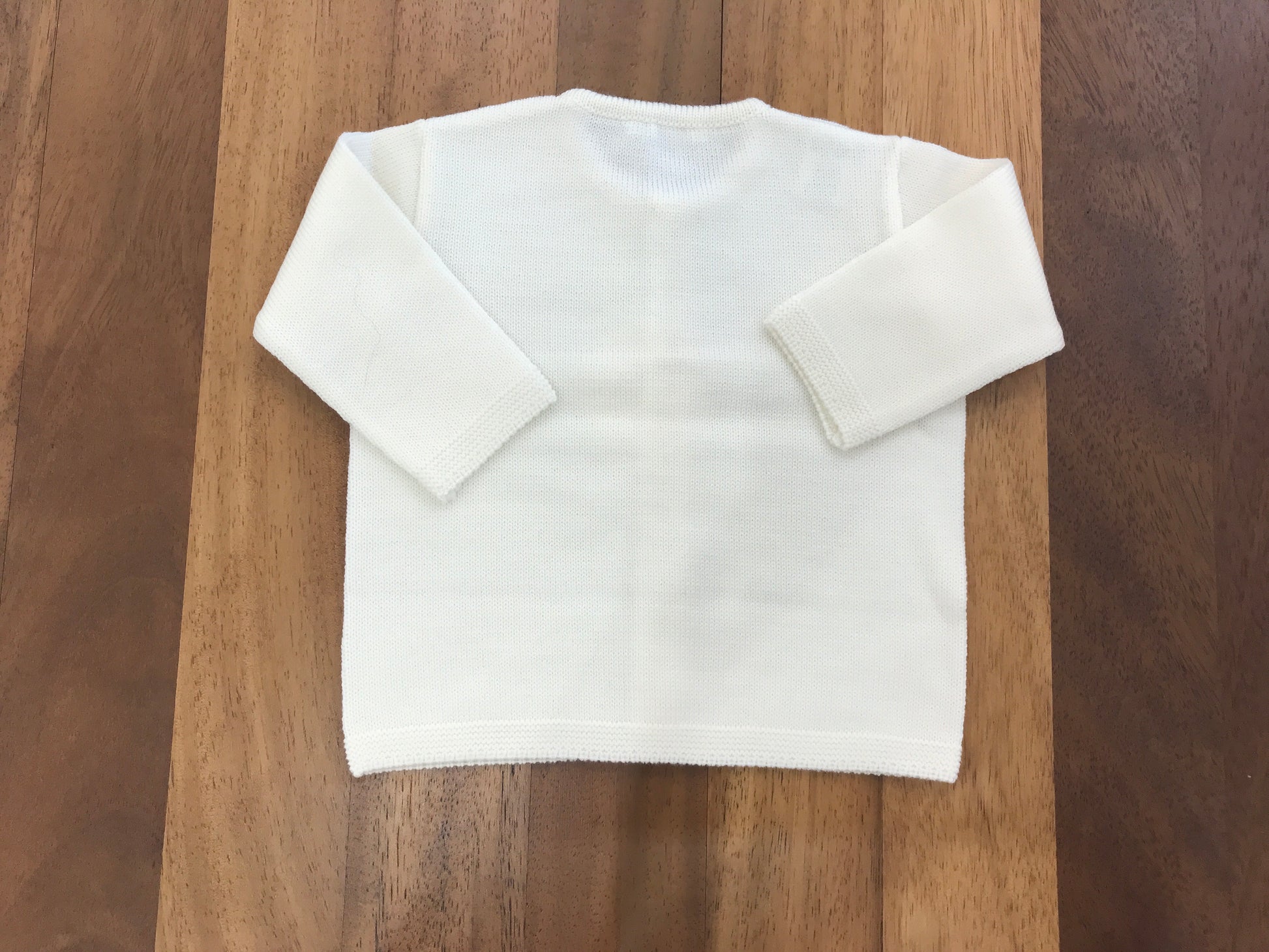 Questo cardigan in lana color panna presenta cinque piccoli bottoni per la chiusura ed è caratterizzato da un taglio leggermente allungato, che garantisce un comfort superiore e un’elegante vestibilità.