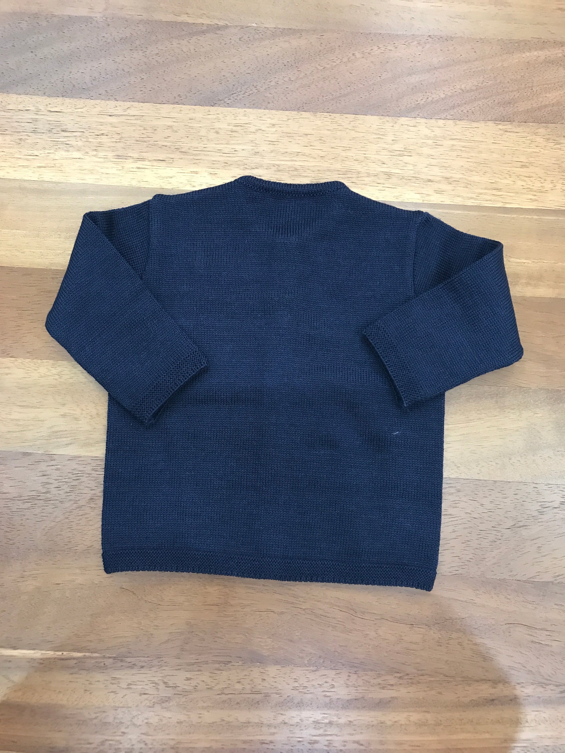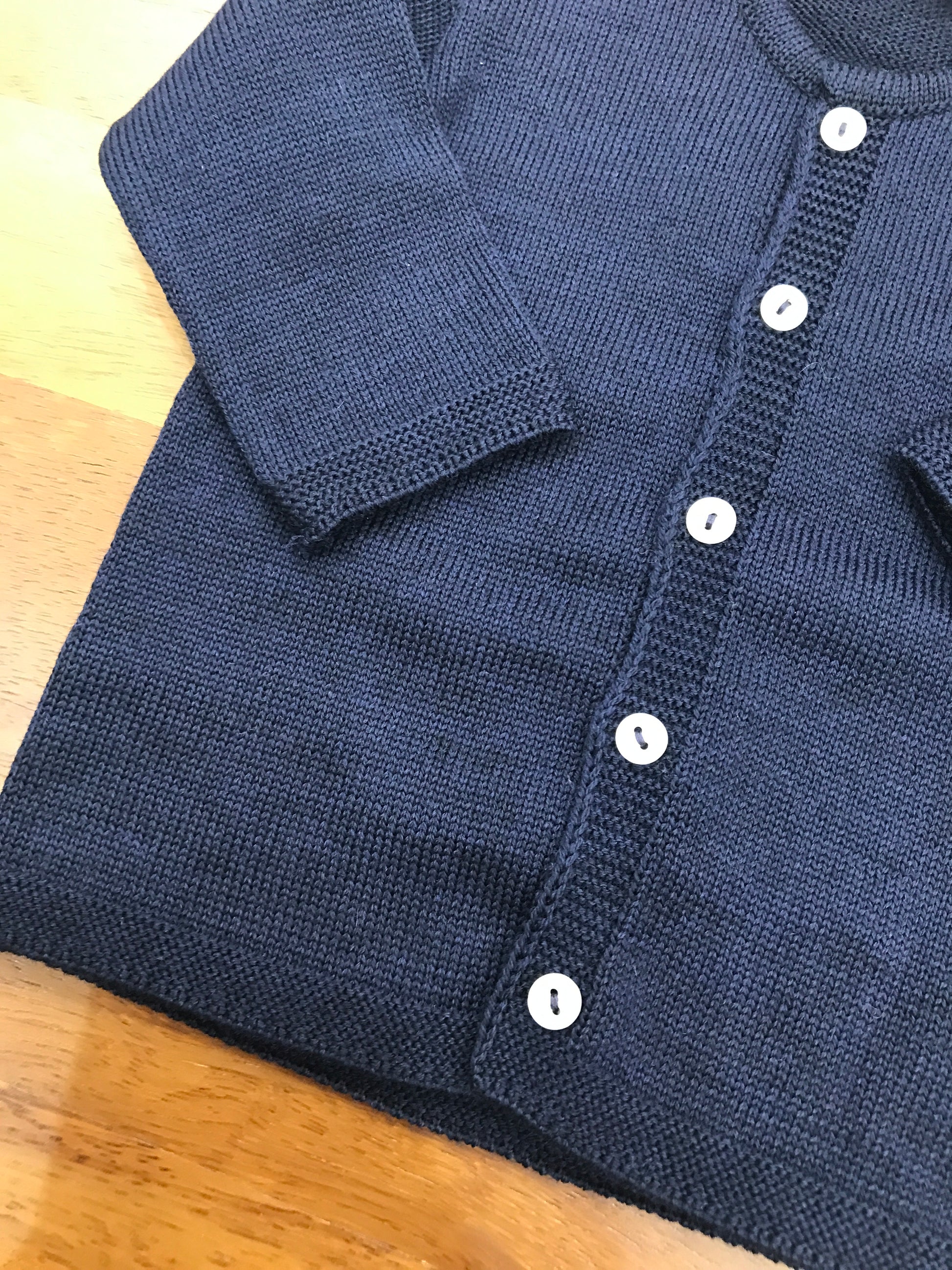 Cardigan in lana basic di colore blu , dotato di chiusura frontale con bottoncini, dal taglio leggermente più lungo per un comfort aggiuntivo e una vestibilità elegante.