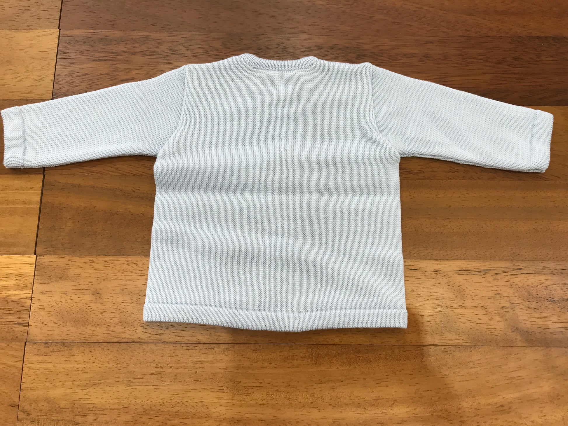 Realizzato in lana di un delicato colore celeste, questo cardigan baby lord presenta una chiusura frontale con quattro bottoncini semplici ma funzionali, che ne garantiscono praticità e comfort. Il design minimalista e lineare lo rende un capo versatile, adatto a completare con eleganza ogni outfit infantile senza appesantirlo, offrendo al contempo calore e morbidezza ideali per i più piccoli.