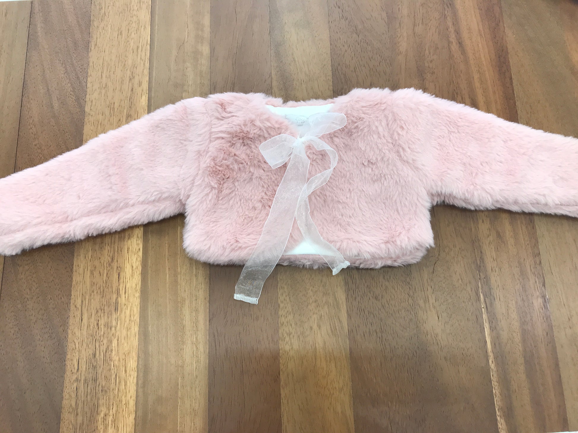 Questo cardigan in pelliccia rosa presenta un design raffinato con un nastro in organza che permette di chiuderlo con un delicato fiocco, aggiungendo un tocco di eleganza. L'interno, di colore bianco, offre un contrasto piacevole che ne esalta la qualità e la cura nei dettagli, rendendolo un capo distintivo e sofisticato per ogni occasione.