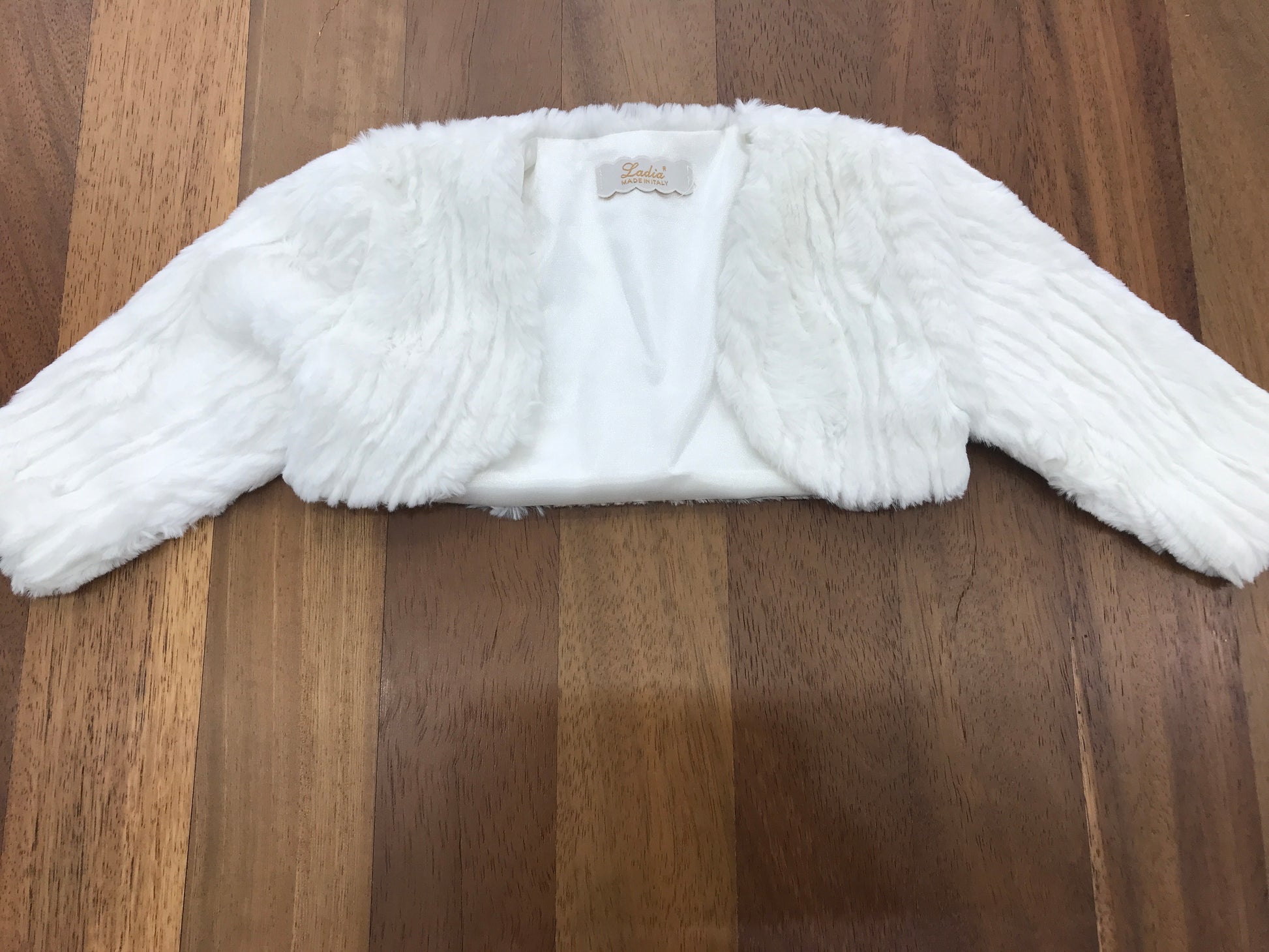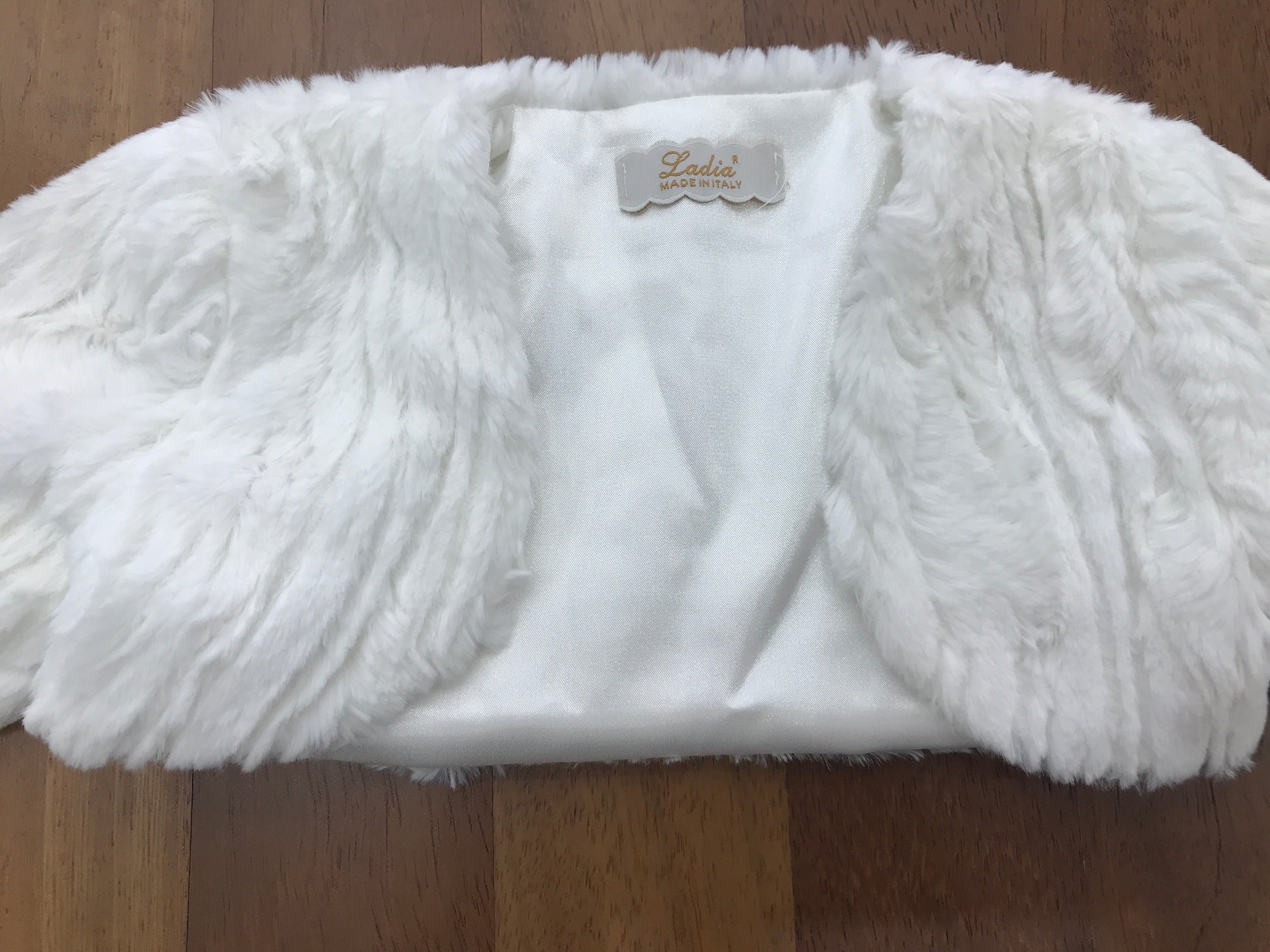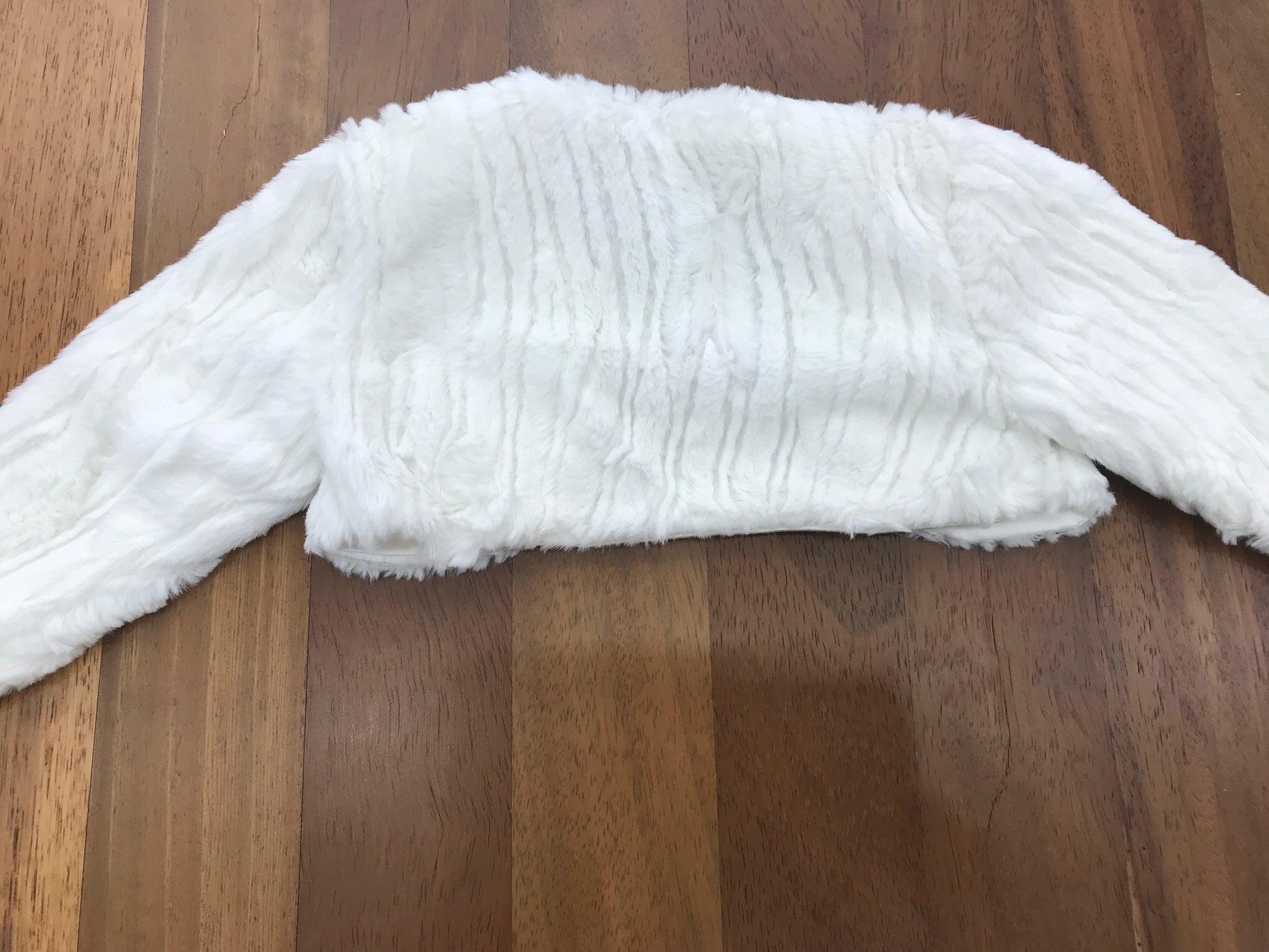Scaldacuore in pelliccia bianca con fodera interna in raso, caratterizzato da un esterno in pelliccia morbida e più lunga, che unisce eleganza e calore in modo raffinato.