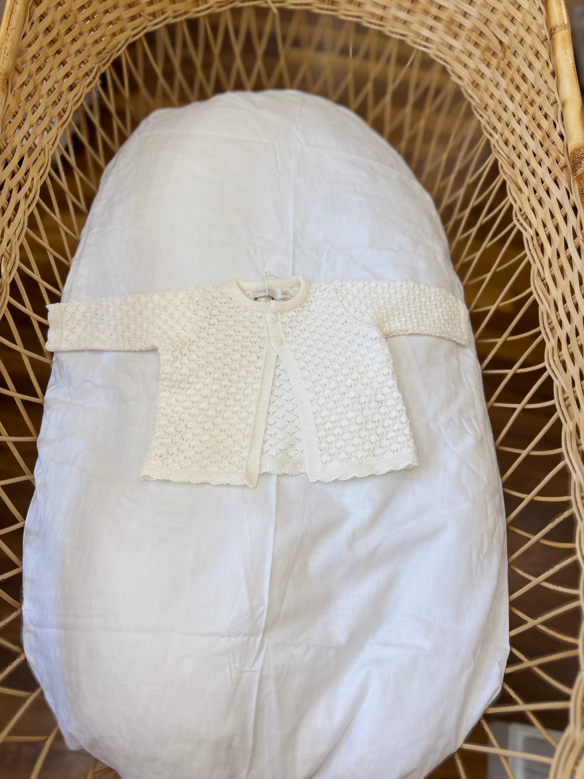 Il Cardigan PCS Baby in filo di cotone panna traforato è perfetto per garantire comfort e protezione alla tua piccola, sia che sia appena nata o più grande. Ideale da abbinare ai completini o abitini, sarà un capo indispensabile per tenerla al caldo e alla moda.