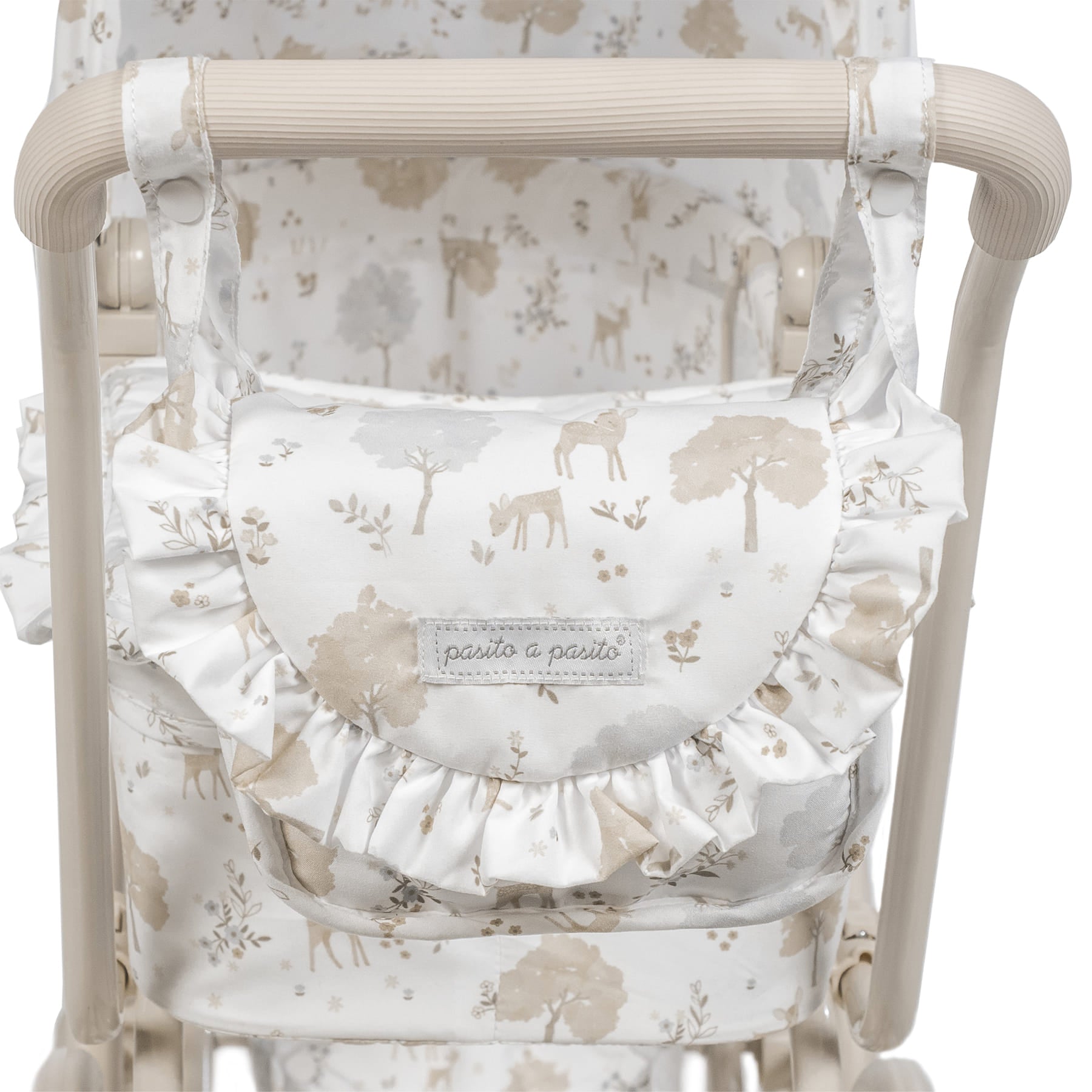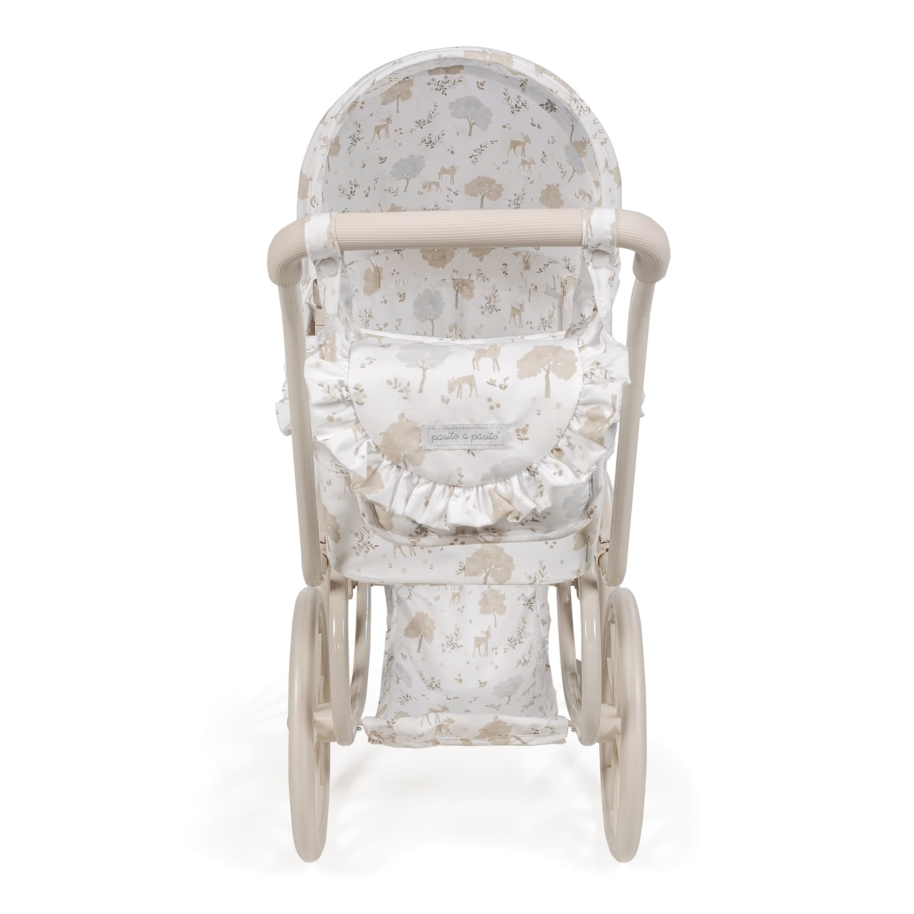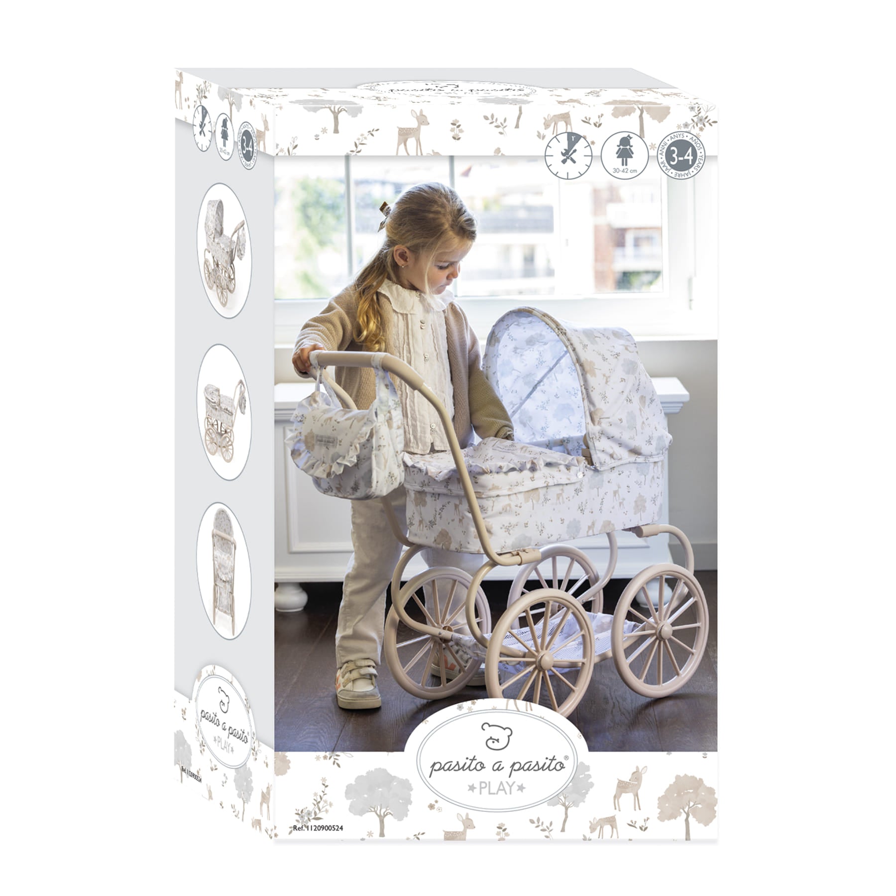 Classico passeggino per bambole Pasito a Pasito Collezione Nara – Passeggiate da sogno per le tue bambole! Immergiti nell’eleganza e nella tradizione con il magnifico passeggino classico per bambole dell’esclusiva collezione Nara di Pasito a Pasito. Questo incantevole passeggino, con il suo design vintage e i dettagli raffinati, è il giocattolo perfetto per bambini e bambine dai 3 ai 4 anni che desiderano portare a spasso le loro bambole con un tocco di classe. Design classico e romantico: ispirato ai passeggini di una volta, presenta una struttura robusta con grandi ruote in stile tradizionale e una capottina spaziosa, che evocano nostalgia e bellezza senza tempo. Emblematica stampa “Nara”: decorato con la delicata e dolce stampa di cerbiatti della collezione Nara di Pasito a Pasito, nei toni del beige, che conferisce un tocco di raffinatezza e tenerezza. Dettagli premium: finiture curate nei minimi dettagli, con volant e una confezione impeccabile che sottolineano la qualità e la cura del marchio Pasito a Pasito. Altezza ideale del manubrio: con un manubrio alto 68 cm, questo passeggino è perfettamente adatto all’altezza dei bambini dai 3 ai 4 anni, garantendo una presa comoda e un’esperienza di gioco naturale. Ampio spazio per le bambole: le sue generose dimensioni di 74x41x68h cm lo rendono ideale per bambole da 30 a 42 cm, consentendo ai “bambini” di riposare e viaggiare in totale comfort. Include borsa da passeggio abbinata: il passeggino è accompagnato da un’adorabile borsa da passeggio con lo stesso motivo Nara, perfetta per i bambini per trasportare gli accessori delle loro bambole o i loro piccoli tesori. Struttura robusta e stabile: progettato per resistere al gioco quotidiano, garantendo stabilità e sicurezza ad ogni passeggiata. Conforme alla normativa europea EN-71: come tutti i giocattoli Pasito a Pasito, questo passeggino è stato fabbricato secondo i più elevati standard di sicurezza e ha superato i severi test della normativa europea EN-71, garantendo un gioco sicuro e senza preoccupazioni. Questo passeggino classico per bambole non è solo un giocattolo, ma un invito al gioco di ruolo che stimola l’immaginazione, l’empatia e le abilità sociali dei bambini mentre imitano gli adulti nelle loro attività di cura. Un regalo memorabile che delizierà qualsiasi piccolo/ e amante delle bambole. Lascia che la magia dell’infanzia prenda vita con l’elegante passeggino classico per bambole Pasito a Pasito Collezione Nara!