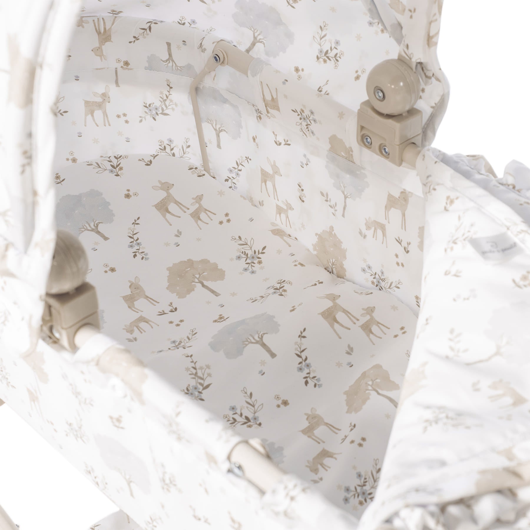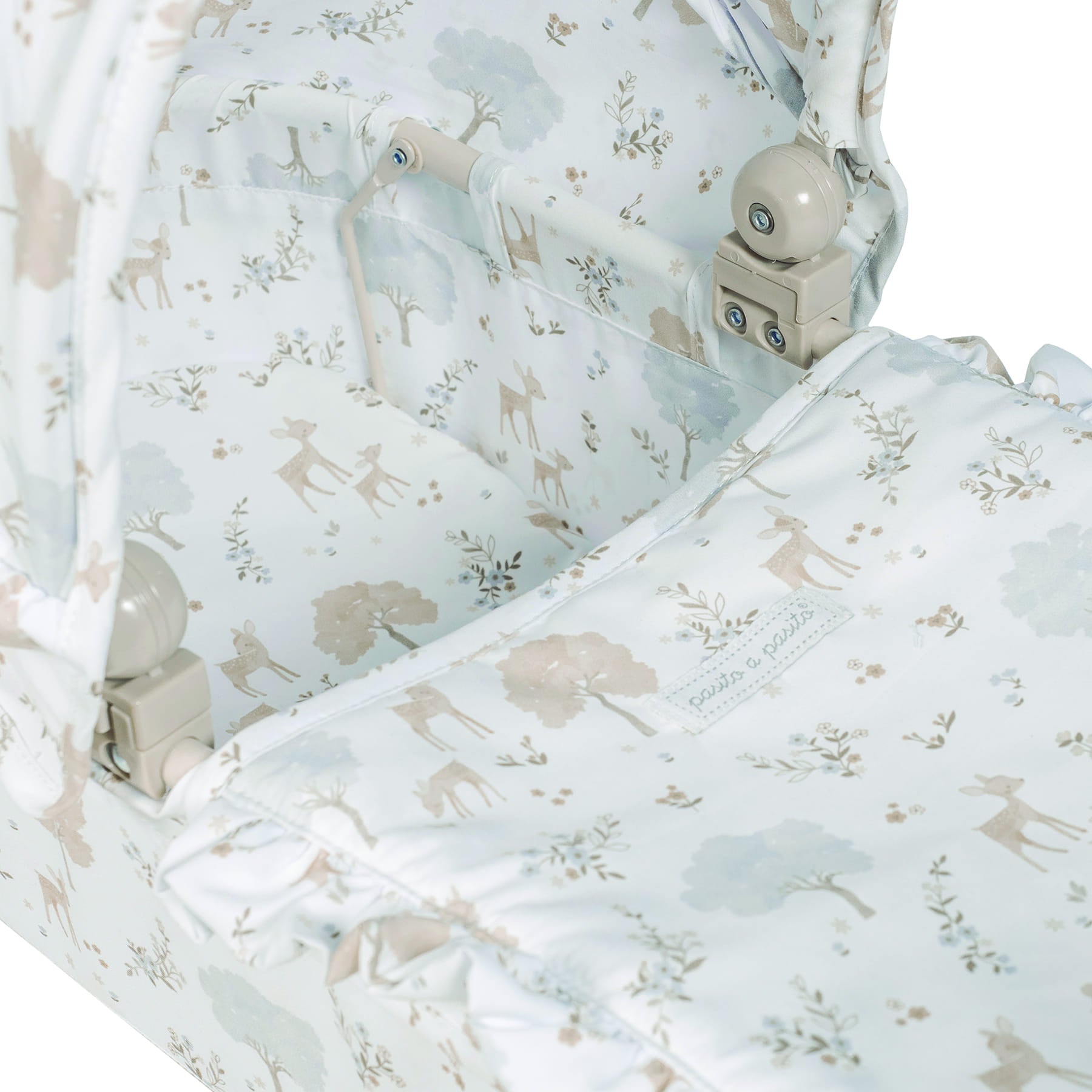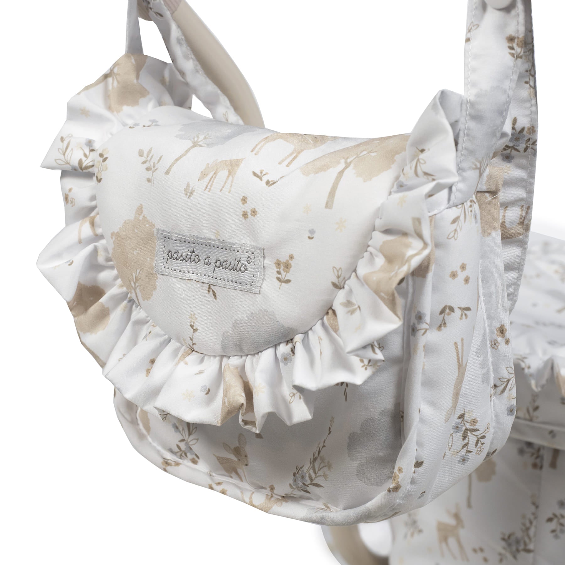 Classico passeggino per bambole Pasito a Pasito Collezione Nara – Passeggiate da sogno per le tue bambole! Immergiti nell’eleganza e nella tradizione con il magnifico passeggino classico per bambole dell’esclusiva collezione Nara di Pasito a Pasito. Questo incantevole passeggino, con il suo design vintage e i dettagli raffinati, è il giocattolo perfetto per bambini e bambine dai 3 ai 4 anni che desiderano portare a spasso le loro bambole con un tocco di classe. Design classico e romantico: ispirato ai passeggini di una volta, presenta una struttura robusta con grandi ruote in stile tradizionale e una capottina spaziosa, che evocano nostalgia e bellezza senza tempo. Emblematica stampa “Nara”: decorato con la delicata e dolce stampa di cerbiatti della collezione Nara di Pasito a Pasito, nei toni del beige, che conferisce un tocco di raffinatezza e tenerezza. Dettagli premium: finiture curate nei minimi dettagli, con volant e una confezione impeccabile che sottolineano la qualità e la cura del marchio Pasito a Pasito. Altezza ideale del manubrio: con un manubrio alto 68 cm, questo passeggino è perfettamente adatto all’altezza dei bambini dai 3 ai 4 anni, garantendo una presa comoda e un’esperienza di gioco naturale. Ampio spazio per le bambole: le sue generose dimensioni di 74x41x68h cm lo rendono ideale per bambole da 30 a 42 cm, consentendo ai “bambini” di riposare e viaggiare in totale comfort. Include borsa da passeggio abbinata: il passeggino è accompagnato da un’adorabile borsa da passeggio con lo stesso motivo Nara, perfetta per i bambini per trasportare gli accessori delle loro bambole o i loro piccoli tesori. Struttura robusta e stabile: progettato per resistere al gioco quotidiano, garantendo stabilità e sicurezza ad ogni passeggiata. Conforme alla normativa europea EN-71: come tutti i giocattoli Pasito a Pasito, questo passeggino è stato fabbricato secondo i più elevati standard di sicurezza e ha superato i severi test della normativa europea EN-71, garantendo un gioco sicuro e senza preoccupazioni. Questo passeggino classico per bambole non è solo un giocattolo, ma un invito al gioco di ruolo che stimola l’immaginazione, l’empatia e le abilità sociali dei bambini mentre imitano gli adulti nelle loro attività di cura. Un regalo memorabile che delizierà qualsiasi piccolo/ e amante delle bambole. Lascia che la magia dell’infanzia prenda vita con l’elegante passeggino classico per bambole Pasito a Pasito Collezione Nara!