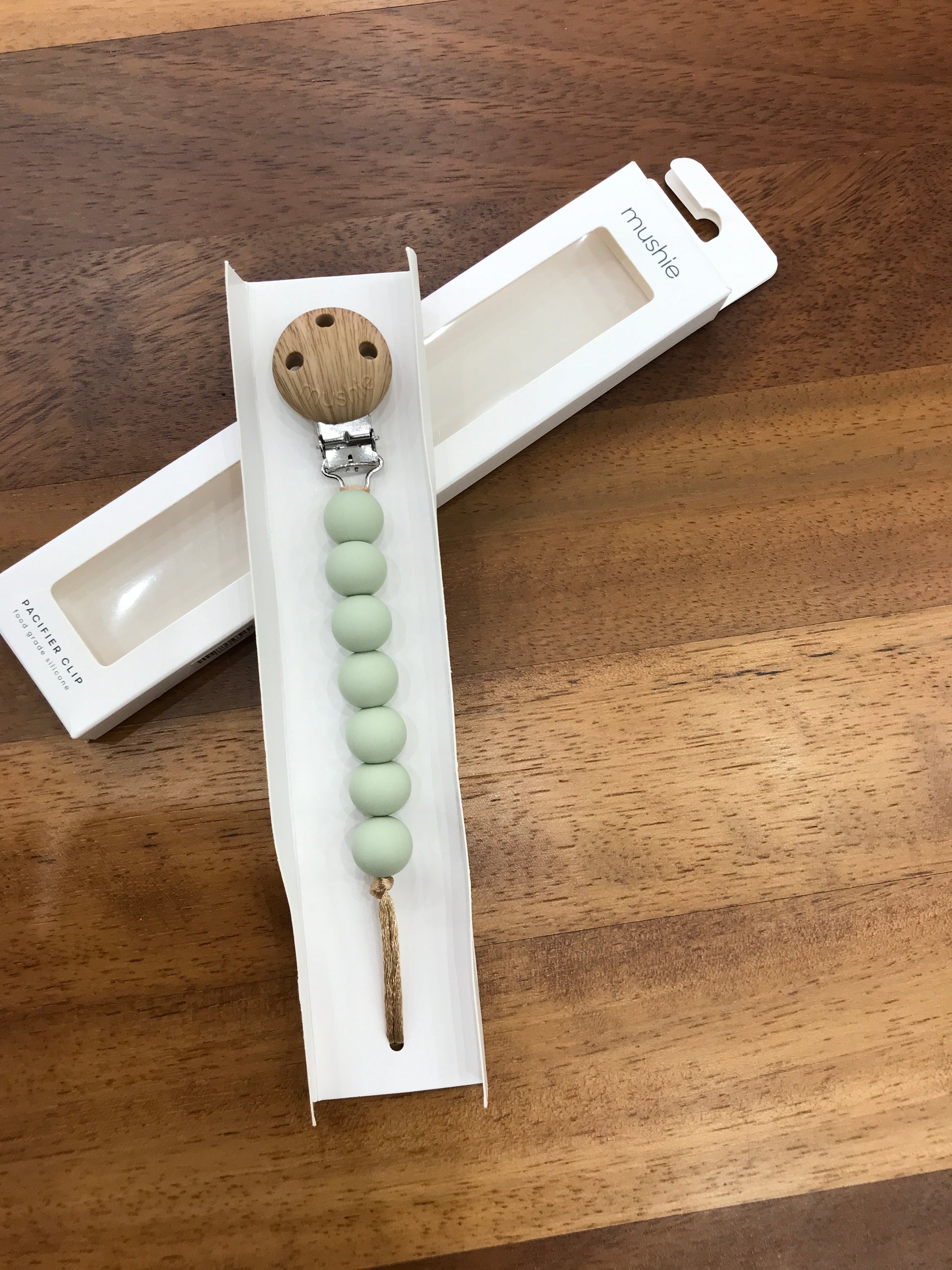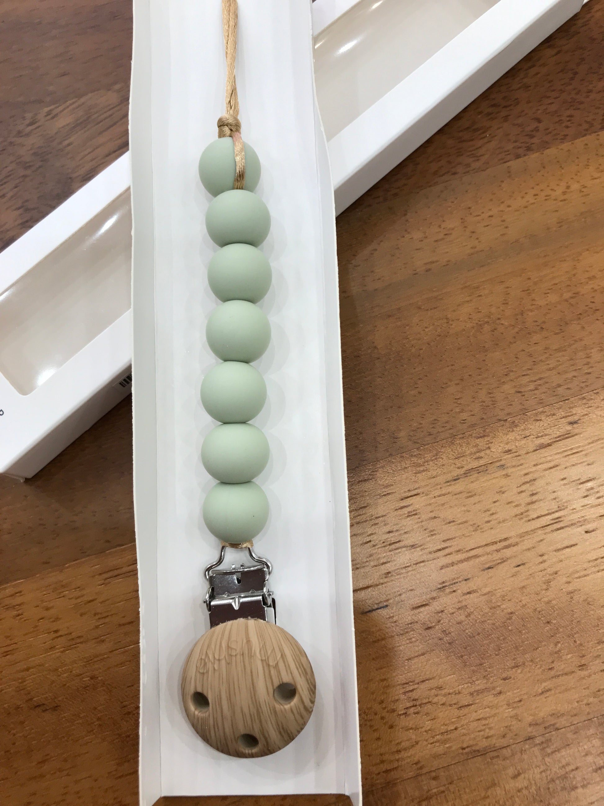 Questa catenina per ciuccio, realizzata in silicone resistente e sicuro, presenta una tonalità verde elegante. Progettata per garantire praticità e igiene, mantiene il ciuccio sempre a portata di mano, evitando che cada o si perda durante l’uso quotidiano.