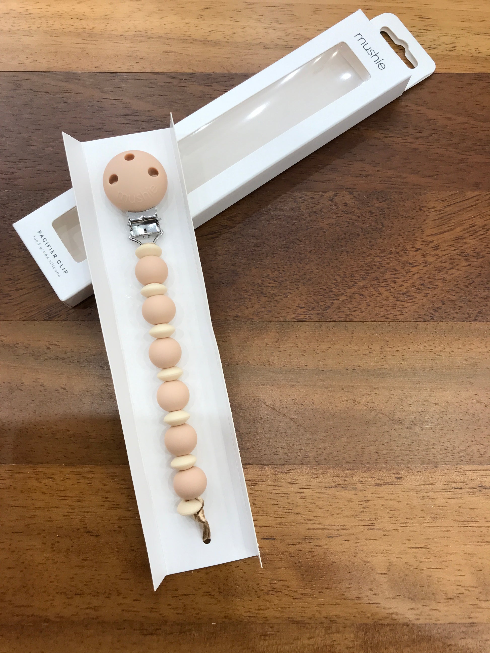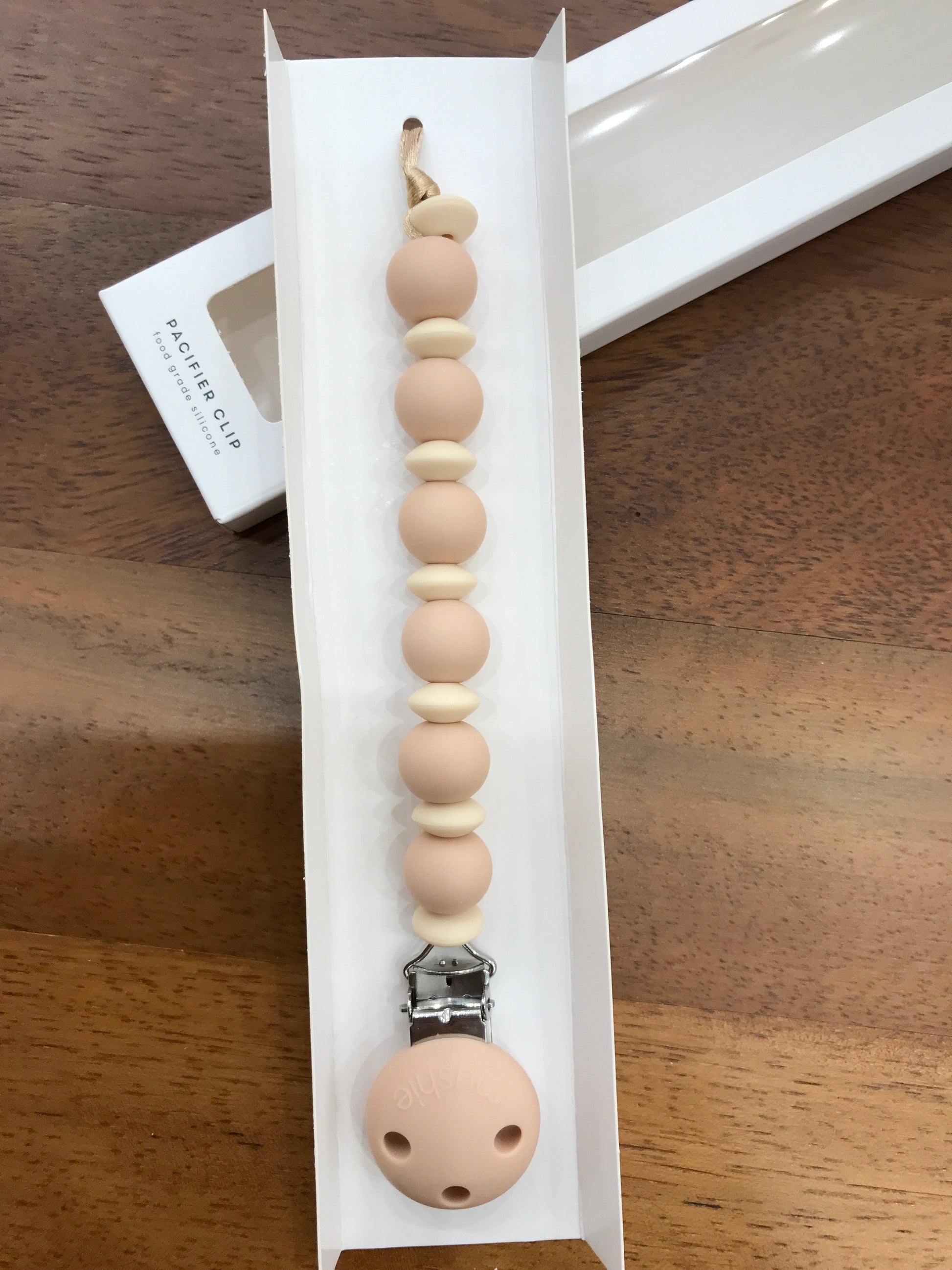 Questa catenina per ciuccio, realizzata in silicone resistente e sicuro, presenta una tonalità rosa e beige elegante. Progettata per garantire praticità e igiene, mantiene il ciuccio sempre a portata di mano, evitando che cada o si perda durante l’uso quotidiano.