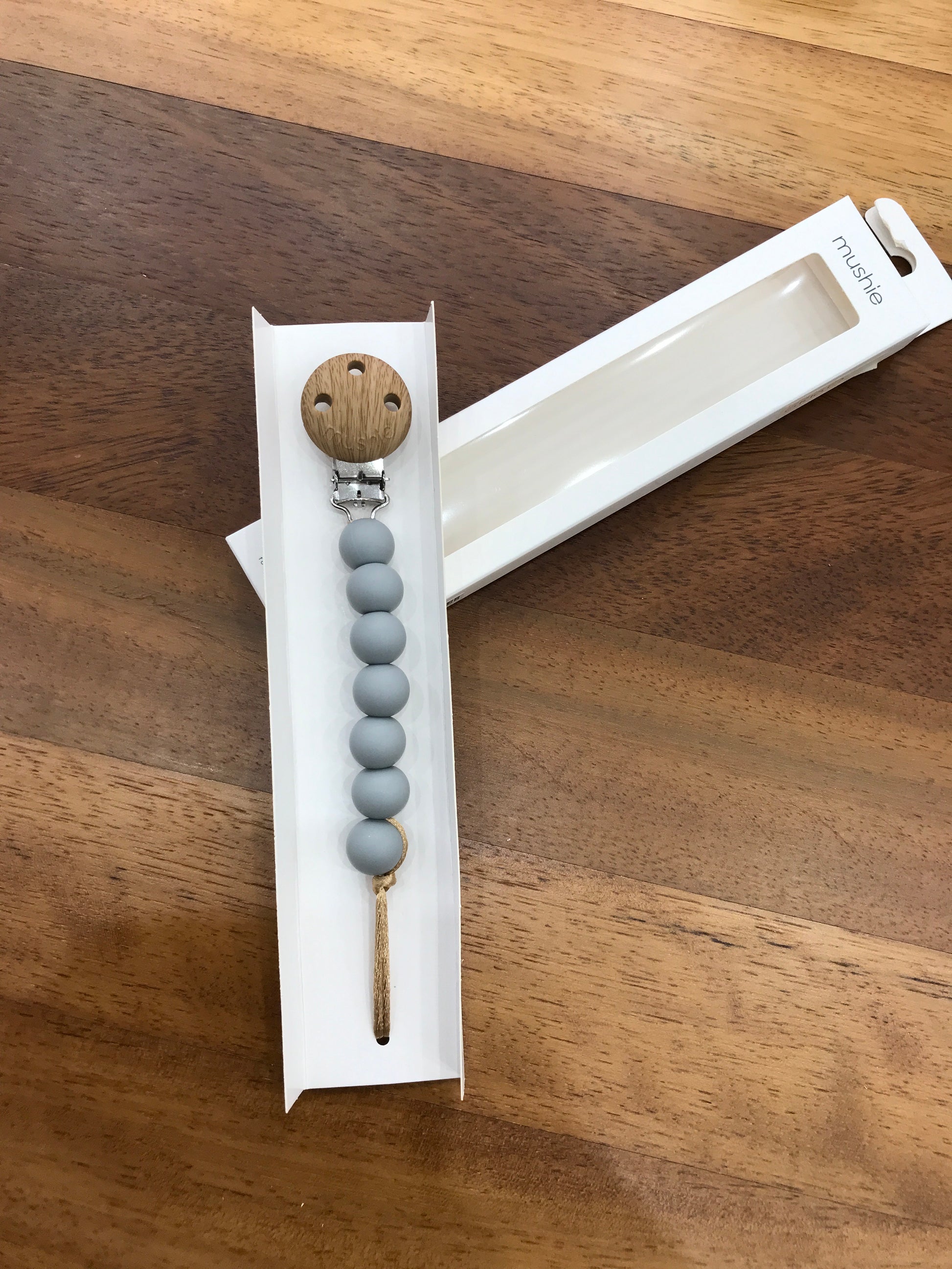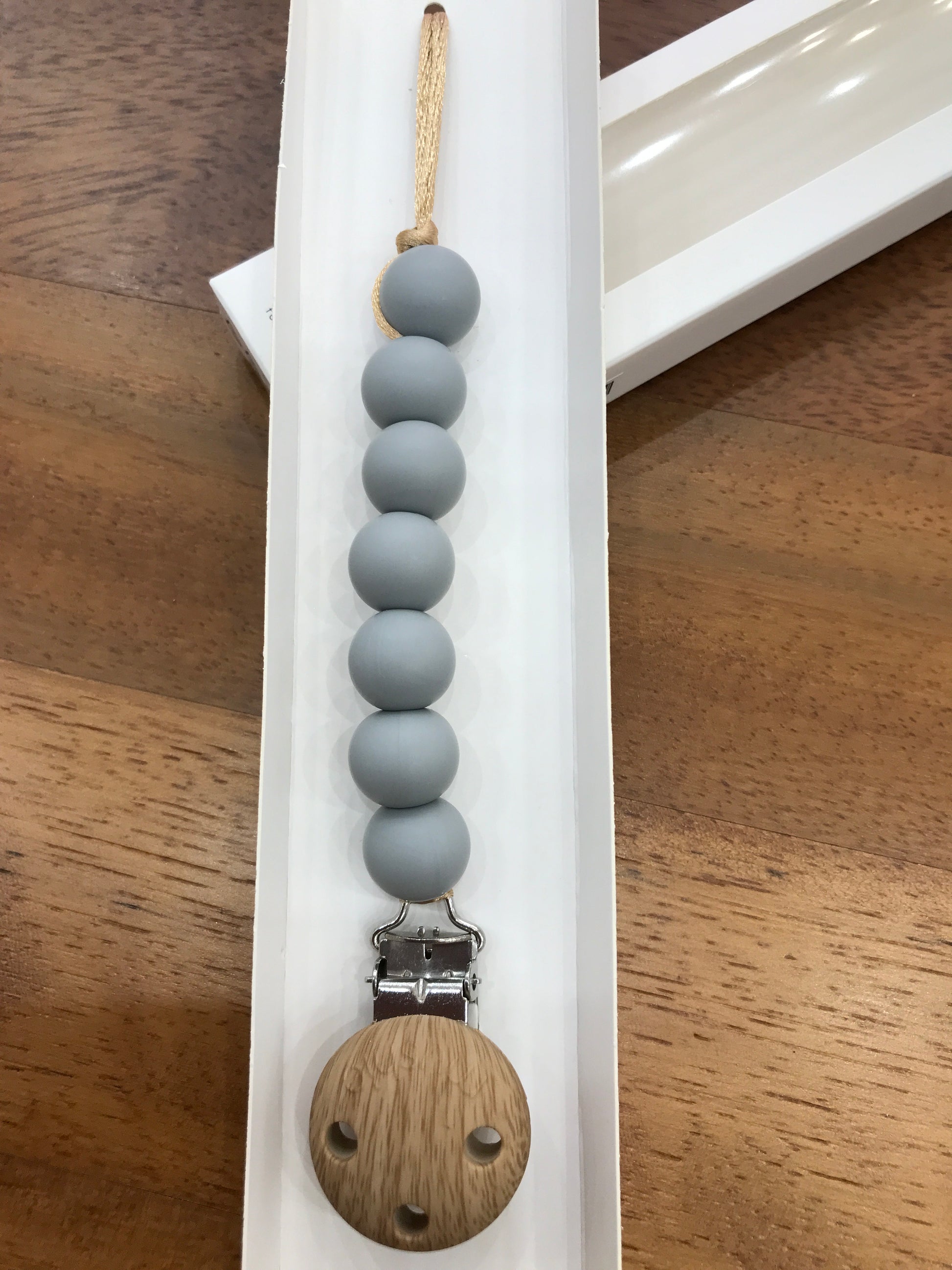 Questa catenina per ciuccio, realizzata in silicone resistente e sicuro, presenta una tonalità grigio . Progettata per garantire praticità e igiene, mantiene il ciuccio sempre a portata di mano, evitando che cada o si perda durante l’uso quotidiano.