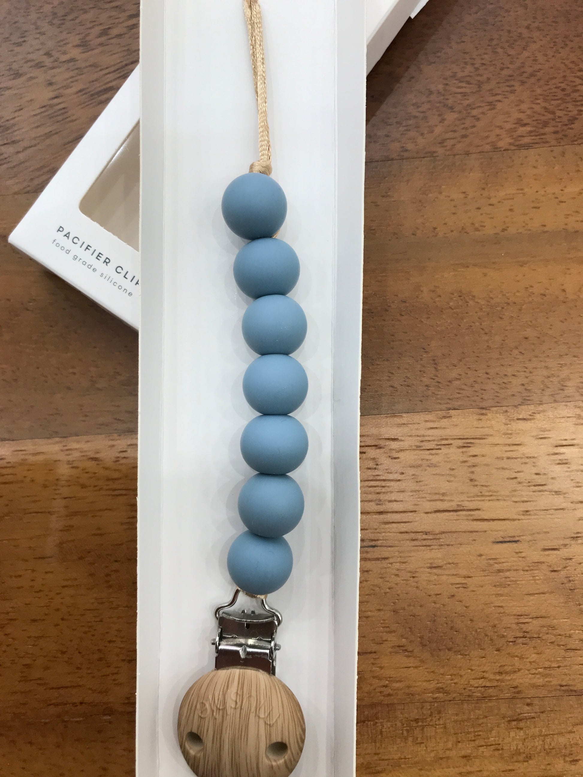 Questa catenina per ciuccio, realizzata in silicone resistente e sicuro, presenta una tonalità azzurro elegante. Progettata per garantire praticità e igiene, mantiene il ciuccio sempre a portata di mano, evitando che cada o si perda durante l’uso quotidiano.