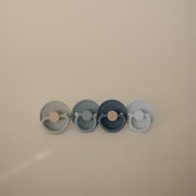 Il set comprende quattro ciucci di colore celeste, verde, ciascuno caratterizzato da una forma differente. Questa varietà permette di scegliere il modello più adatto alle preferenze e al comfort del bambino, garantendo un’esperienza personalizzata e funzionale.