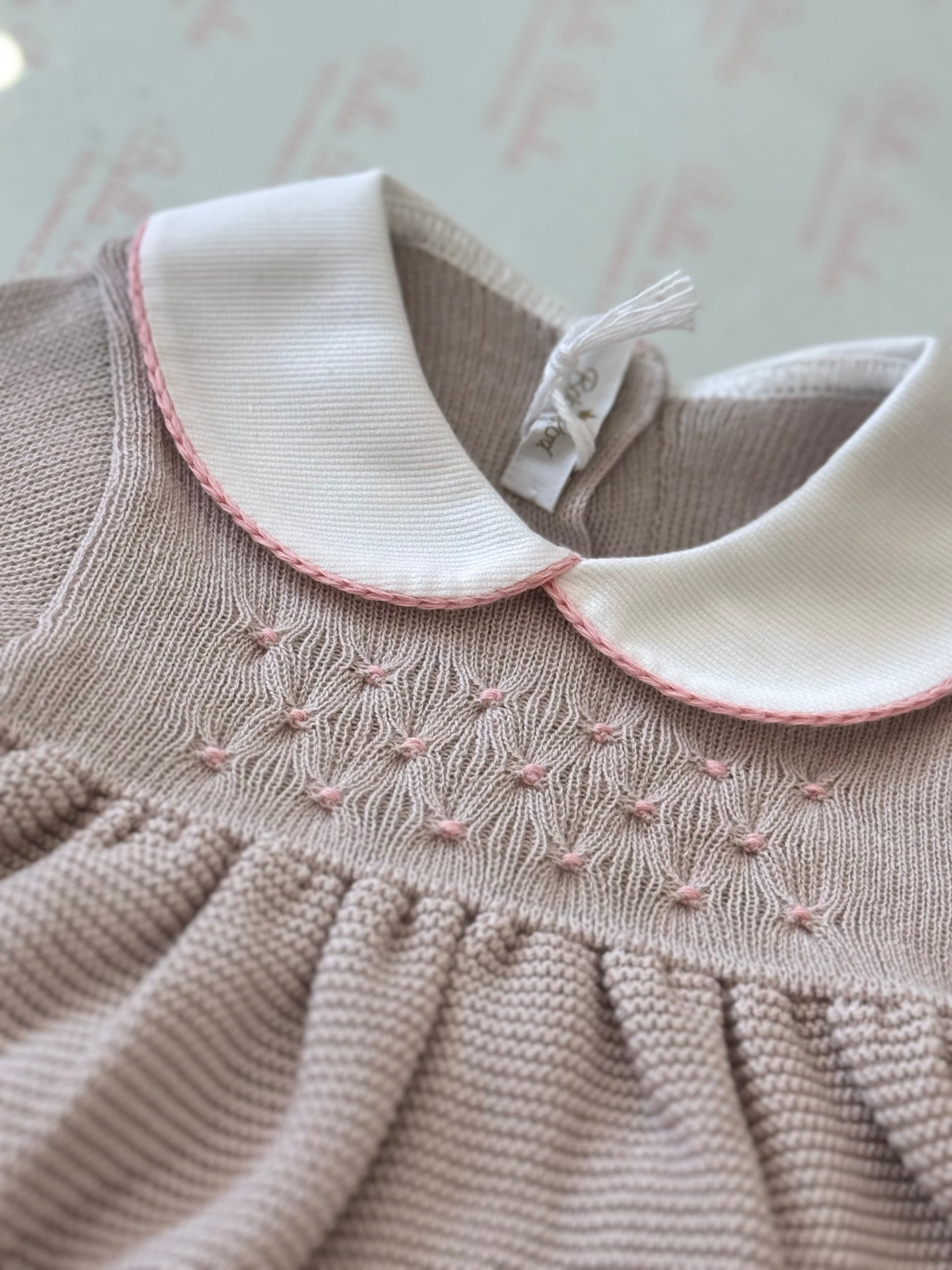 Realizzato in morbido cotone, il completino baby lord è caratterizzato da una deliziosa culotte con vestina. Il corpetto è ornato da un bellissimo ricamo a nido d'ape, donando al capo un tocco di semplicità ed eleganza senza tempo
