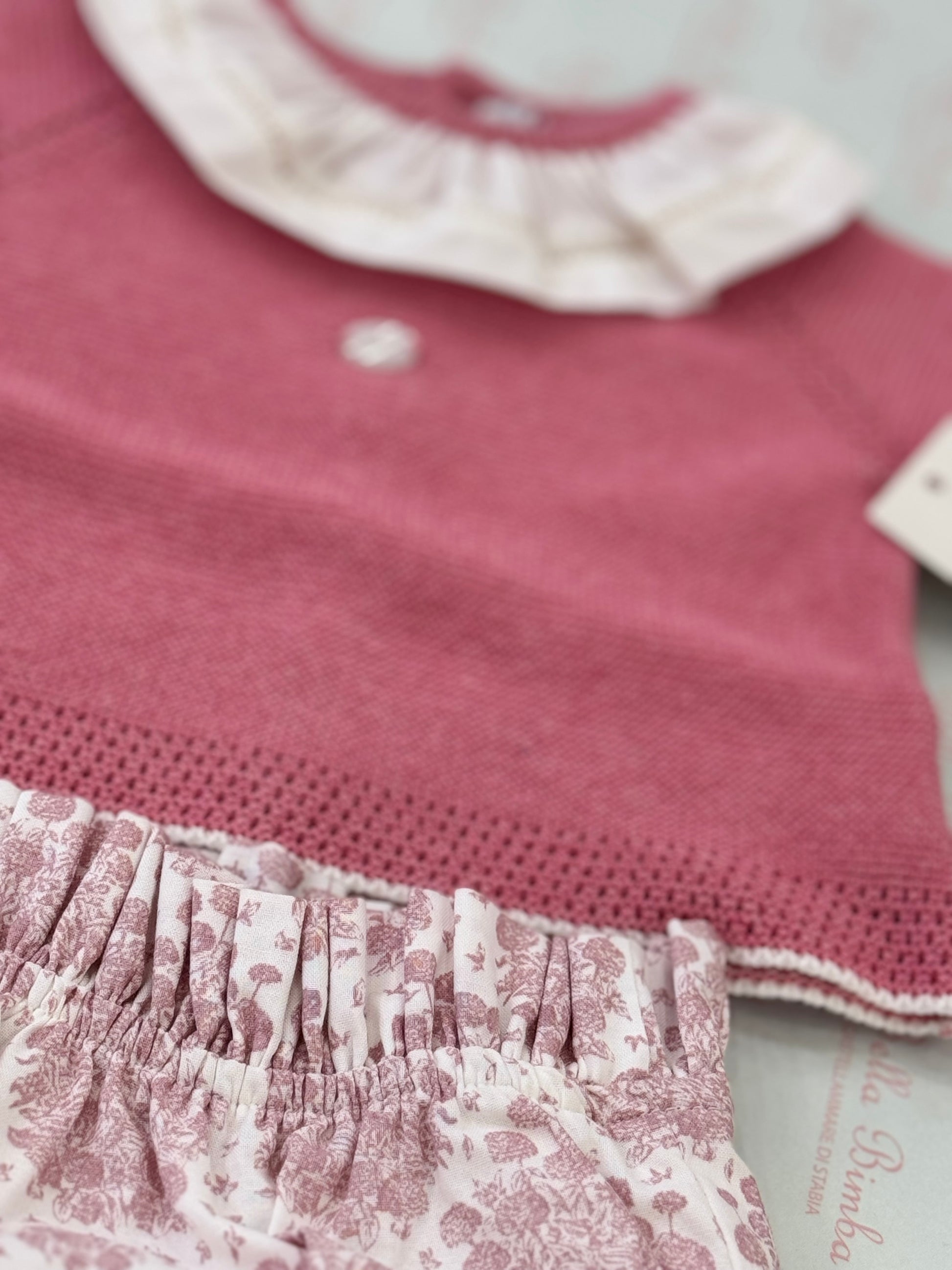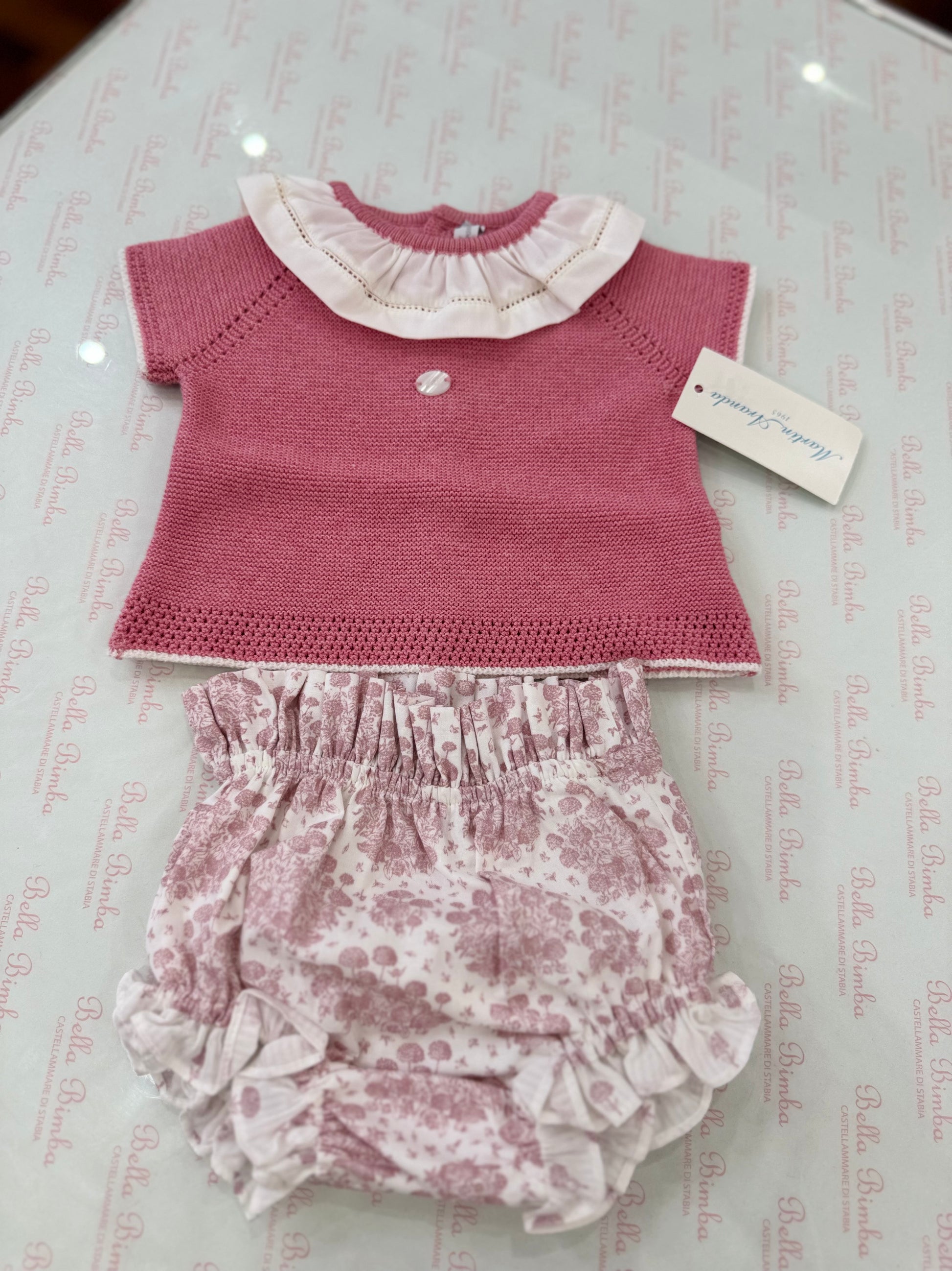 Scopri il comfort e lo stile del completino Martina Aranda! Composto da culotte a stampa floreale e maglia fragola con collo rouche bianco, questo completino ti farà sentire a tuo agio con i suoi tessuti morbidi e la sua vestibilità perfetta. Perfetto per un look sofisticato e alla moda.