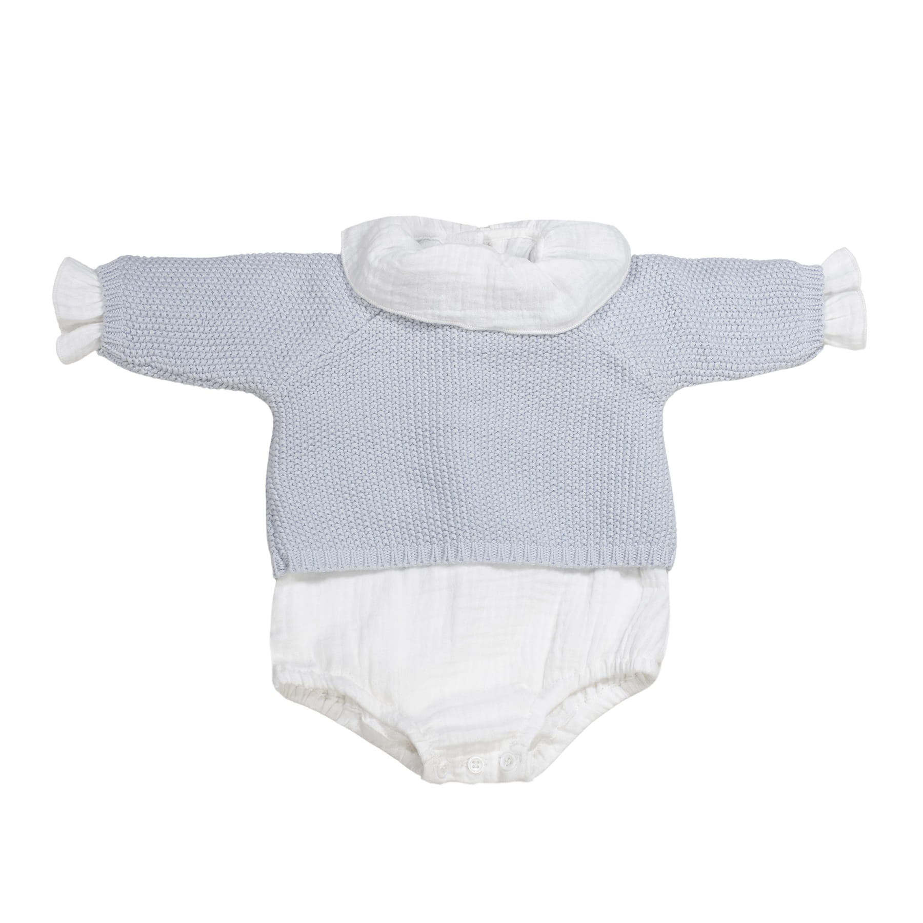 Completo 3 pezzi in tricot celeste neonato Pasito a Pasito, eleganza e comfort fin dal primo giorno. Il completo ideale per accogliere il tuo bambino con stile e morbidezza. Questo completo da 3 pezzi include un maglione e una tutina a palloncino in tricot 100% cotone con una delicata lavorazione a punto riso e uncinetto, più una tutina in bambù tinta unita, sempre in 100% cotone. Una proposta comoda e raffinata per i primi giorni di un neonato. Presentato in una splendida scatola stampata, perfetto come regalo per un neonato o per completare il primo outfit del tuo bambino. Grande qualità e stile. Tutti i nostri prodotti sono realizzati secondo i più alti standard europei. Certificati EN-71 / SVHC / EN-14362 Azo free, privi di sostanze nocive. Facili da pulire, si consiglia il lavaggio in lavatrice a 30°. I prodotti per neonati Pasito a Pasito hanno un design molto diverso da tutti gli altri. Le loro collezioni si caratterizzano per la cura dei dettagli, sempre concepita da un punto di vista pratico. Utilizzano materiali di alta qualità per evidenziare l’eleganza e l’armonia in ogni loro capo. I nostri modelli sono esclusivi e inconfondibilmente eleganti, pensati per le mamme moderne che, come noi, amano il buon gusto e apprezzano i dettagli. Taglie: 0-1 mese / 56 cm.