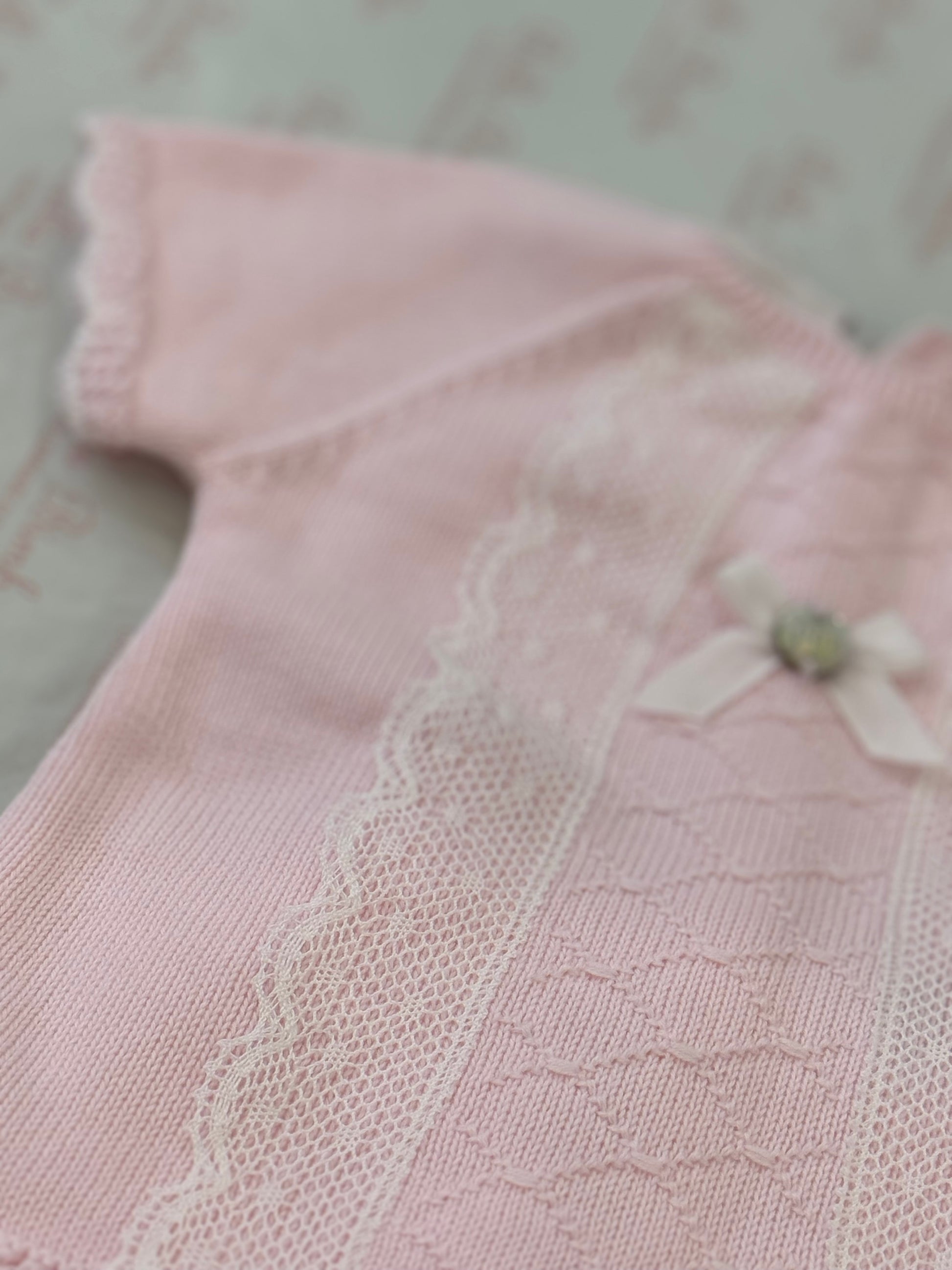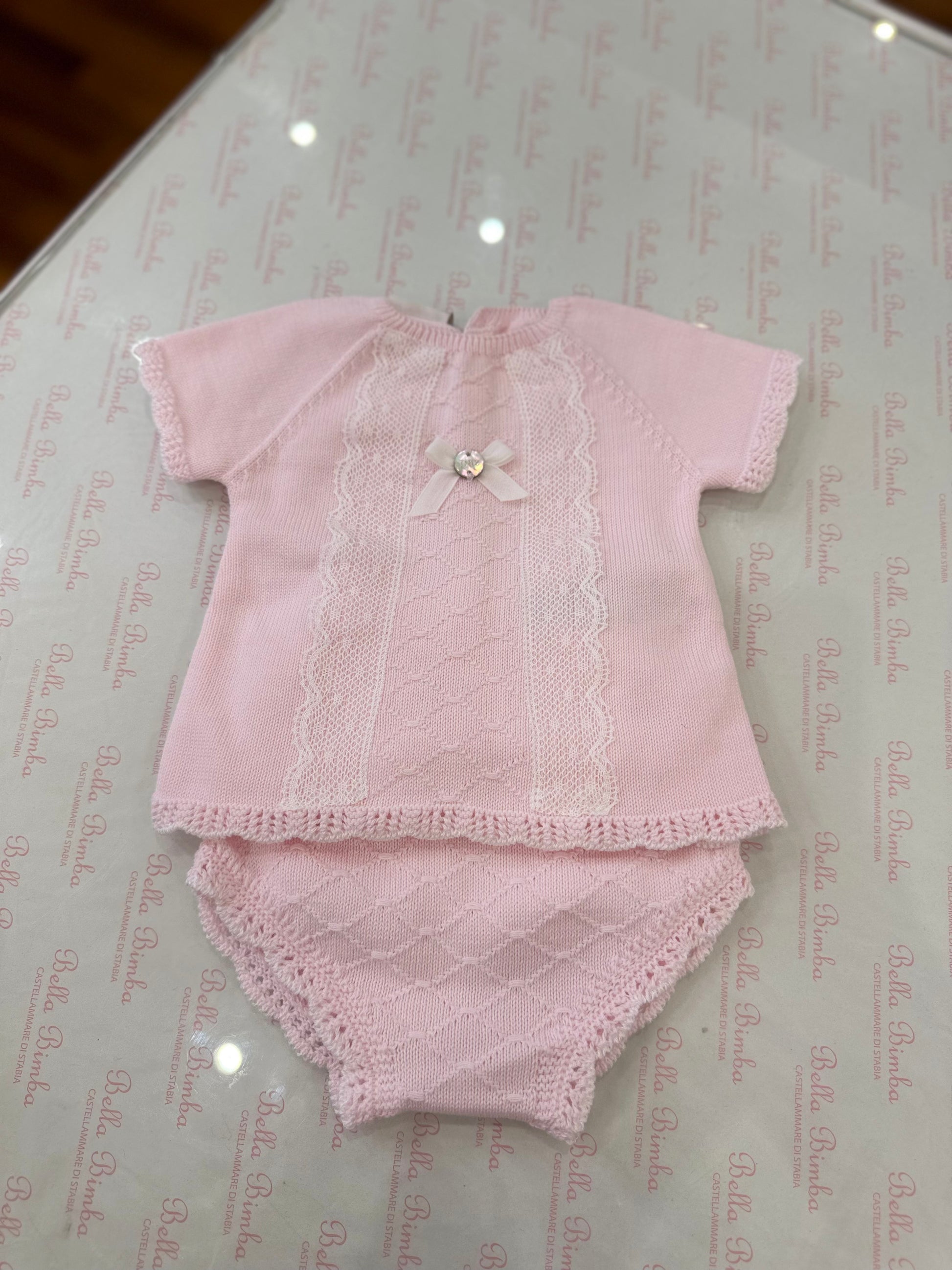 Questo completino Paz Rodriguez in rosa è perfetto per le giornate di primavera ed estate. La maglia in filo di cotone offre un comfort leggero ma resistente, mentre la culotte garantisce una vestibilità comoda. Il pizzo sul davanti aggiunge un tocco di eleganza e raffinatezza al look.