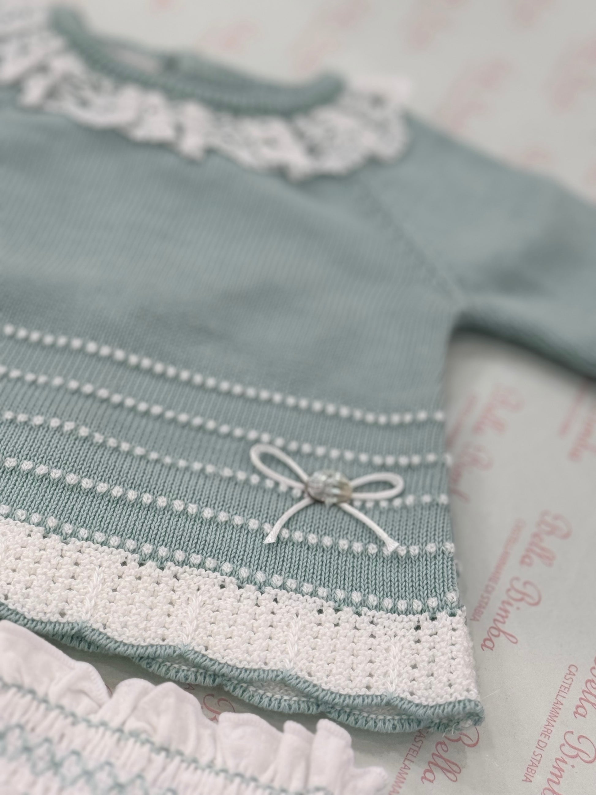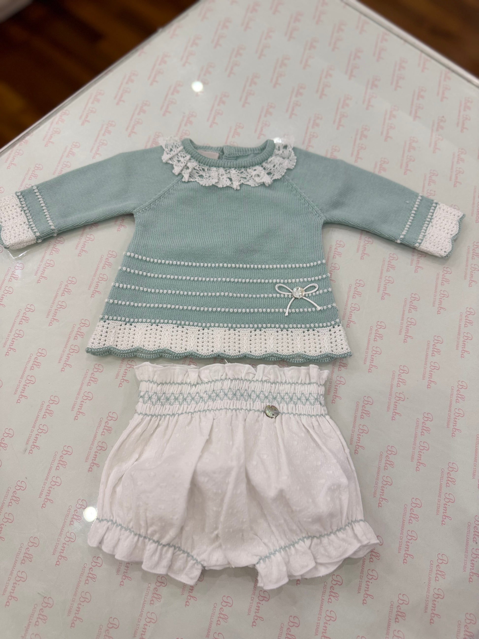 Questo delizioso completino Paz Rodriguez è perfetto per far sentire la tua piccola comoda e a suo agio. La culotte in cotone assicura una vestibilità comoda, mentre la maglia in filo verde garantisce una traspirabilità ottimale .Ideale per ogni occasione.