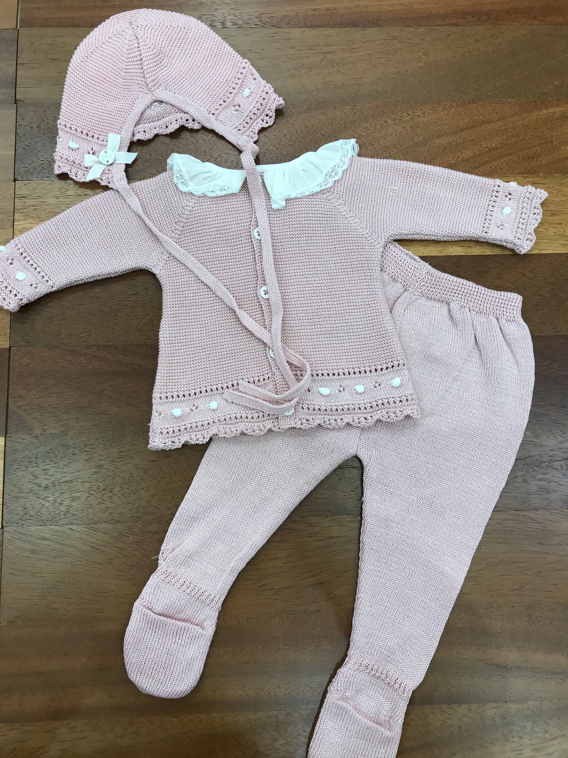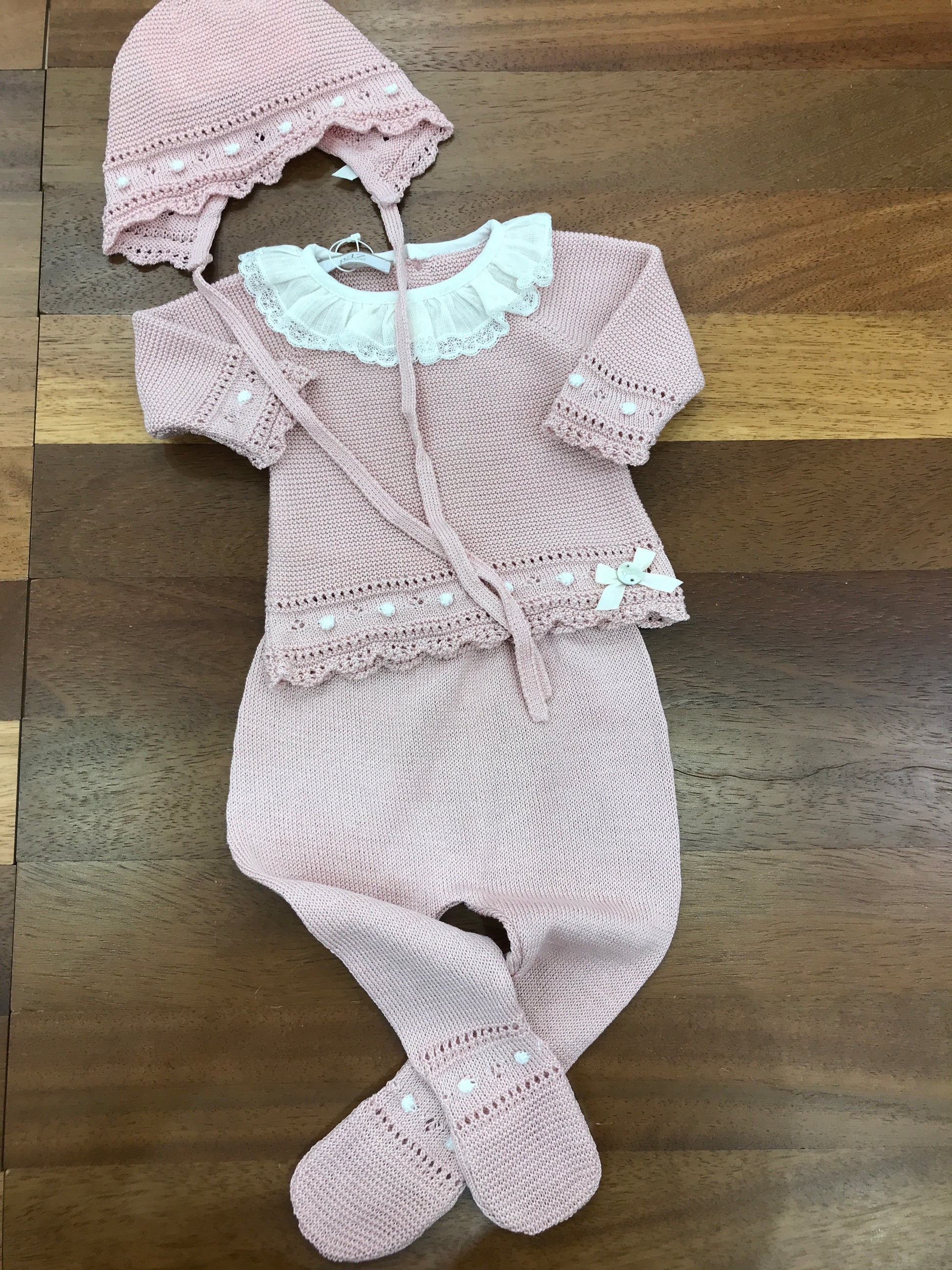 Questo delicato completino Paz Rodriguez combina eleganza e praticità in un set di due pezzi realizzato in filo pregiato. Il motivo a pois bianchi si distingue per la lavorazione in maglia raffinata, arricchita da dettagli traforati che conferiscono leggerezza e movimento. Il collo plissettato con rouches aggiunge un tocco di sofisticatezza. Perfetto per occasioni speciali, questo capo unisce qualità costruttiva e design ricercato.
