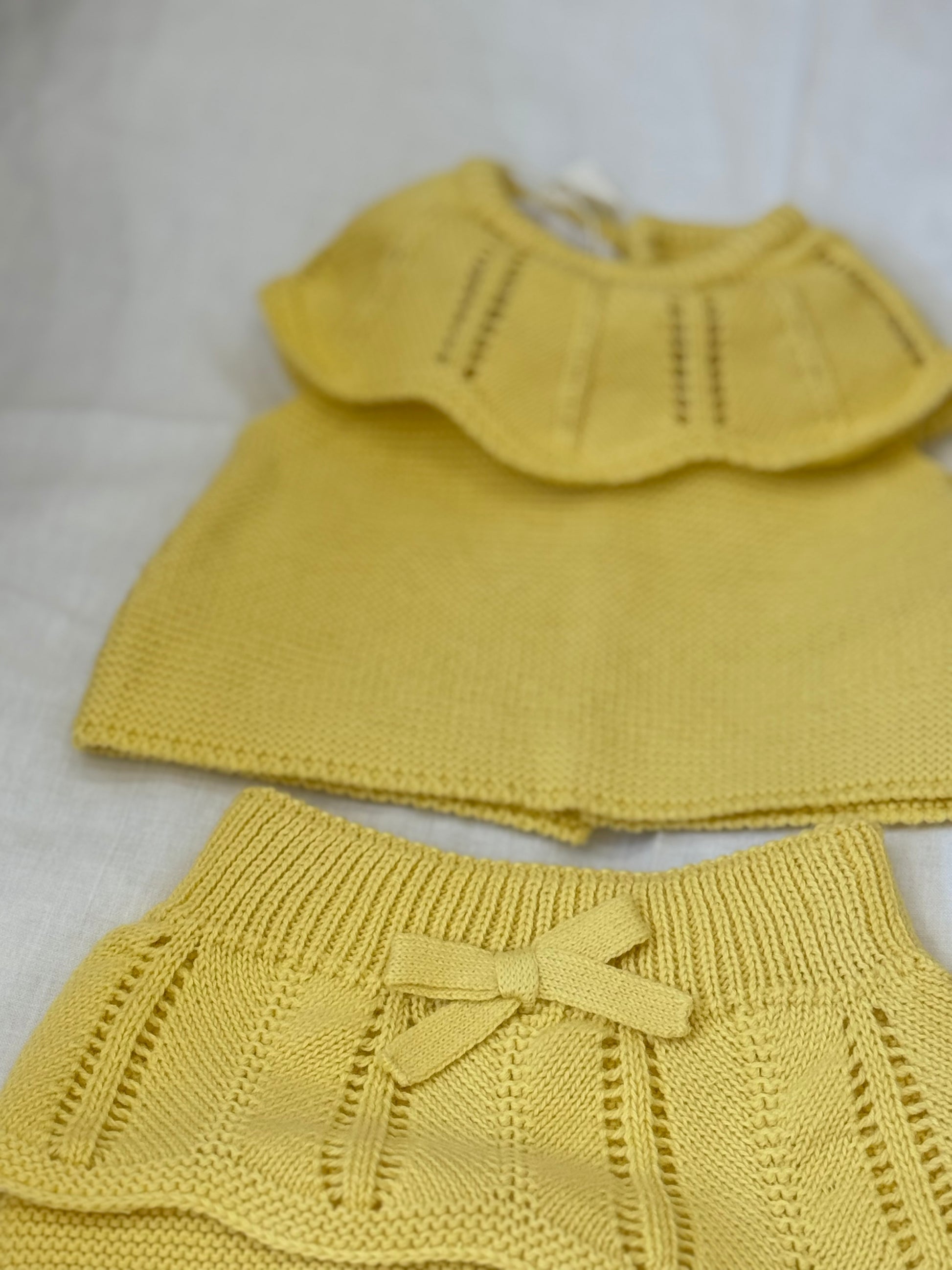 Il Completino PCS Baby è l'ideale per far sentire la tua piccola alla moda ma comoda. Il delizioso completino in filo di cotone giallo dal colore estivo è impreziosito da un collo corolla, perfetto per un look fresco e alla moda. Con culotte e maglia, regalerai alla tua bambina un outfit comodo e trendy.