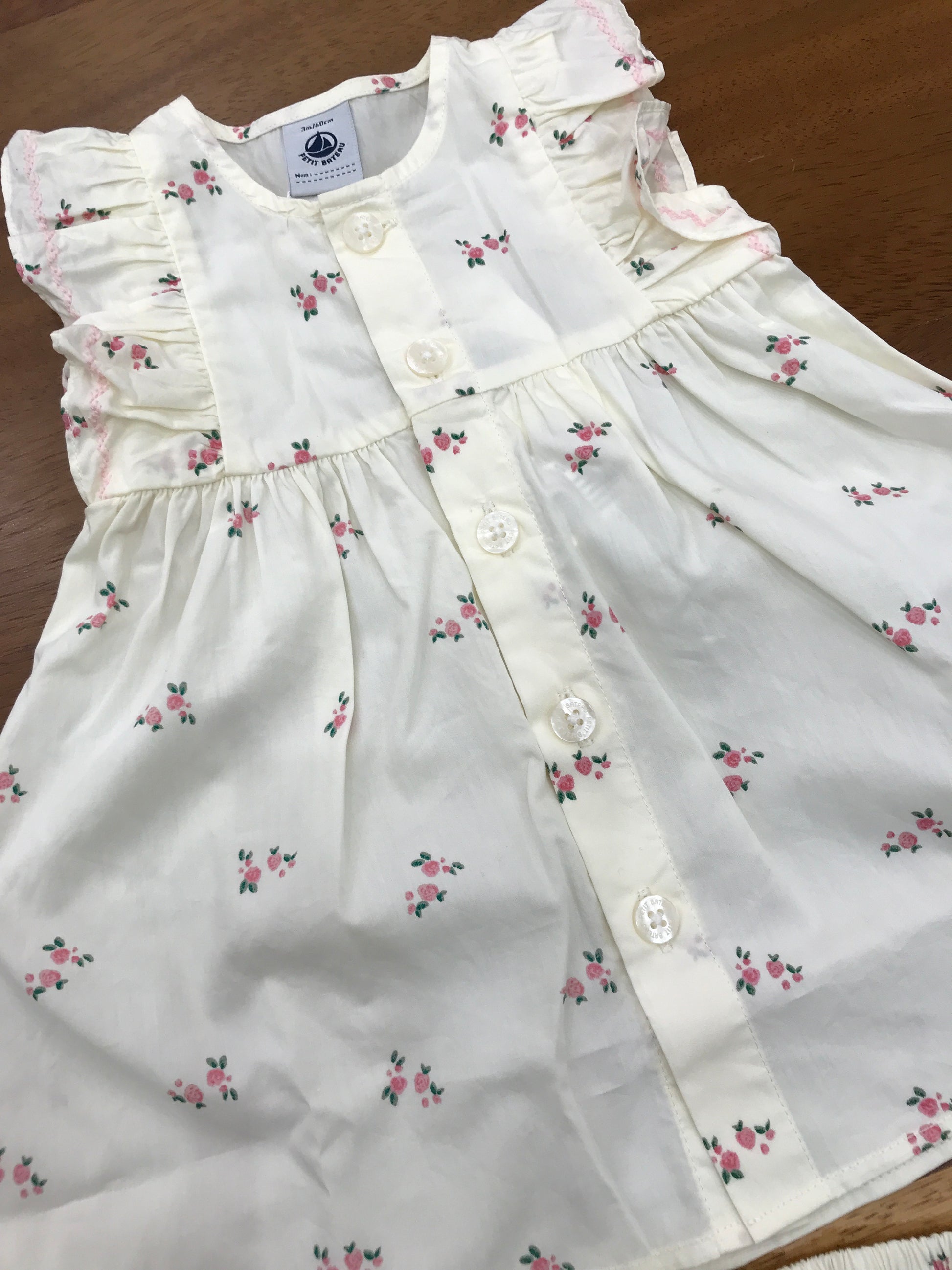 Completino Petit Bateau in cotone panna con fiori rosa con culotte