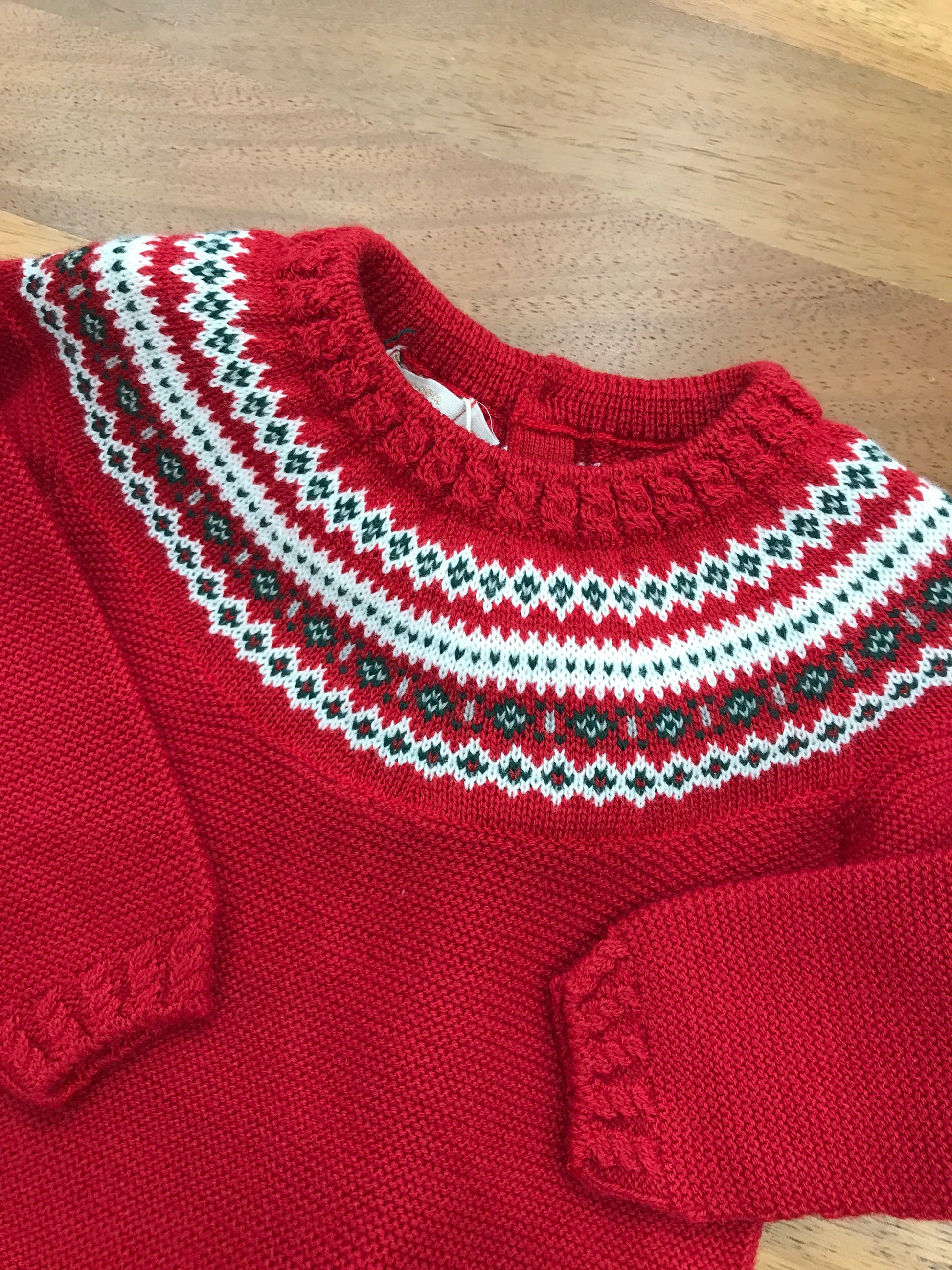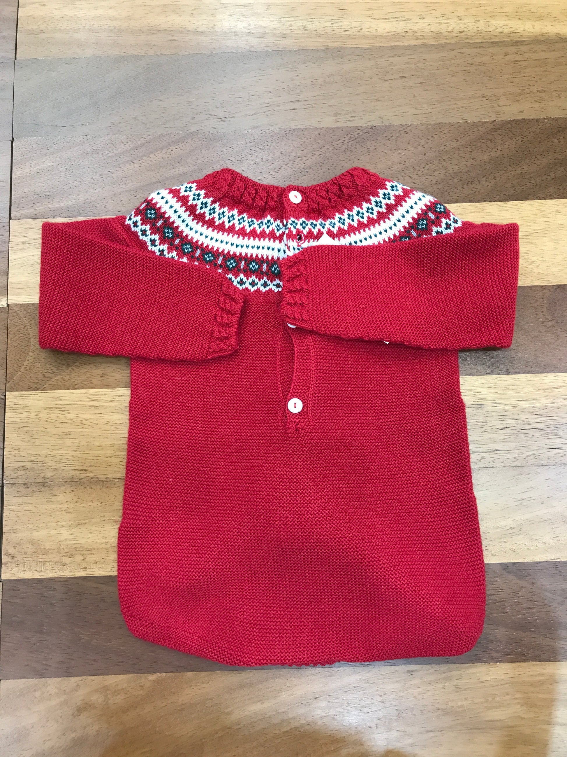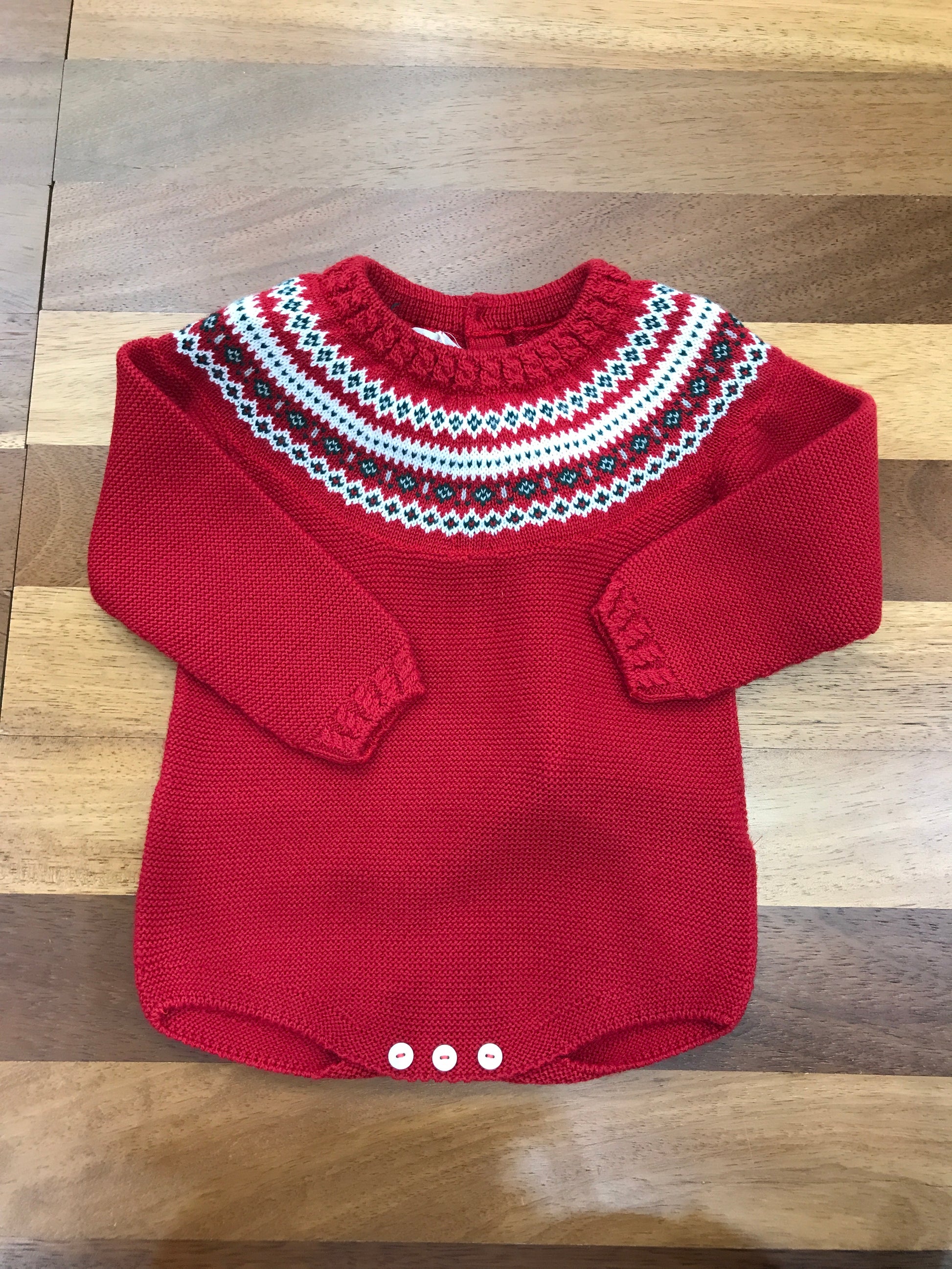 Pagliaccetto in tonalità rossa con maniche a lunghezza intera, caratterizzato da una raffinata decorazione che incornicia elegantemente la zona del petto. Un capo versatile che combina praticità e stile, ideale per completare il guardaroba dei più piccoli con un tocco di personalità.