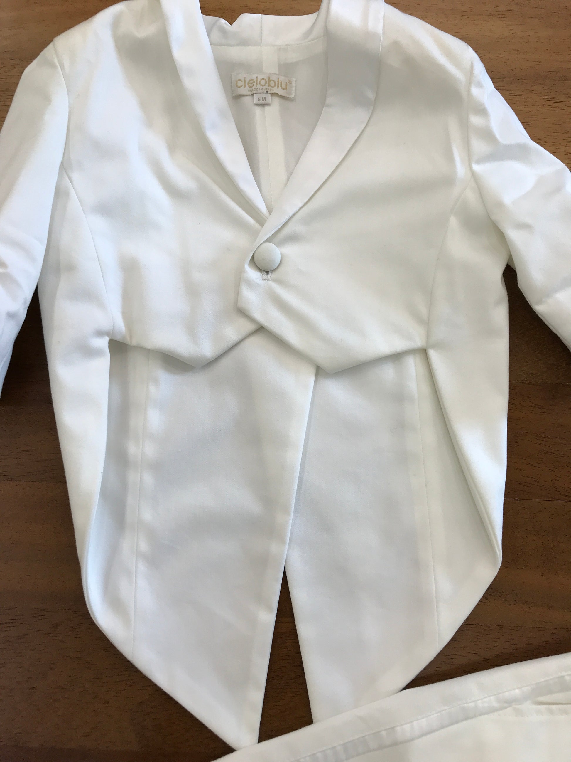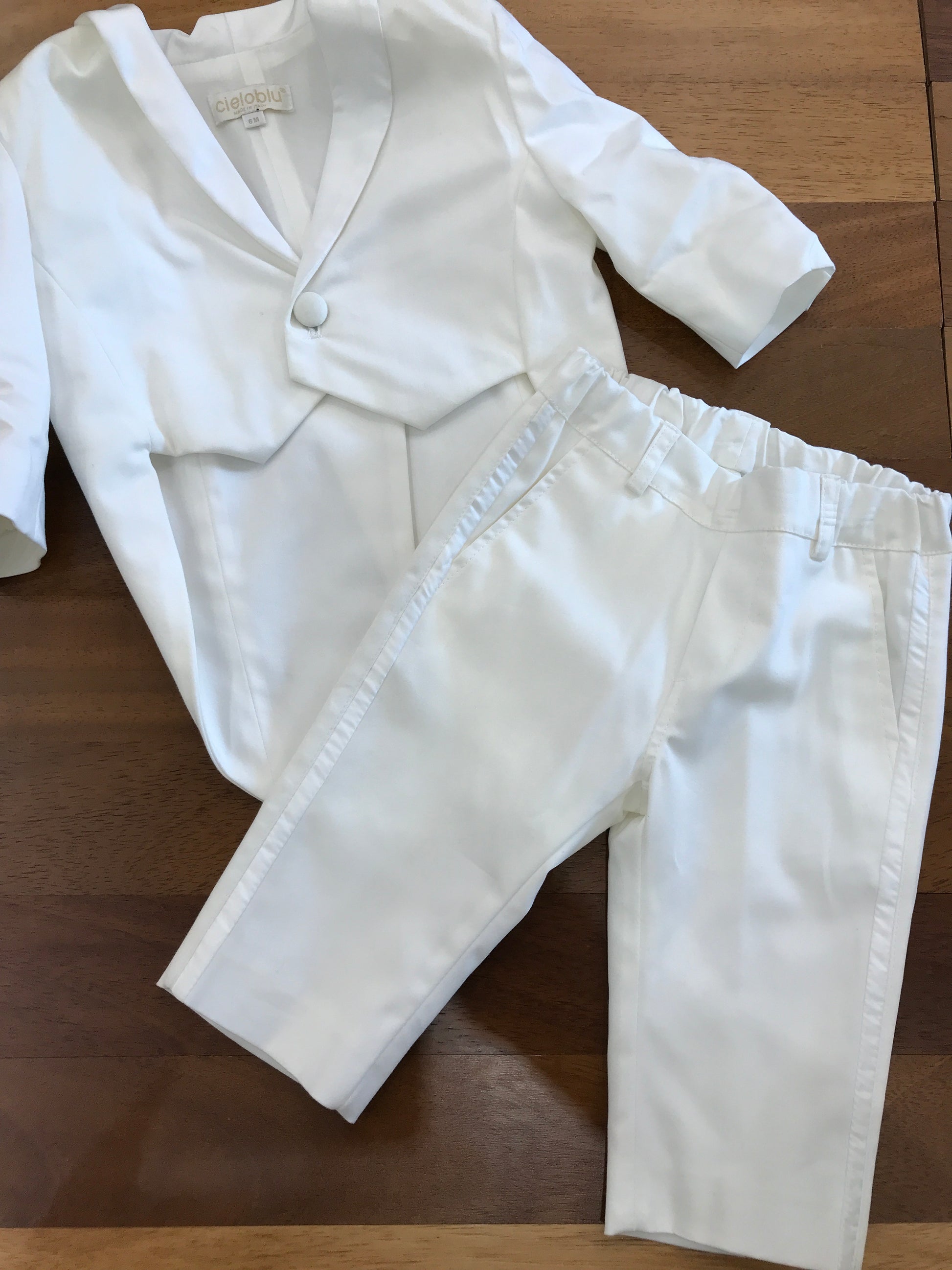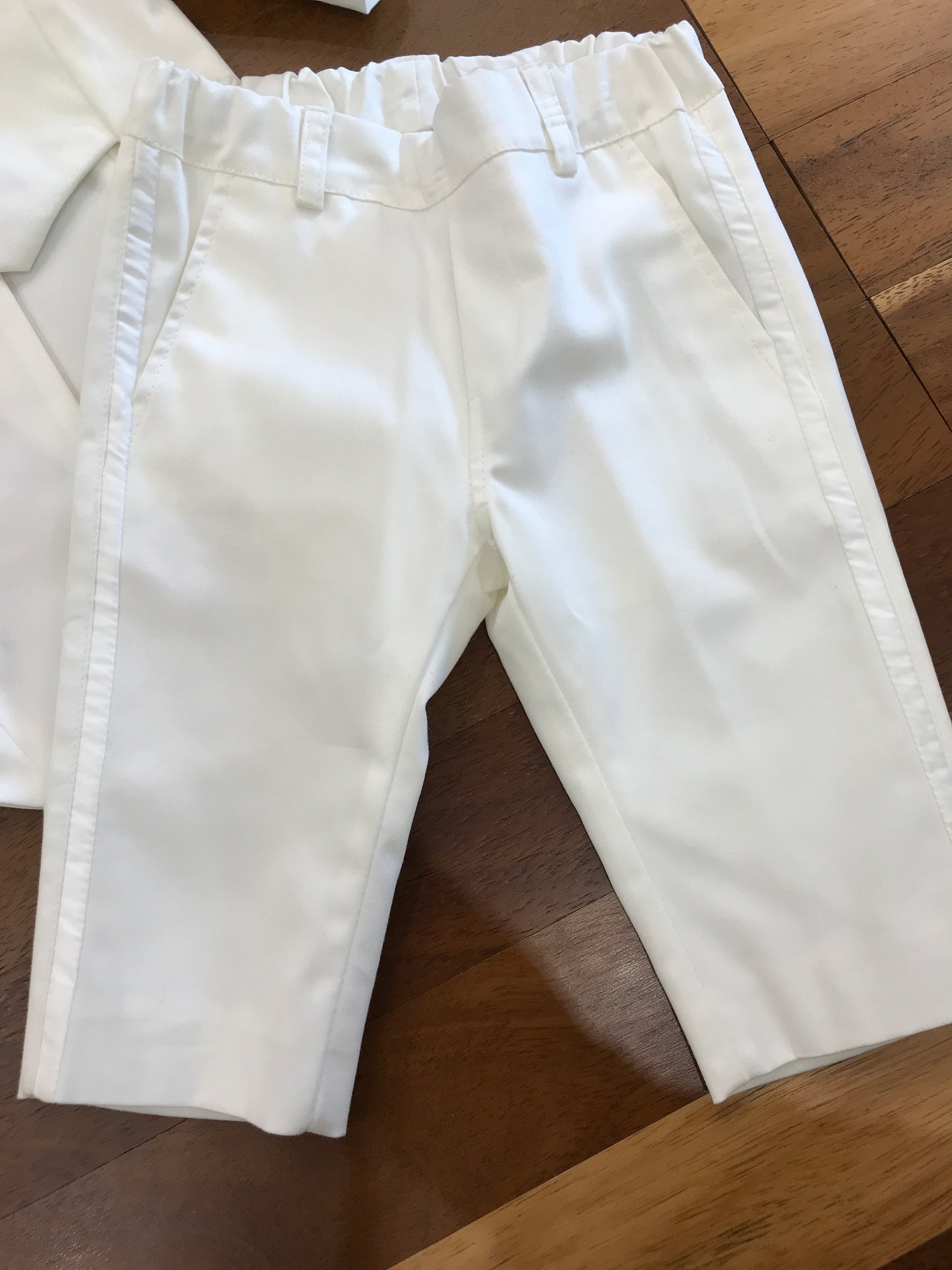 Elegante completo composto da giacca e pantalone in caldoc, proposto nella raffinata tonalità panna. Il pantalone presenta una lunghezza intera, mentre la giacca si distingue per il suo taglio generoso ai lati, garantendo comfort e libertà di movimento. Un'opzione versatile e sofisticata per chi ricerca qualità e stile senza compromessi.
