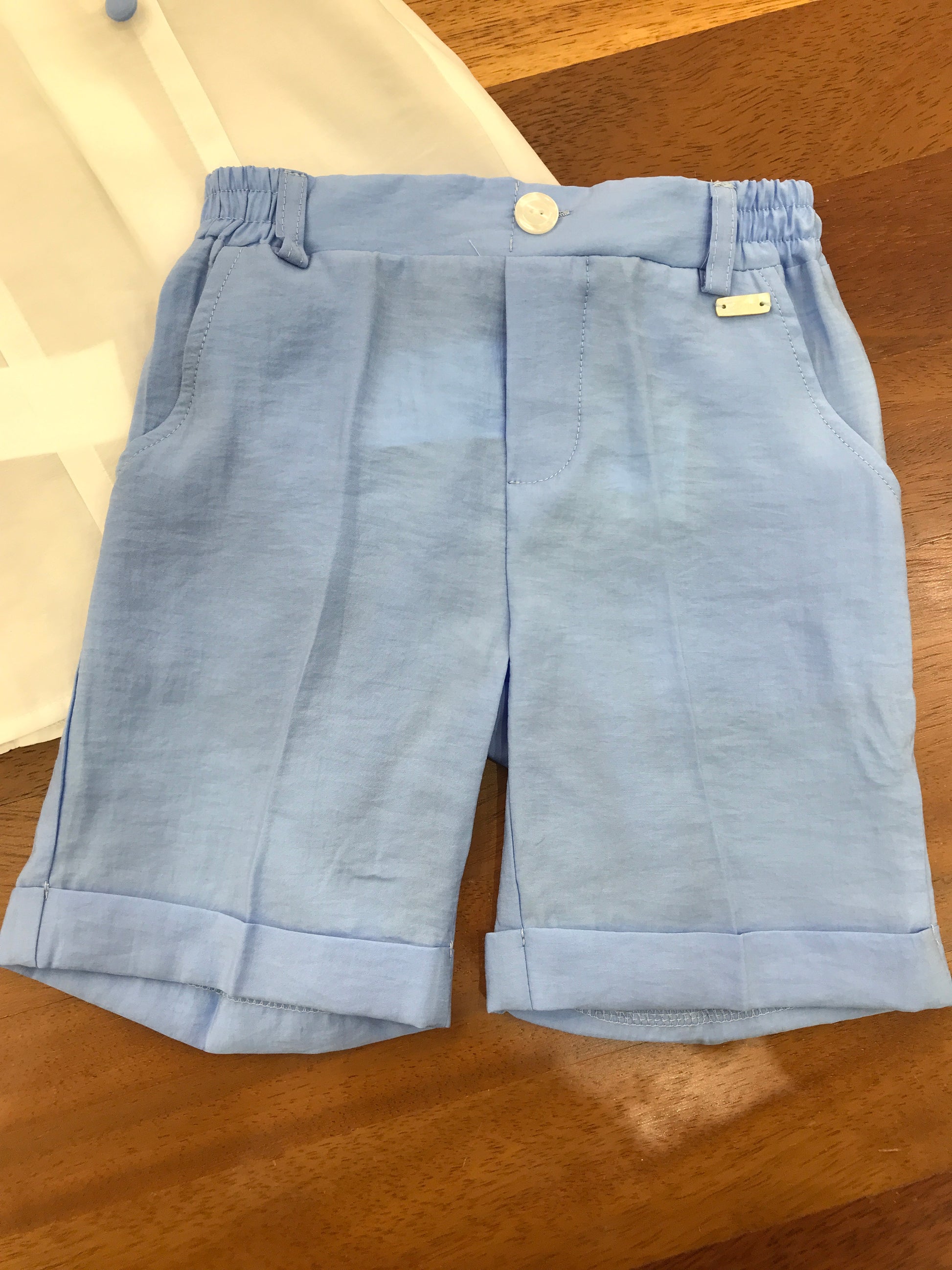 Completo Le Bebè in cotone pantalone corto all'inglese con camicia mezza manica con bottoncini sul davanti