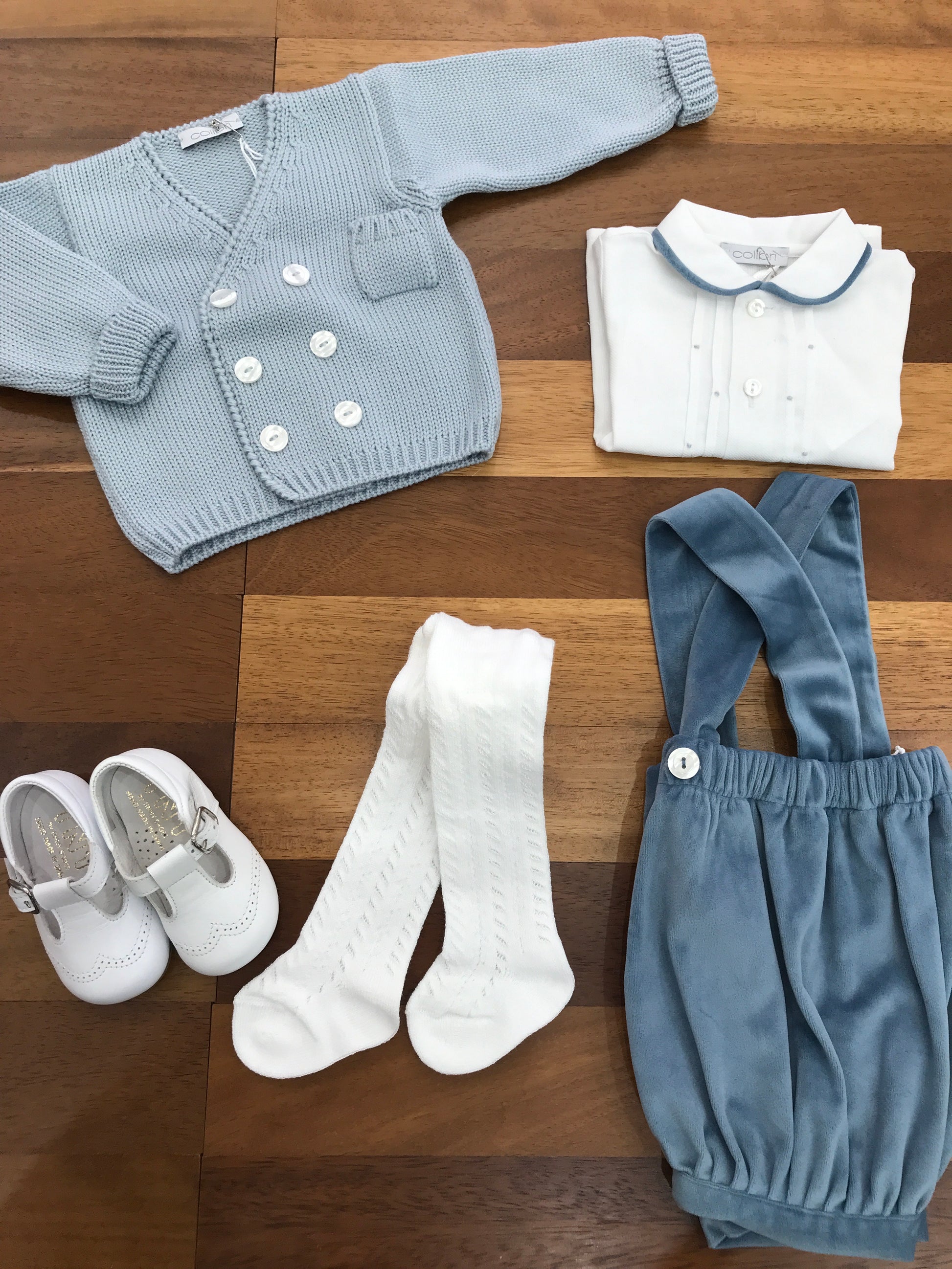 Questo elegante ensemble natalizio riunisce cinque elementi coordinati per un look festivo completo. La composizione include scarpine bianche raffinate, calze traforate in bianco che aggiungono dettagli sofisticati, una camicia con profilo Perseo, pantaloni con lo stesso motivo decorativo e un cardigan che completa l'outfit. Un set pensato nei dettagli per occasioni speciali.