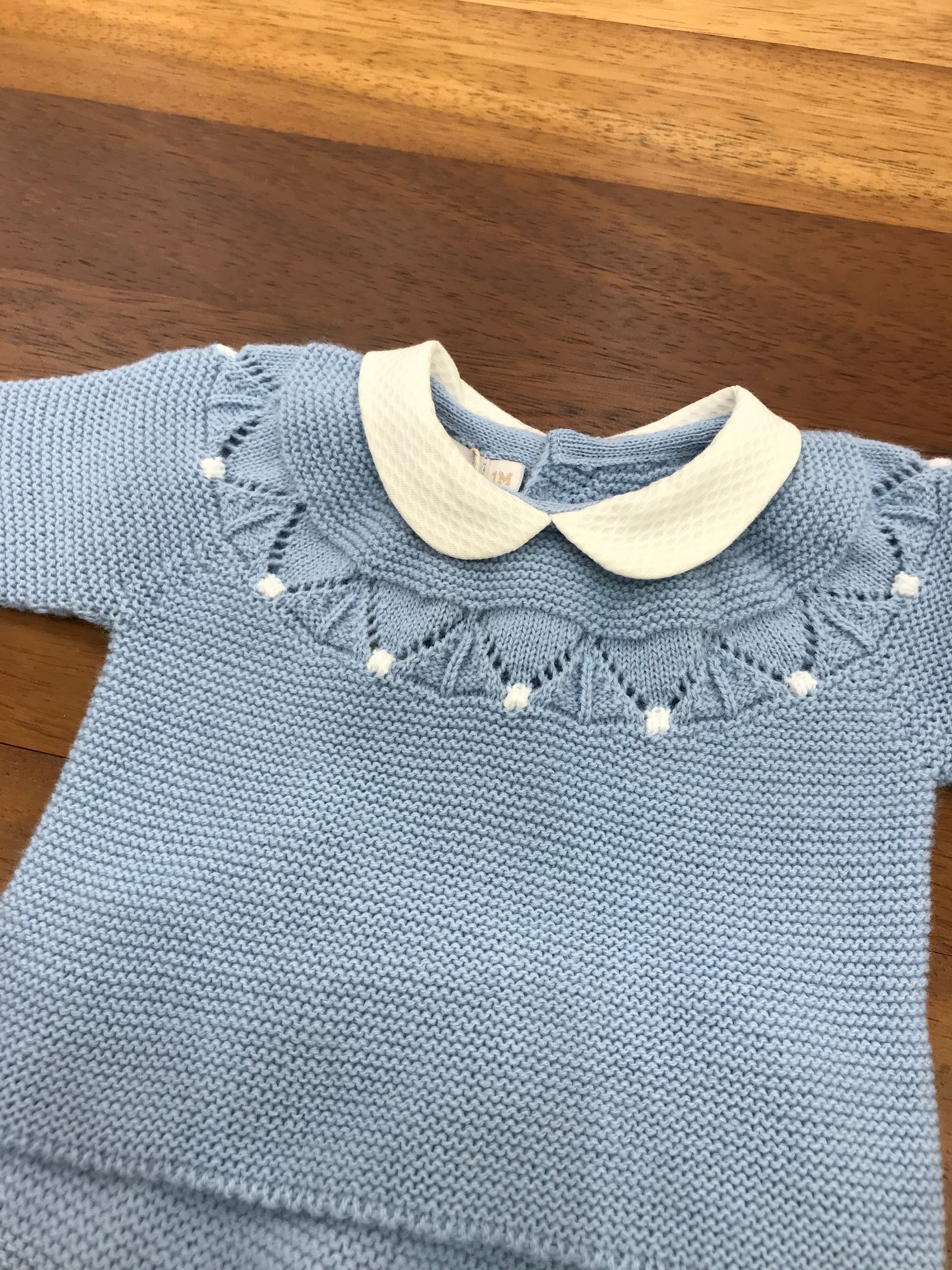 Completo composto da due pezzi, caratterizzato da un porta colletto bianco e privo di piedini. Il capo presenta raffinati ricami decorativi sulla parte anteriore, che ne valorizzano l’aspetto con un tocco elegante e distintivo.