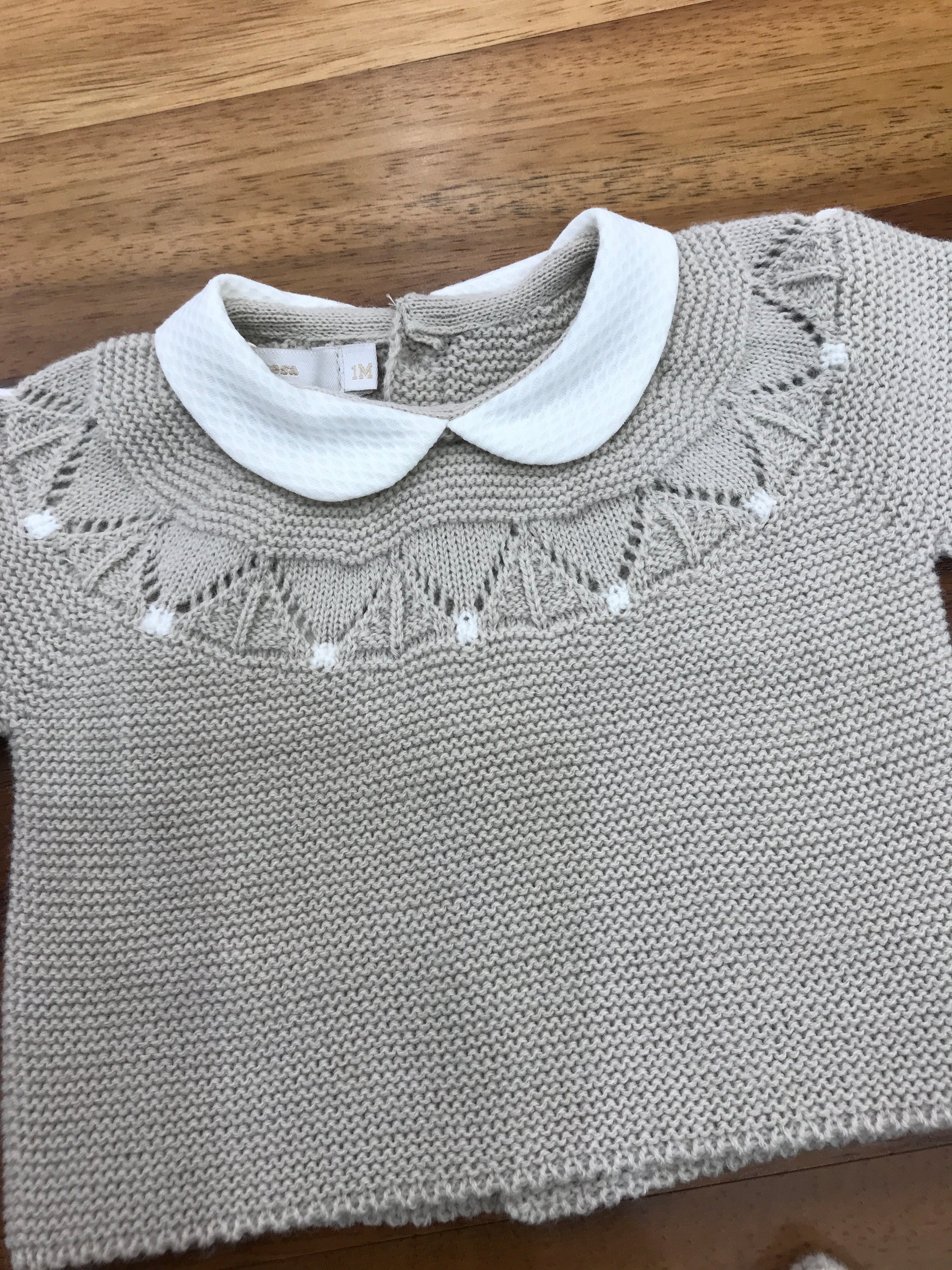 Completo composto da due pezzi, caratterizzato da un porta colletto bianco e privo di piedini. Il capo presenta raffinati ricami decorativi sulla parte anteriore, che ne valorizzano l’aspetto con un tocco elegante e distintivo.