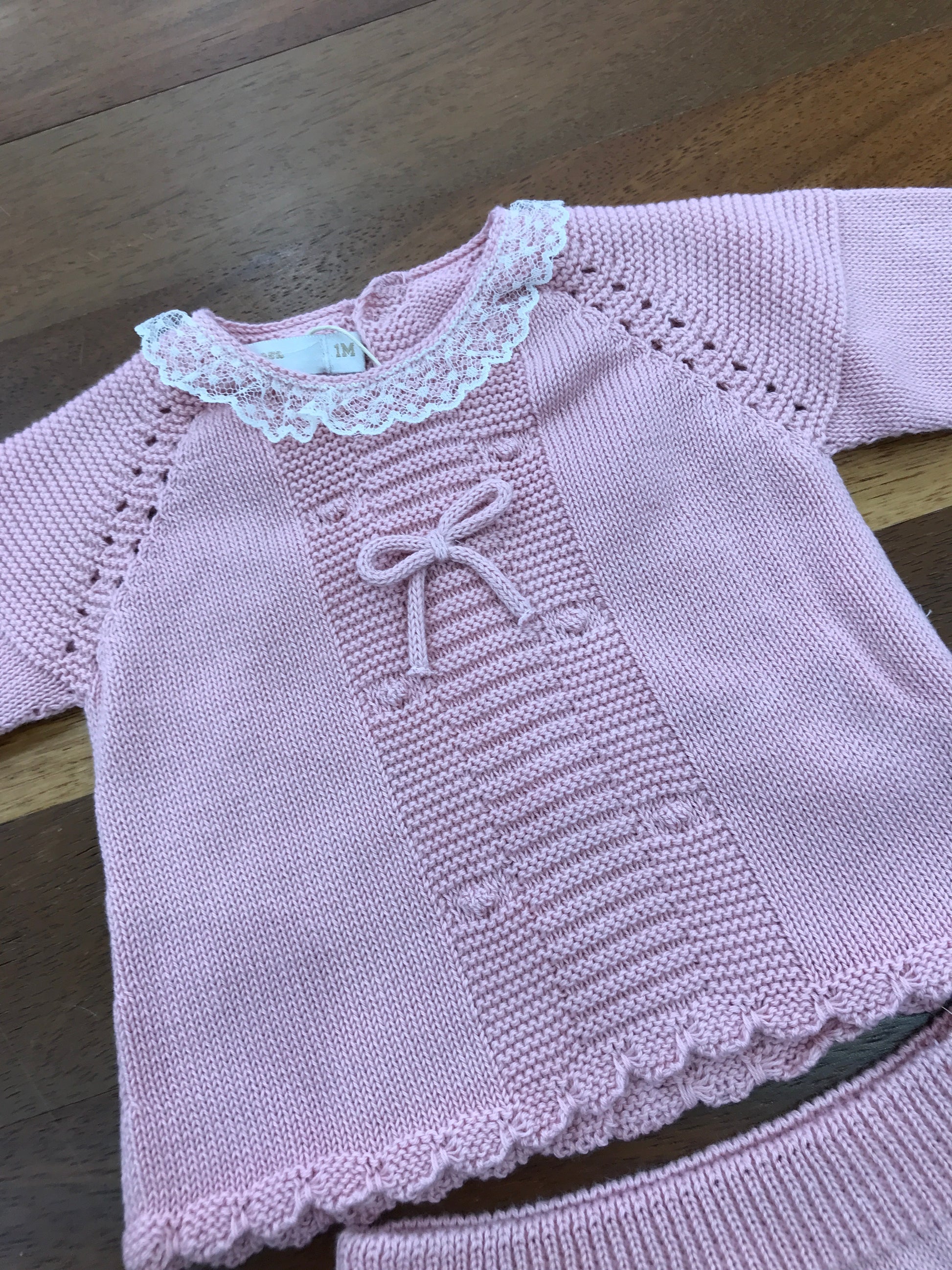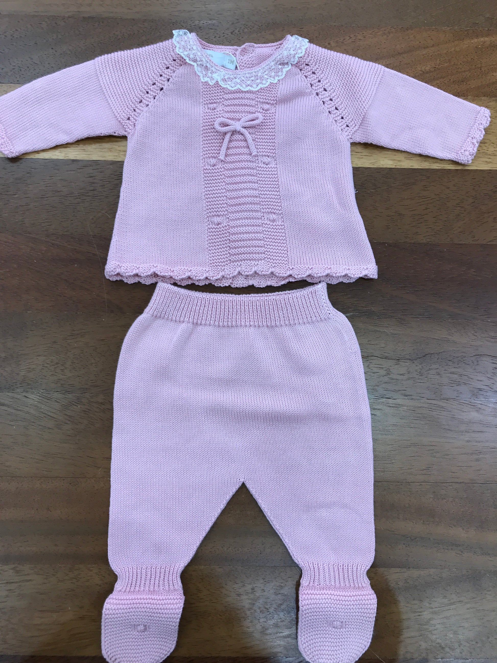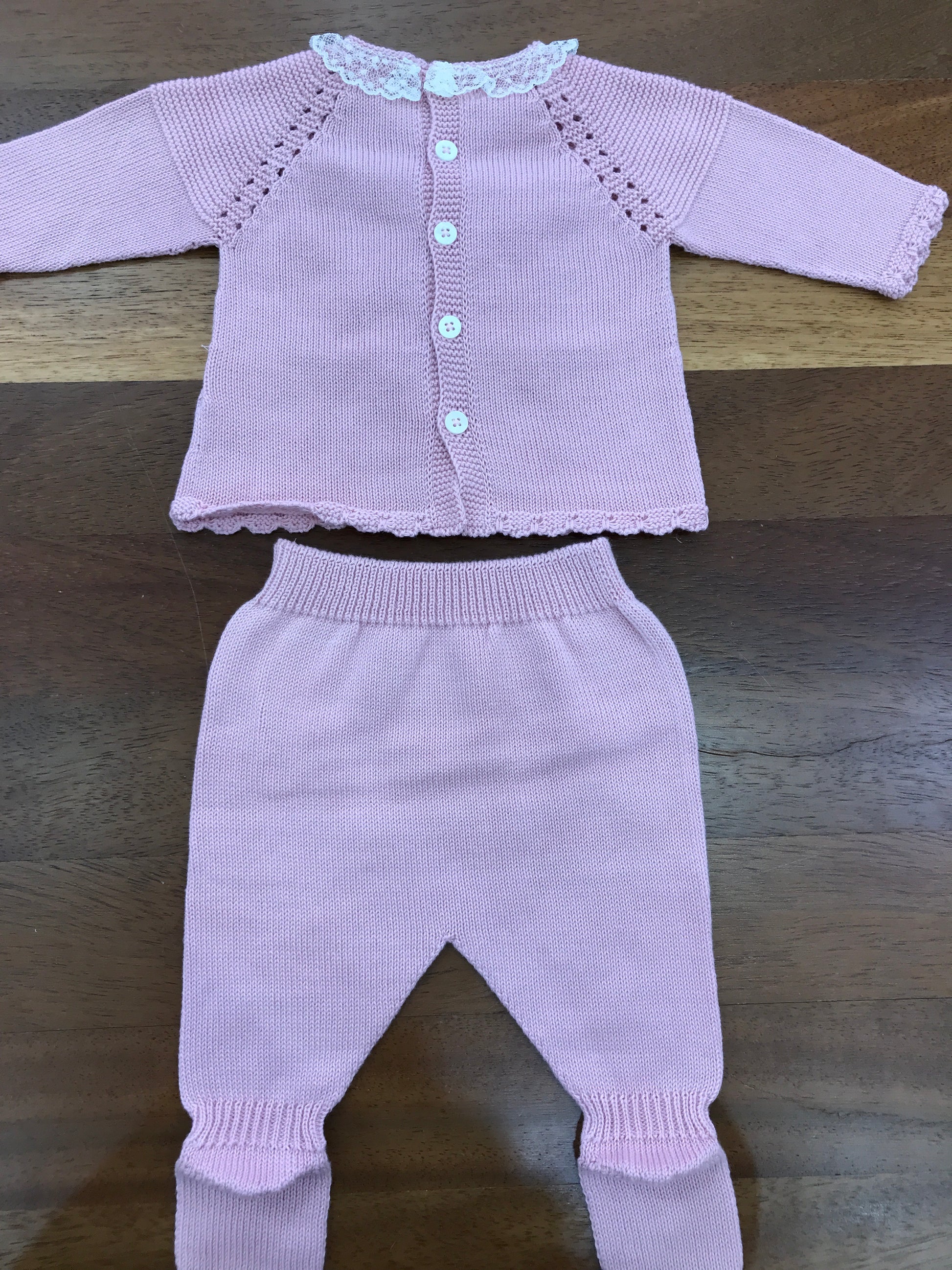 Completo PCS in filo rosa due pezzi con lavorazione sul davanti e al colletto applicato valancienne