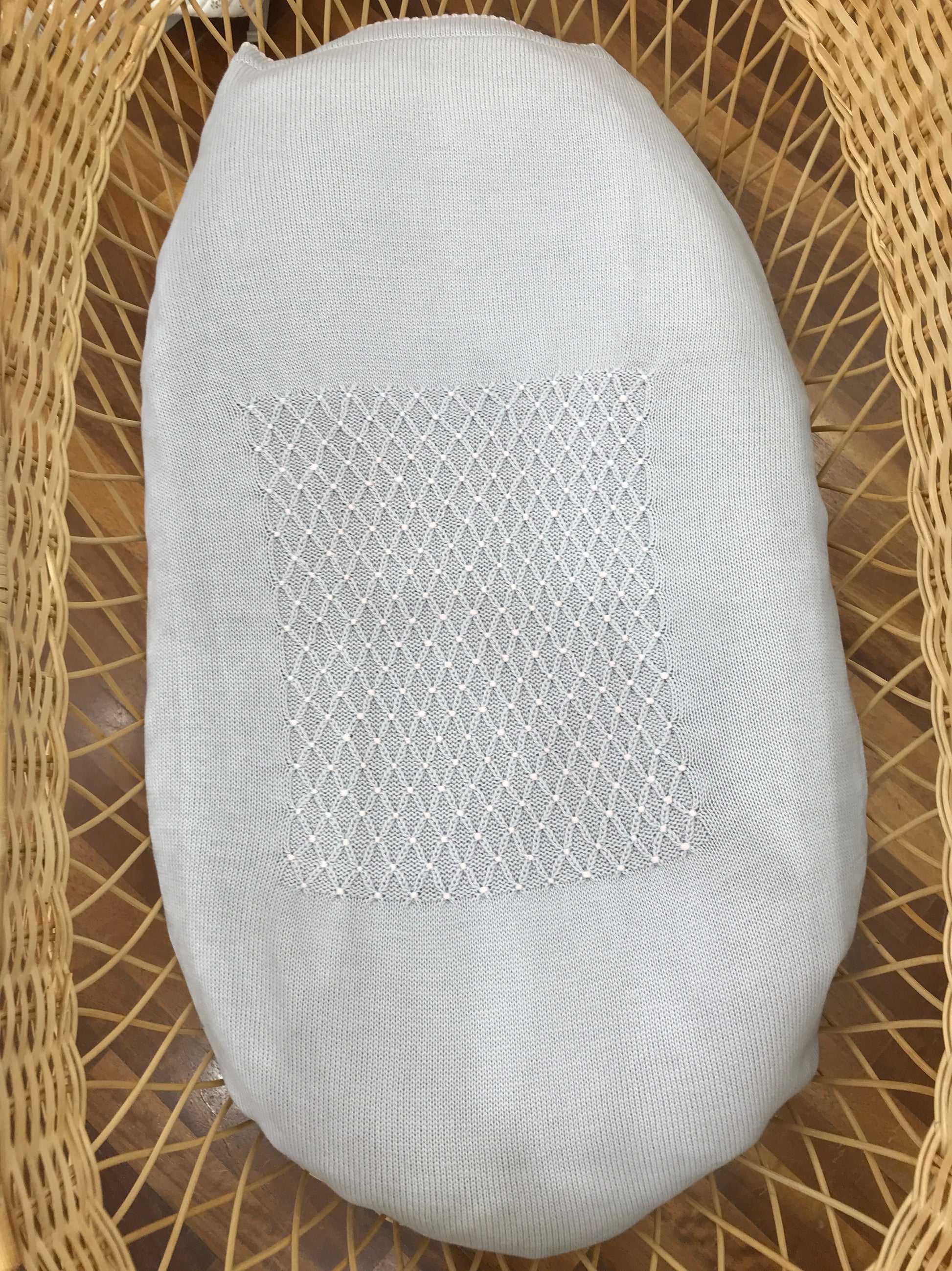 Questa coperta in lana presenta un bordo rosa ricamato traforato e una raffinata lavorazione a nido d'ape al centro, unendo comfort e dettagli artigianali di alta qualità.