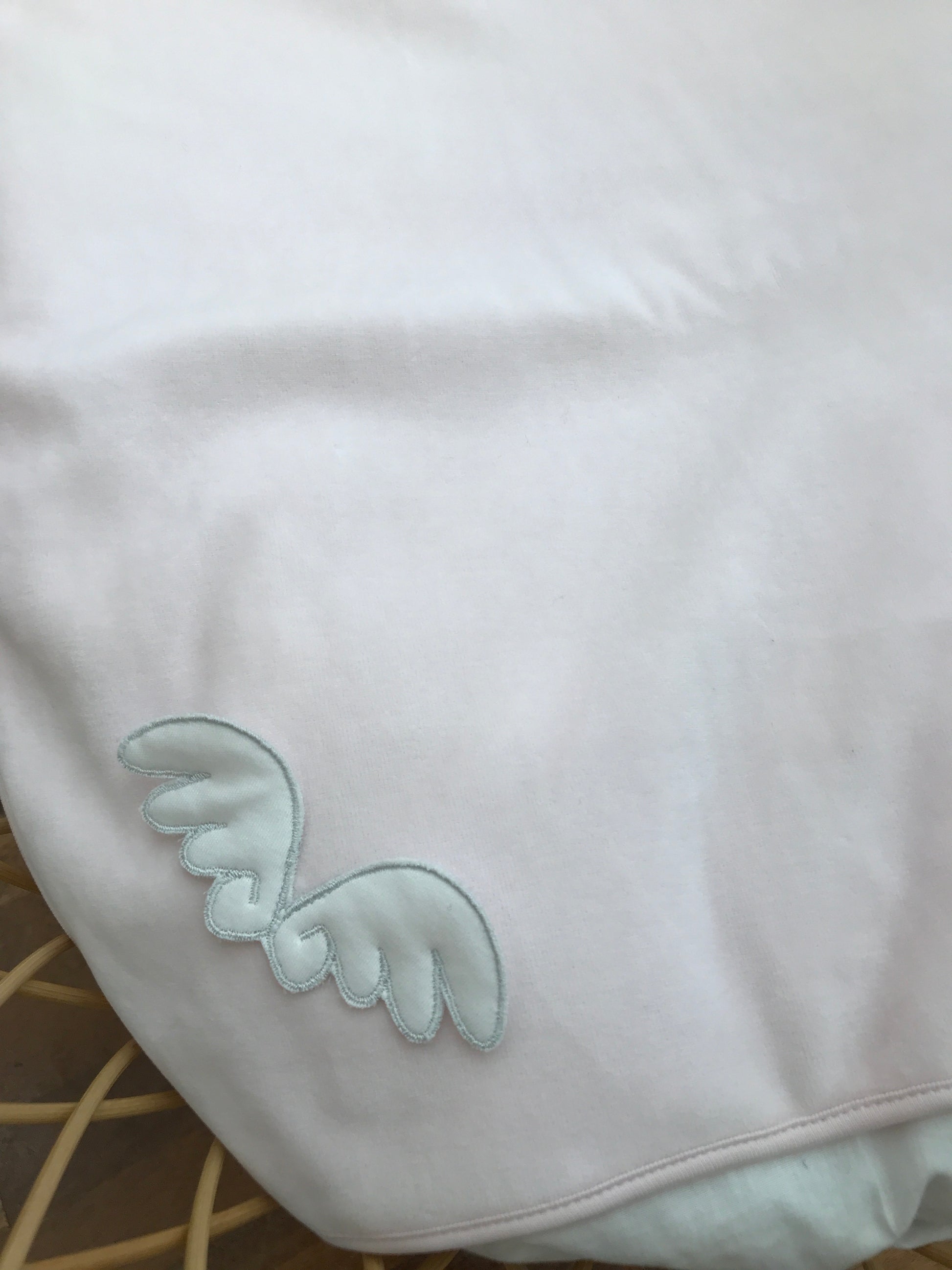 Questa coperta in ciniglia rosa, caratterizzata da un design essenziale, si distingue per un raffinato dettaglio: ali di colore bianco posizionate con cura in un angolo. La sua morbidezza garantisce comfort e calore, ideale per il comfort del neonato, unendo semplicità e stile delicato in un unico prodotto di alta qualità.