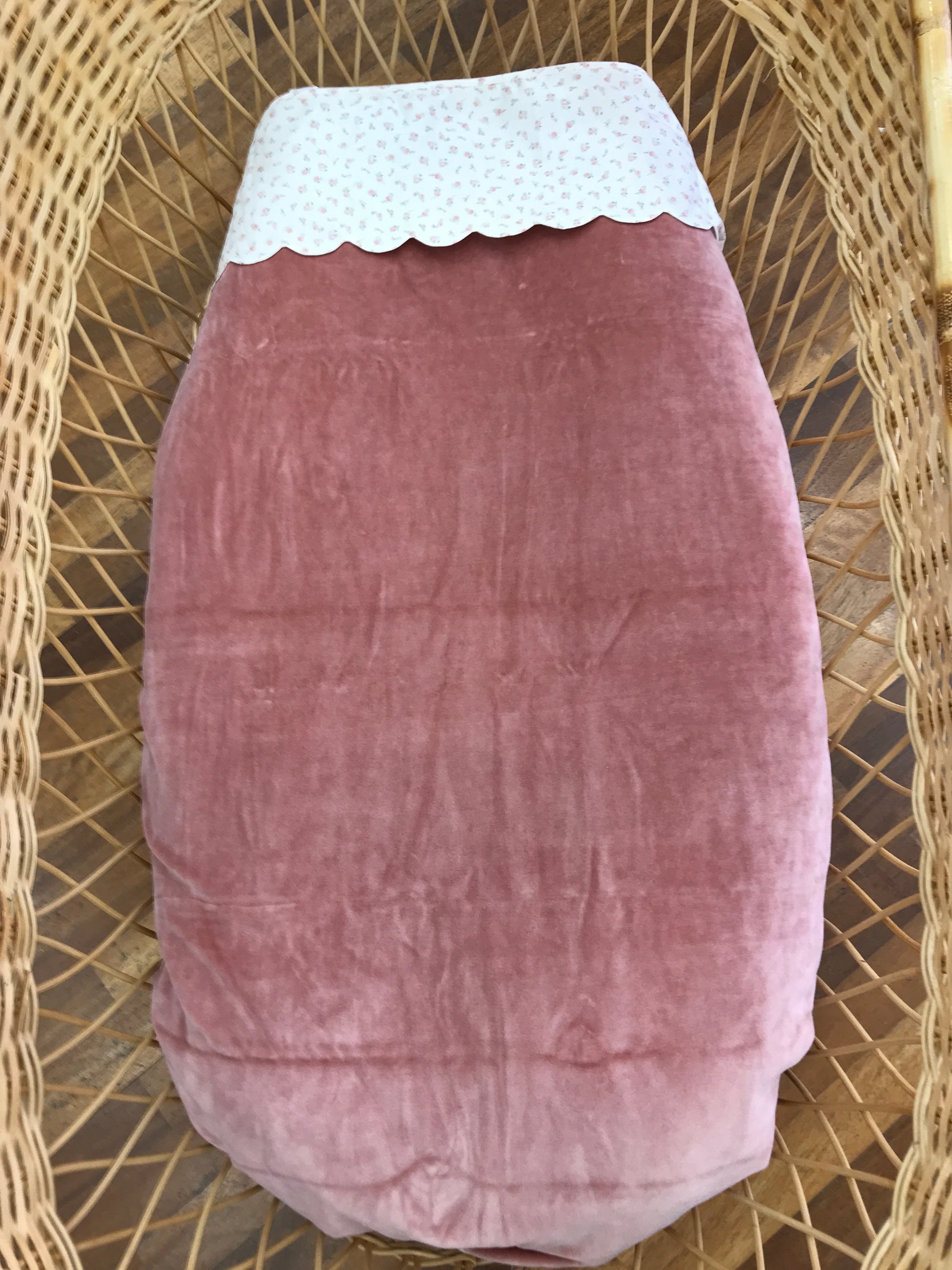 Questa coperta in ciniglia color rosa antico si distingue per il raffinato bordo decorato con delicati fiorellini. La parte superiore è concepita come un lenzuolino smerlato, impreziosito anch’esso da dettagli floreali, che conferisce un tocco di eleganza e morbidezza ideale per il comfort del bambino.