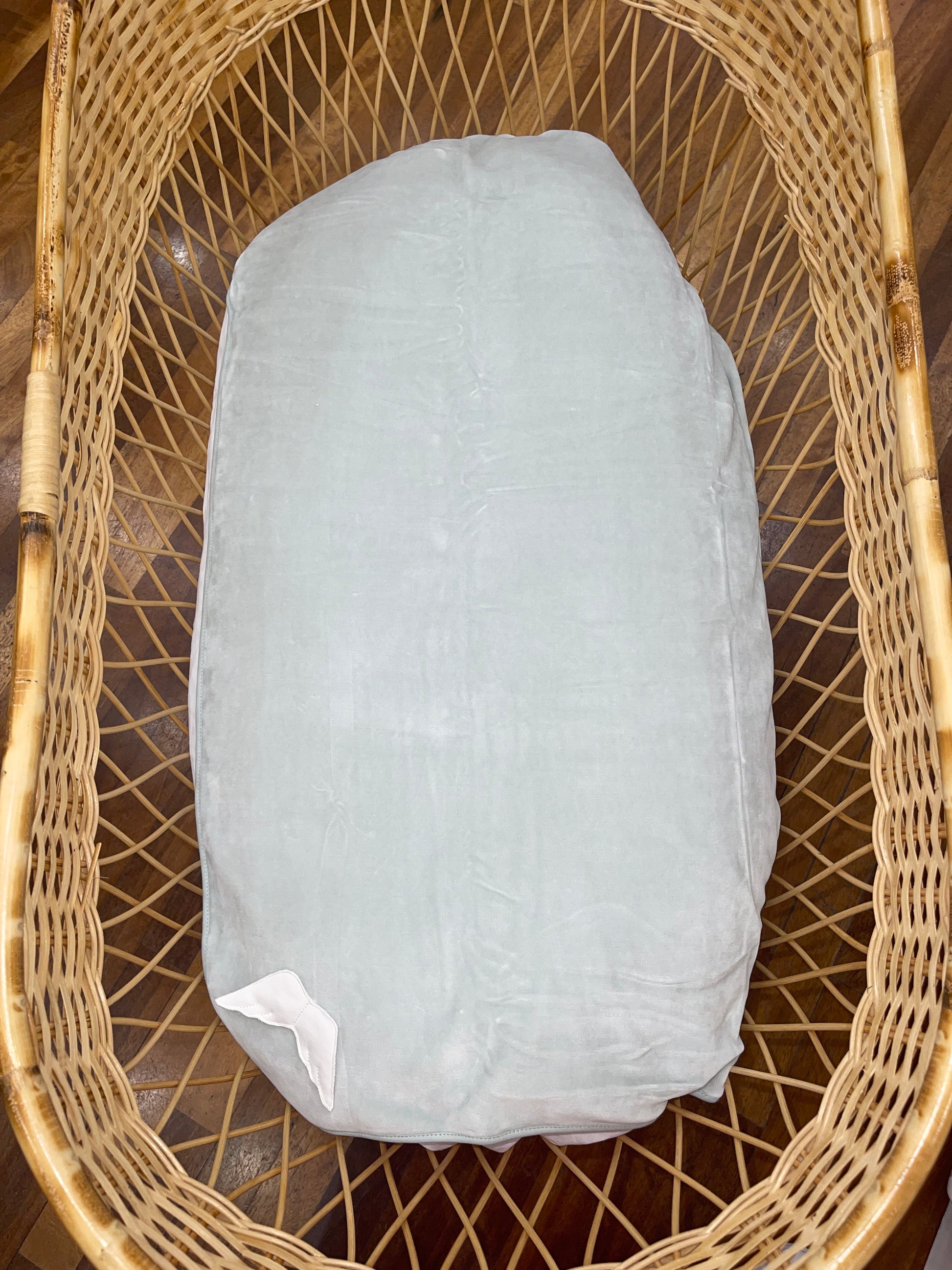 Coperta in ciniglia verde arricchita da eleganti ali bianche decorative.