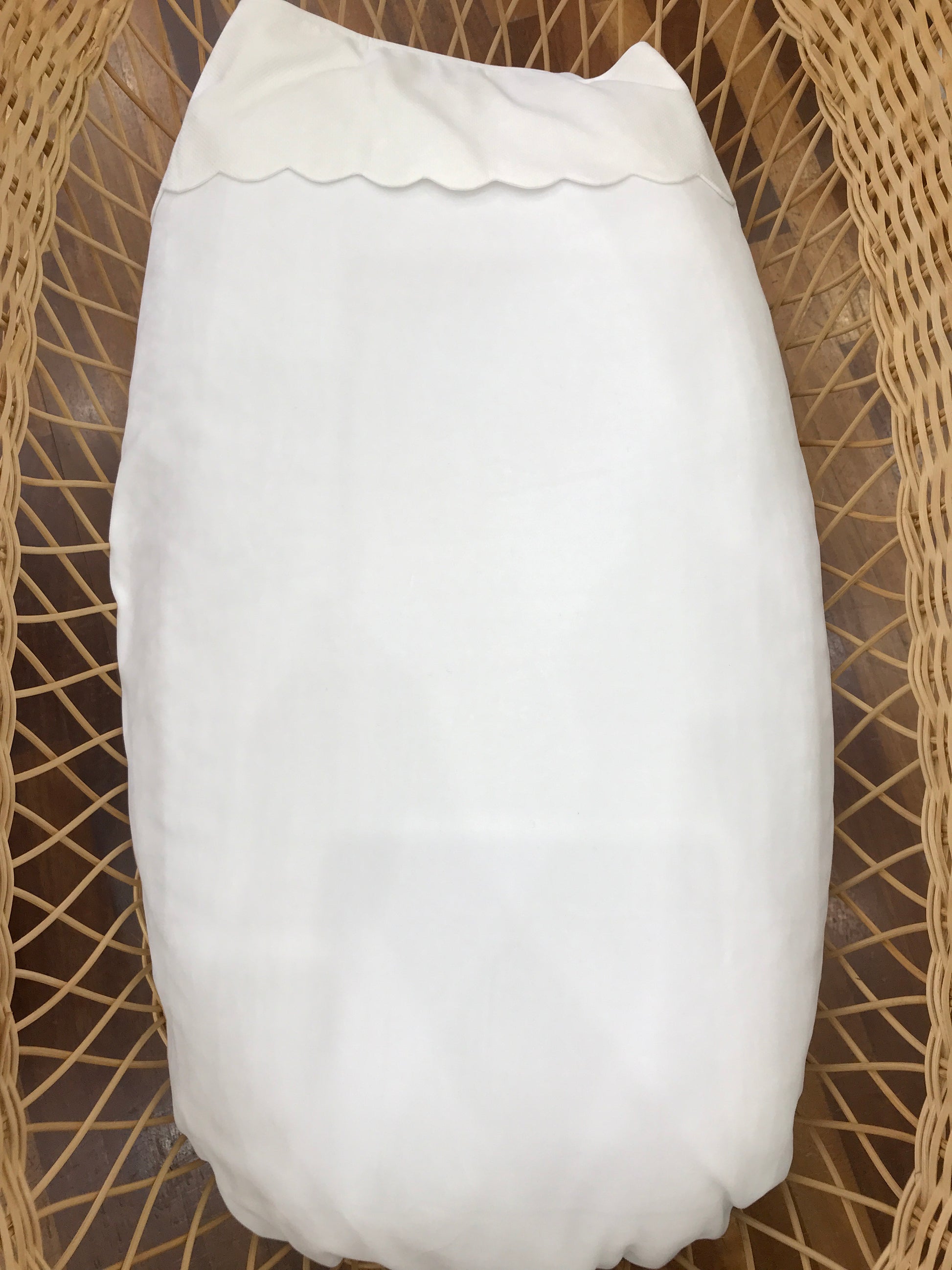 Questa coperta bianca per neonati si distingue per il suo design essenziale, arricchito da un raffinato dettaglio smerlettato.