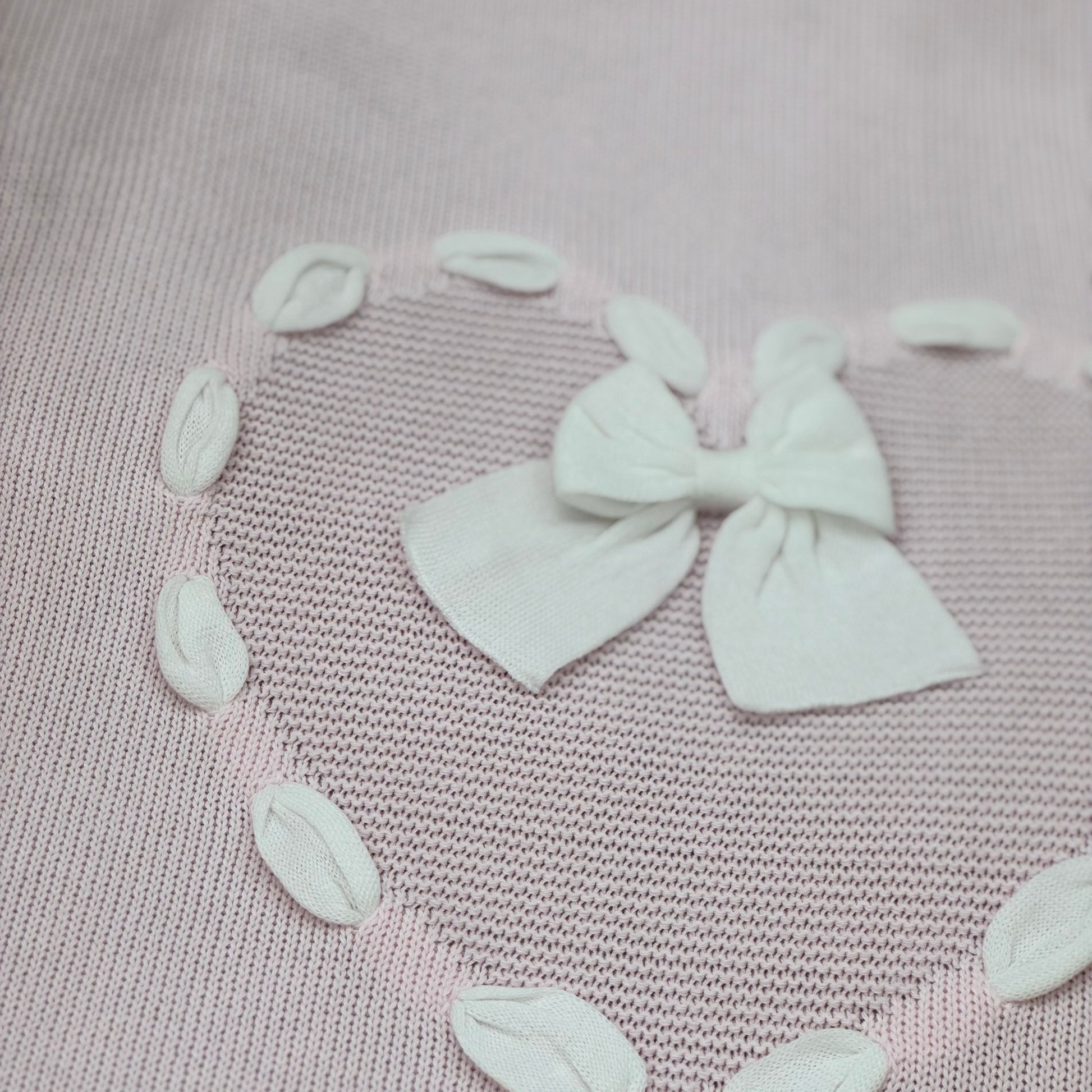 Questa meravigliosa coperta in filo di cotone rosa è perfetta per avvolgere e coccolare il tuo neonato. Il passanastro a forma di cuore e il fiocco bianco aggiungono un tocco di dolcezza e tenerezza. Realizzata con materiali di alta qualità, garantirà un comfort e una protezione ottimali per il tuo piccolo angelo.