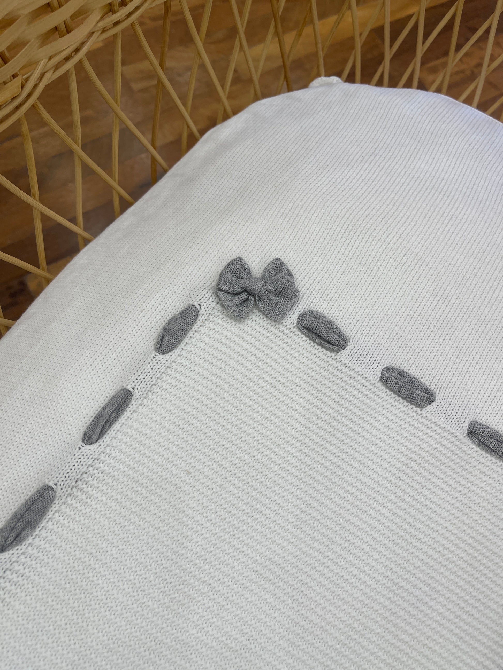 Questa coperta baby lord presenta un design unico con un passa nastro che forma un quadrato e una rifinitura di fiocchi sui lati. Morbidamente liscia, questa coperta offre un comfort avvolgente e un tocco di eleganza alla culla del tuo bambino. Ideale per un sonno tranquillo e protettivo.