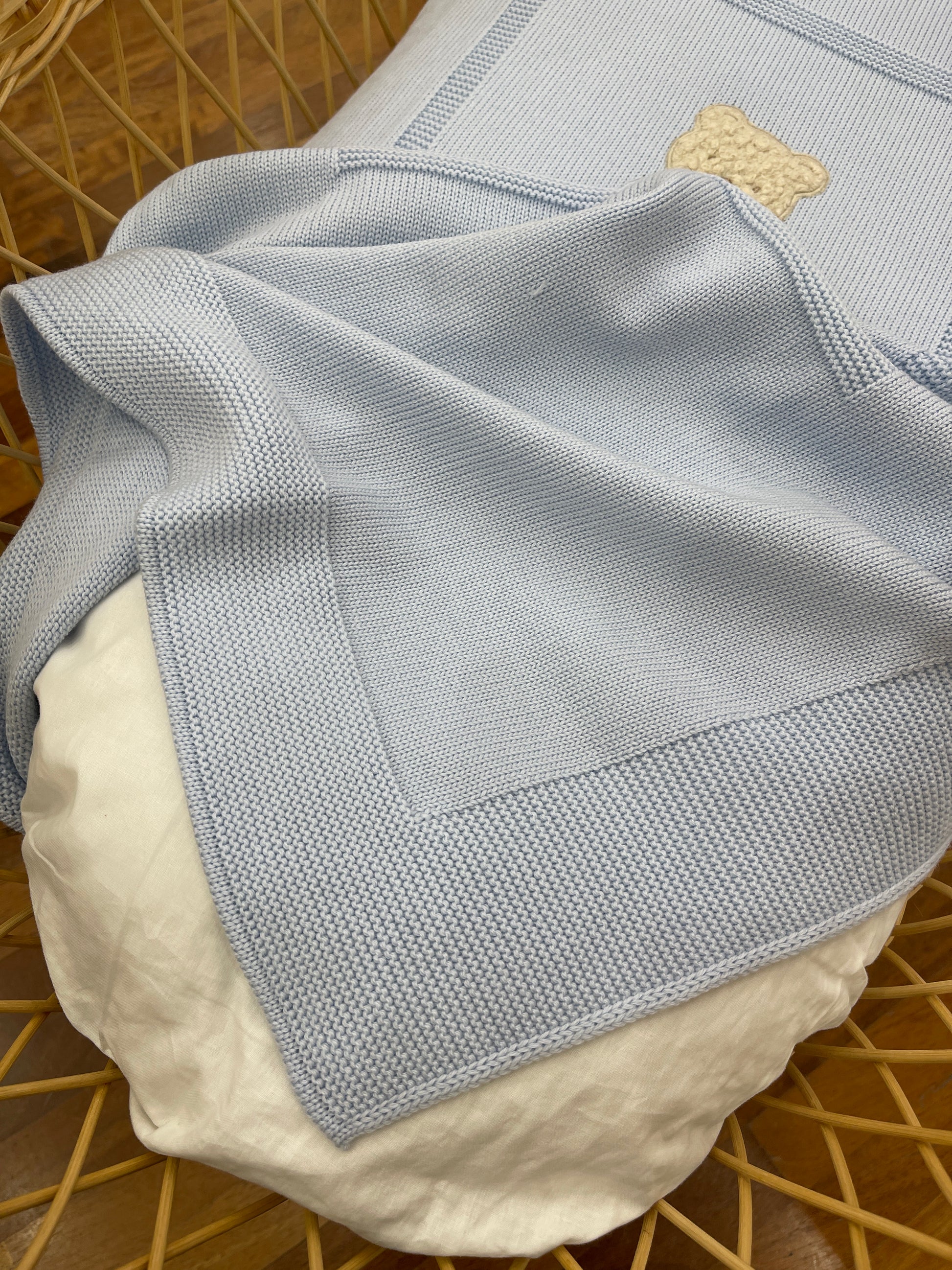 Questa coperta liscia presenta una fascia centrale decorata con un morbido orsetto in peluche, ideale per garantire comfort e dolcezza al tuo bambino.