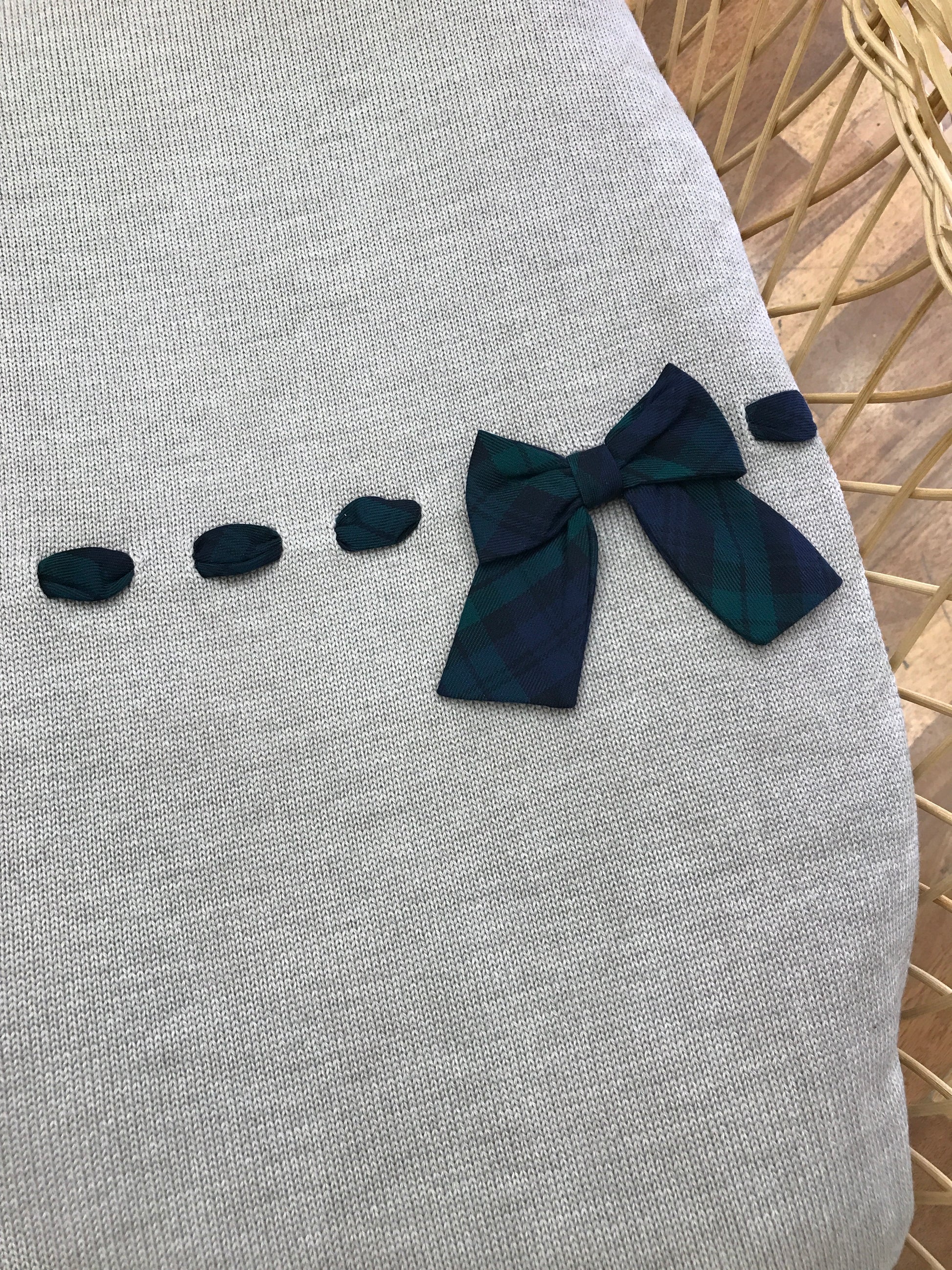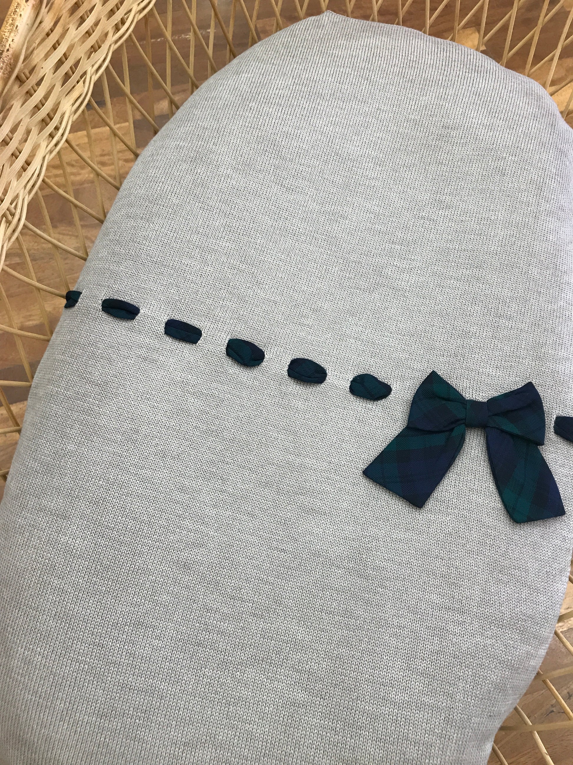Questa coperta in lana, realizzata nel raffinato colore tortora, è arricchita da un elegante passanastro verde scozzese che ne sottolinea i dettagli. Un fiocco coordinato, dello stesso verde scozzese, è applicato su un lato, conferendo un tocco di classe e raffinatezza a questo accessorio pensato per il comfort del tuo bambino.