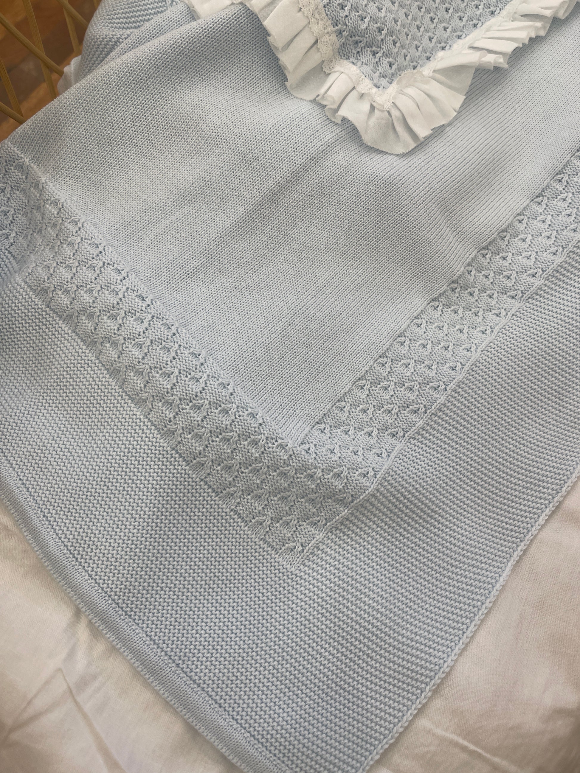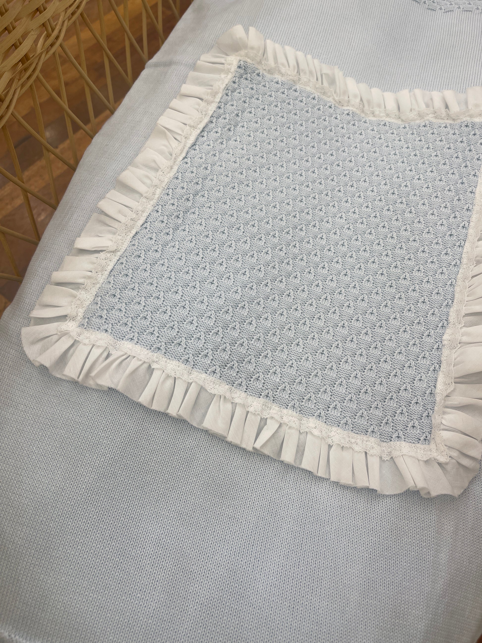 Questa coperta bebè di almy è elegante e delicata grazie al suo ricamo e al bordo con rouche di lino. Garantisce morbidezza e comfort per il tuo bambino, ideale per le passeggiate primaverili. Perfetta per un dono di nascita che sarà sicuramente apprezzato.