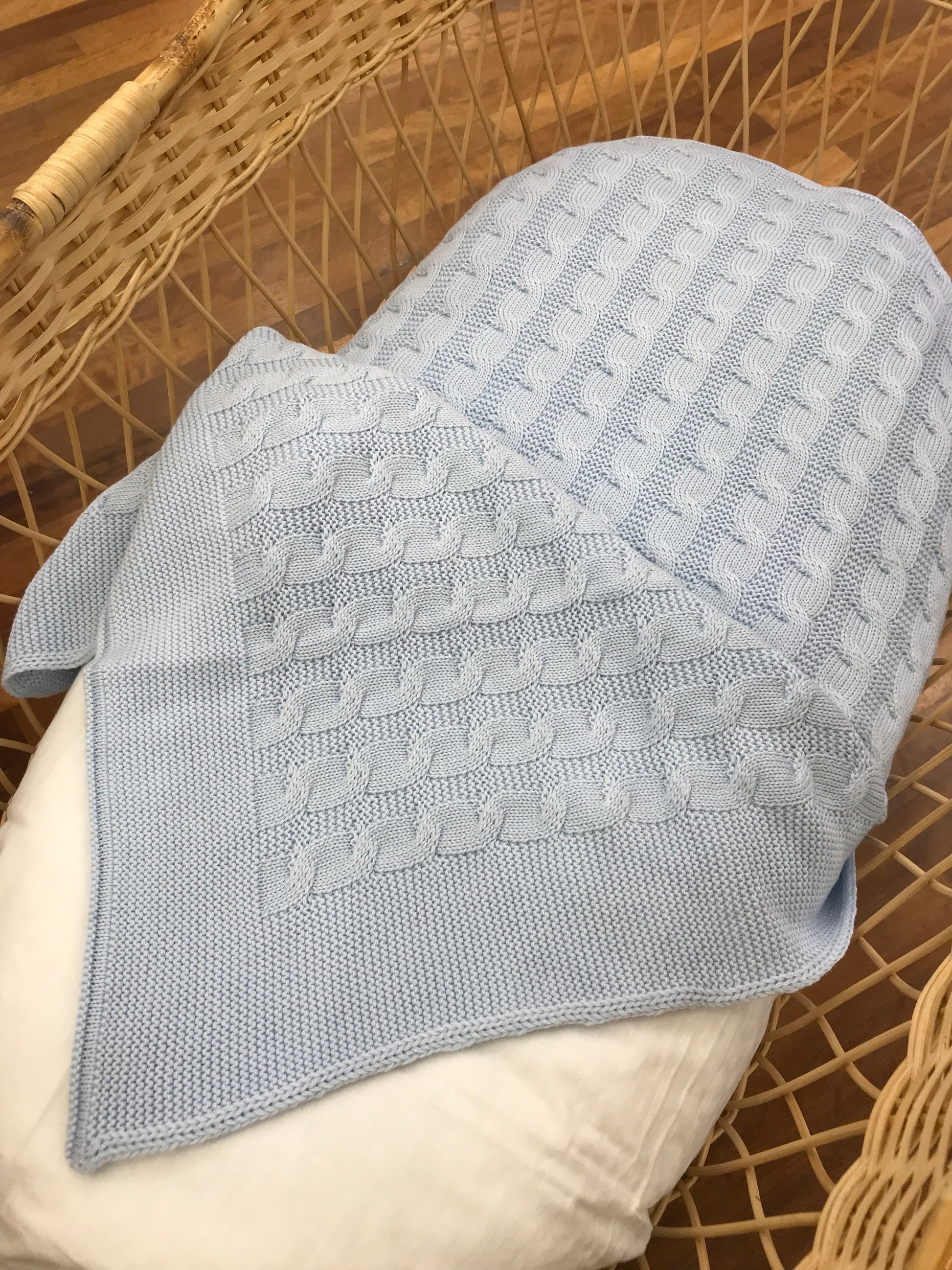 Questa coperta in lana presenta un design intrecciato con trecce, ideale per garantire calore e comfort al tuo bambino.