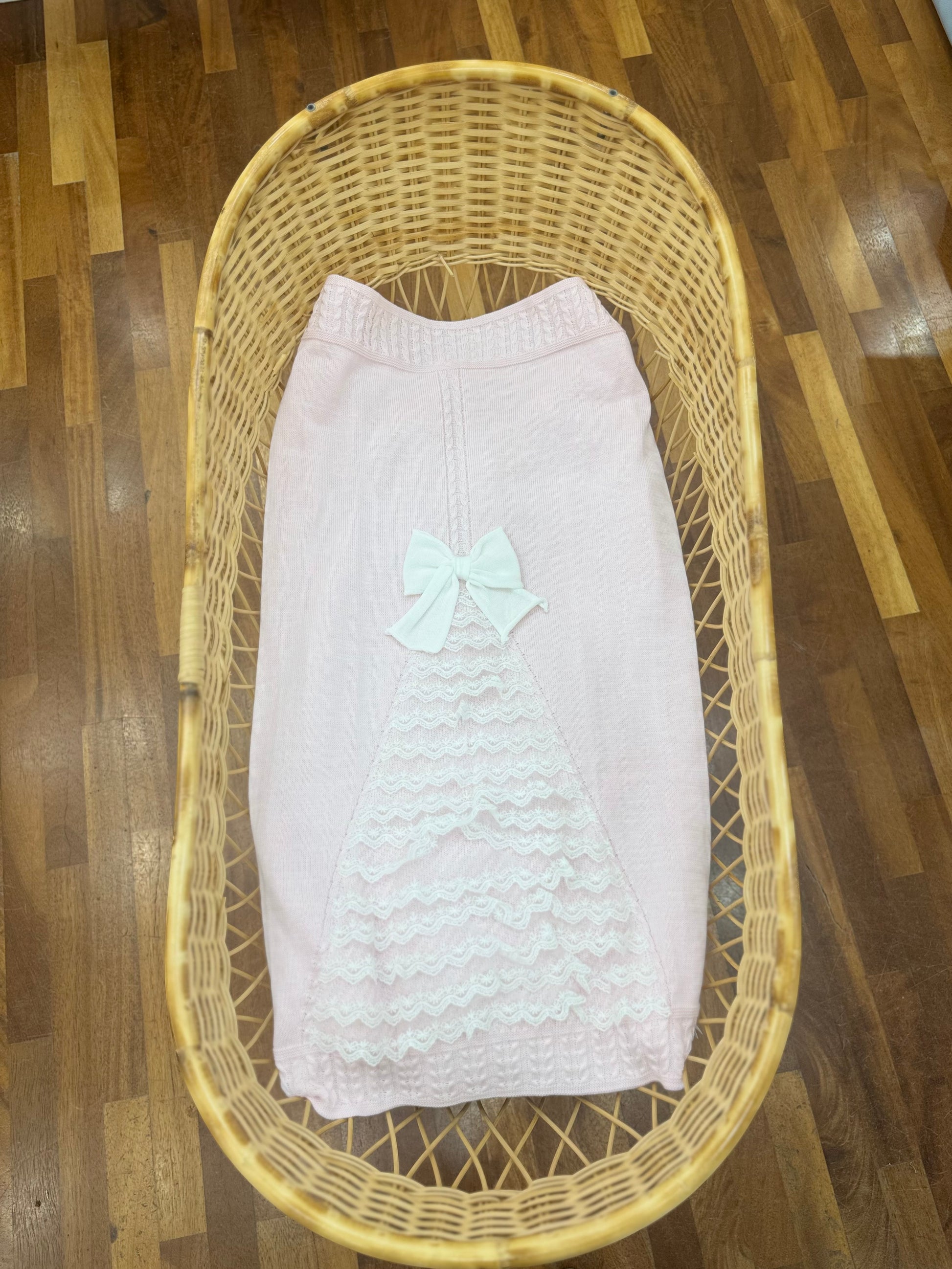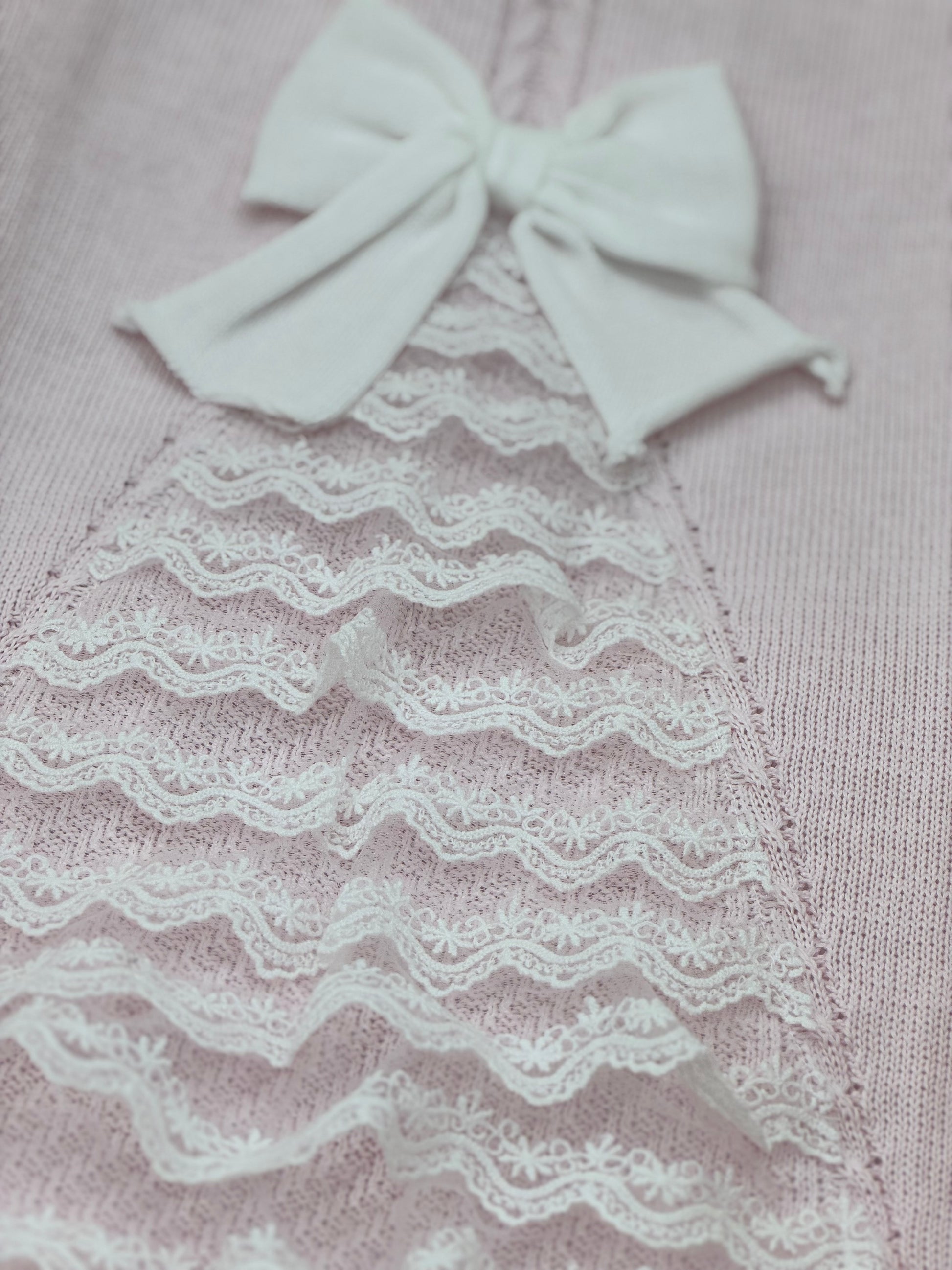 La Coperta Bebè di Almy è un'adorabile copertina in filo rosa con eleganti balze centrali in pizzo. Perfetta per tenere al caldo la tua piccola principessa, regalerà morbidezza e comfort grazie ai suoi materiali di alta qualità. Ideale per un regalo unico e chic.