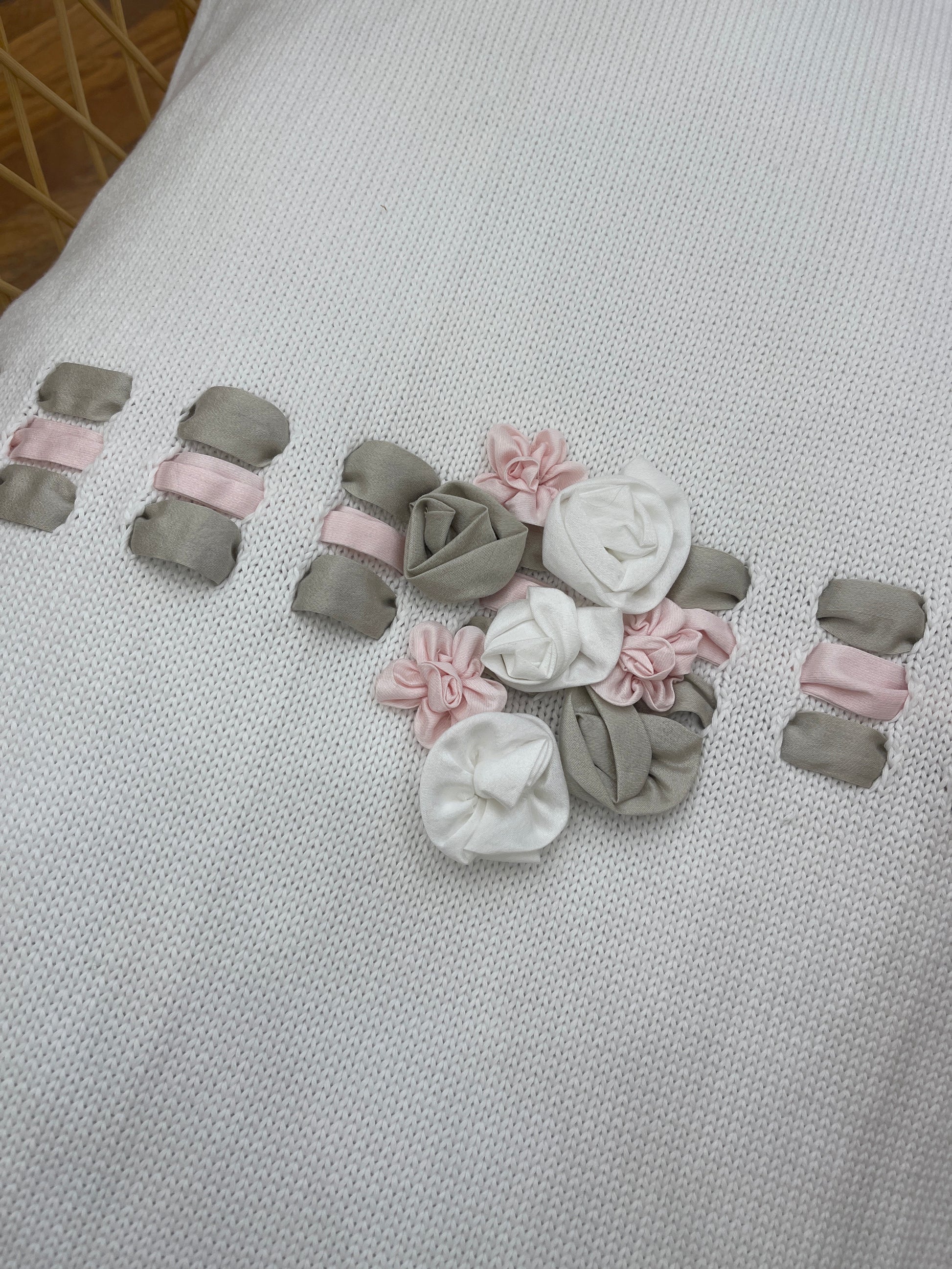 Questa coperta liscia è dotata di un elegante tris di passanastro in satin e applicazioni di rose al centro, aggiungendo un tocco di eleganza alla tua casa. Morbida e confortevole, è perfetta per un abbraccio o per decorare il tuo divano o letto. Realizzata con materiali di qualità per garantire durata e comfort.