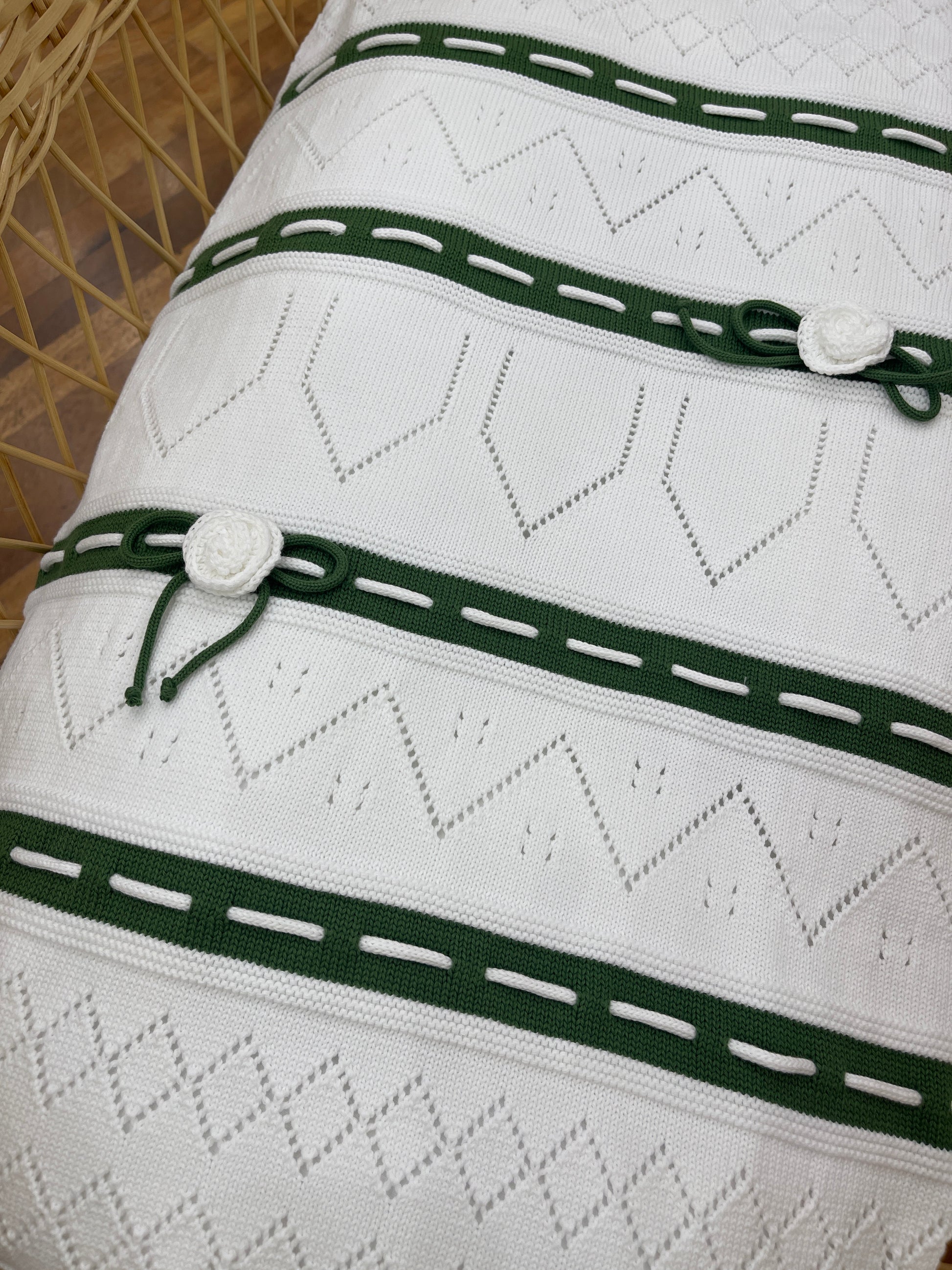 Questa Coperta colori chiari è perfetta per le notti fresche. Con un design bicolore e lavori a rombi e fiori in filo, aggiunge un tocco di eleganza alla tua camera da letto. Realizzata con materiali di alta qualità, questa coperta ti terrà caldo senza rinunciare allo stile.
